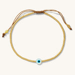 Made to represent safety and protection, the Evil Eye friendship bracelet features the classic symbol on a mother of pearl bead. Paired with seed beads and an adjustable tie, this bracelet is made for everyday protection.