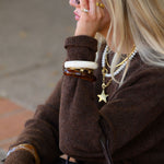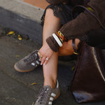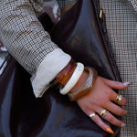 Warm and cozy like its namesake drink, the Hot Toddy Bracelet is the ultimate statement accessory. A bold resin bangle with swirled amber tones and an organic square shape. From pairing it over your favorite sweaters and coats in the fall, to stacking it high with a flowy skirt and tank in the summer -- this piece is made to be loved year round.  Lightweight, glossy, and perfect for stacking.