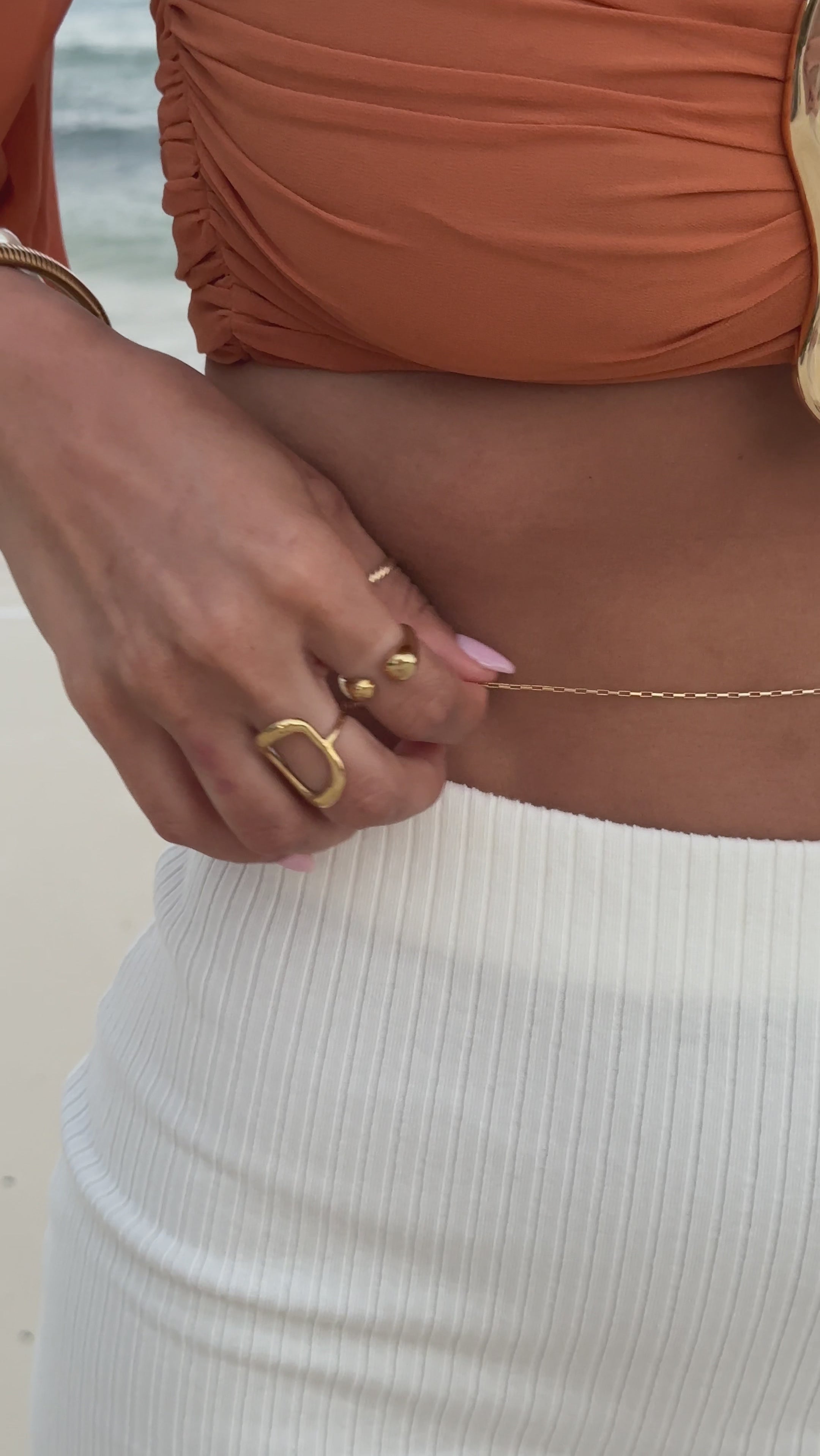 The Andi Belly Chain is our foray into belly chains, and is the perfect subtle accent to a low-waisted pair of linen pants or a statement bikini. With a delicate elongated box chain, we made sure this piece was designed for comfort, minimizing snags and digging in.