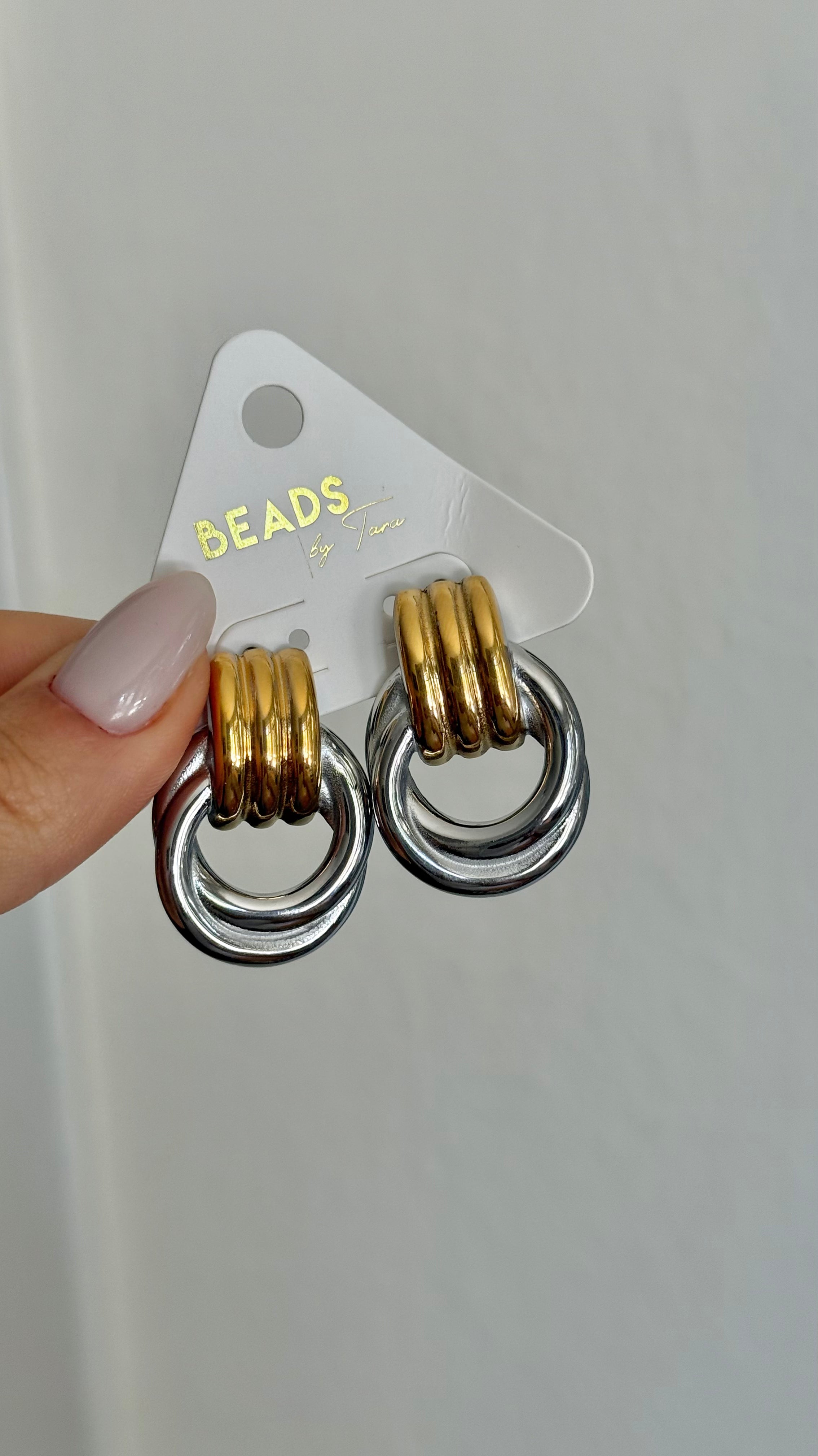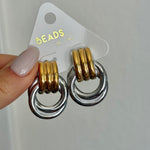 TWO TONE INTERLOCKED EARRINGS