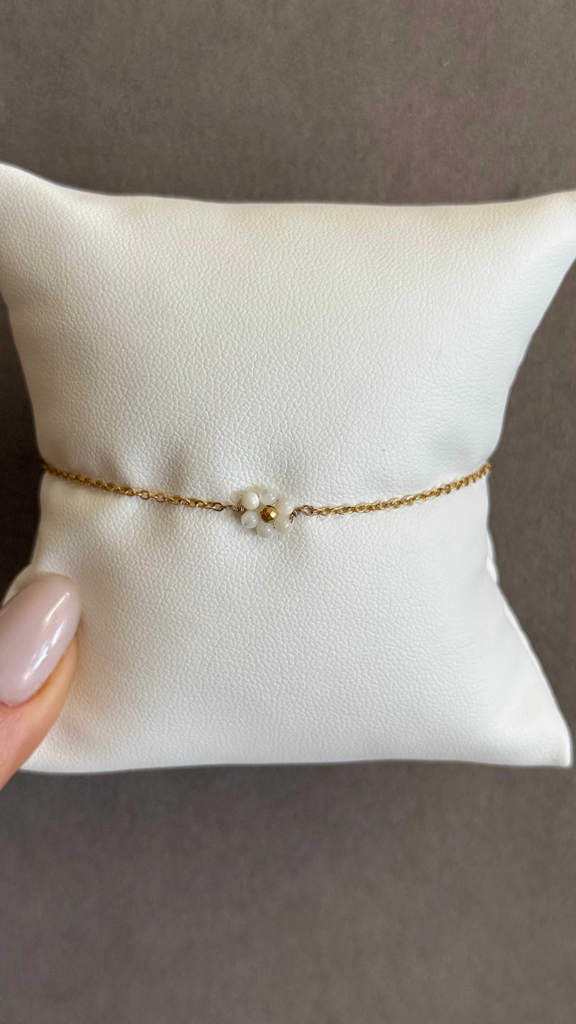 WHITE BEADED DAISY BRACELET