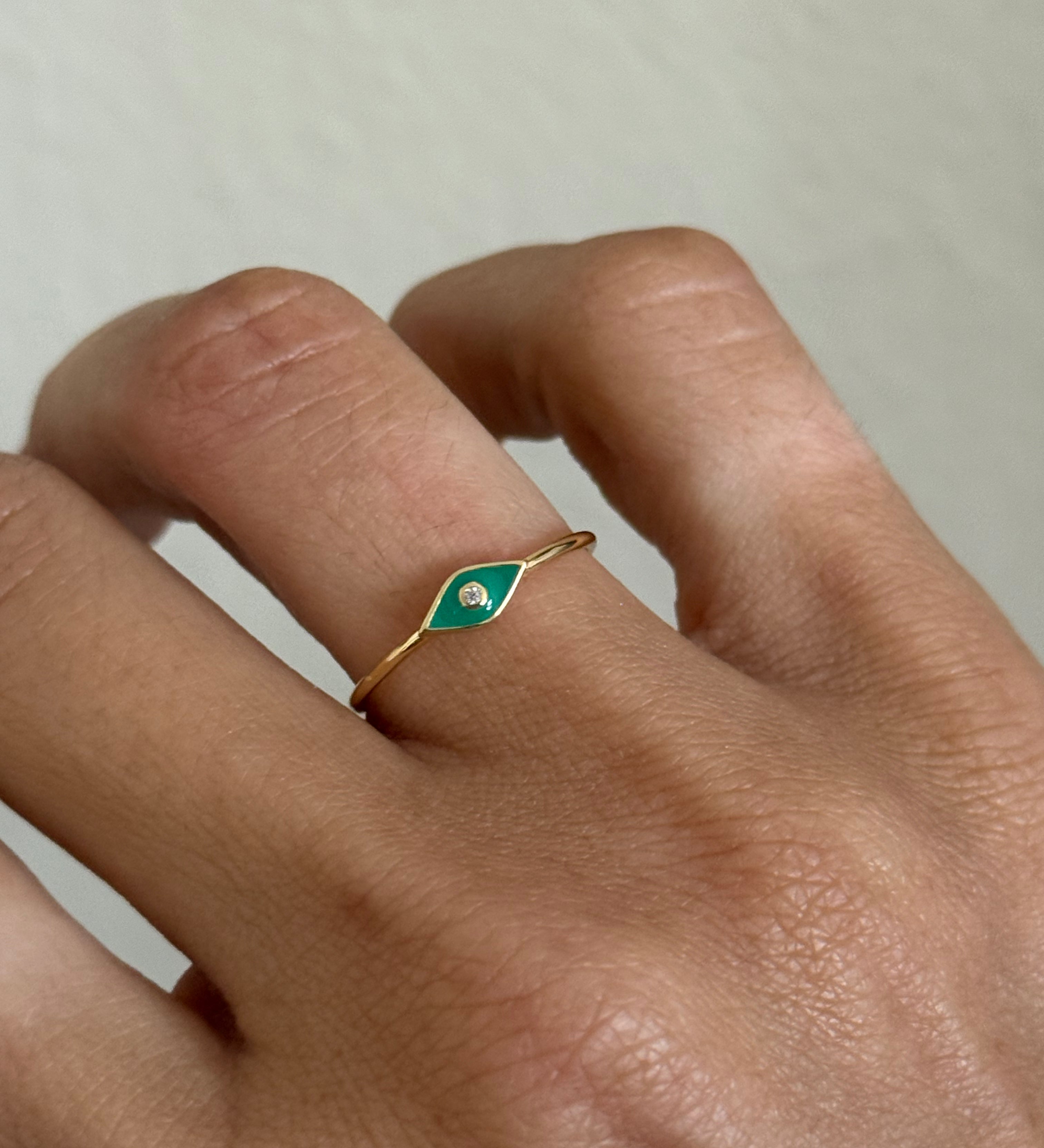 GREEN ENAMEL EYE RING (SIZE 6)