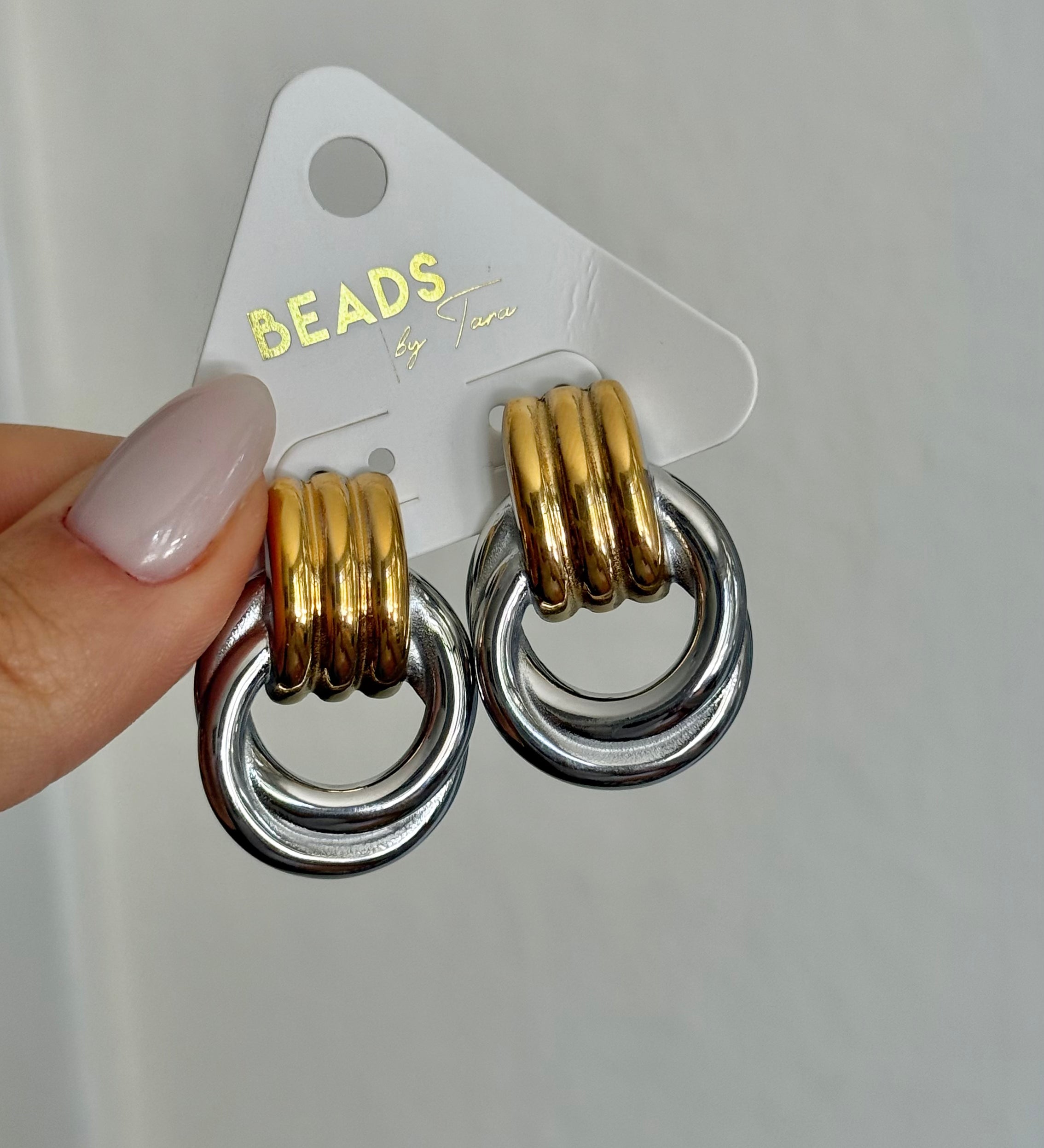 TWO TONE INTERLOCKED EARRINGS