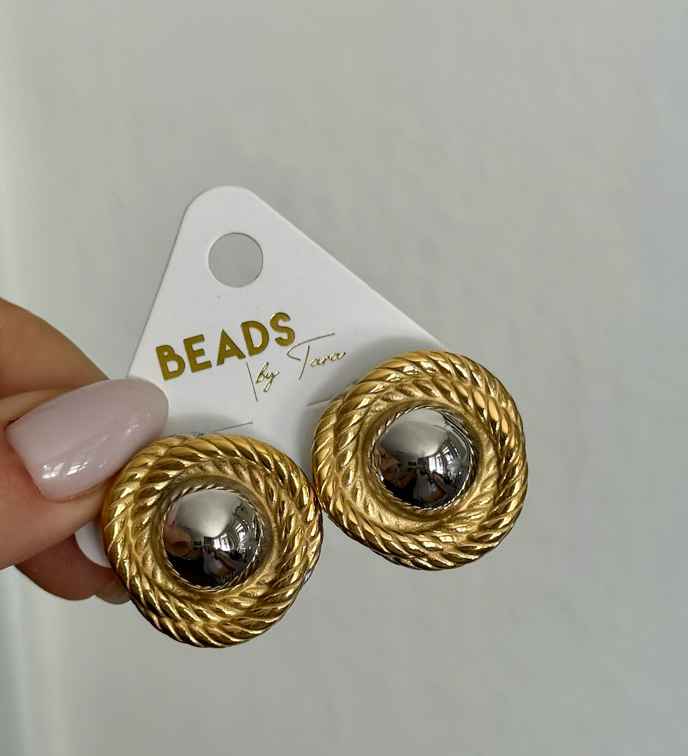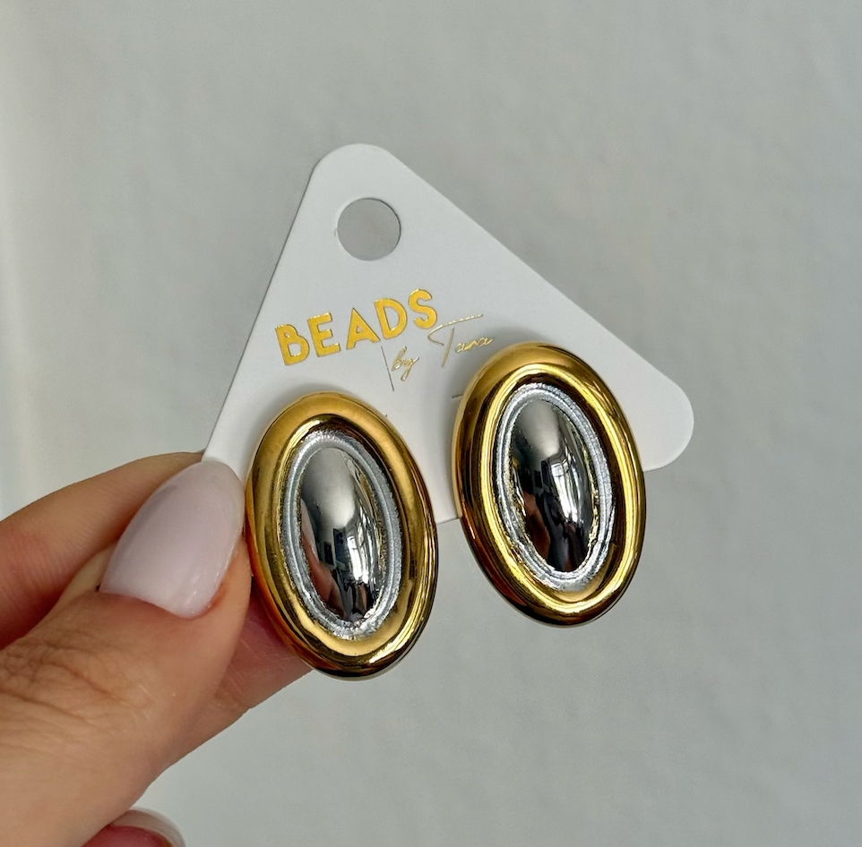 TWO TONE OVAL EARRINGS