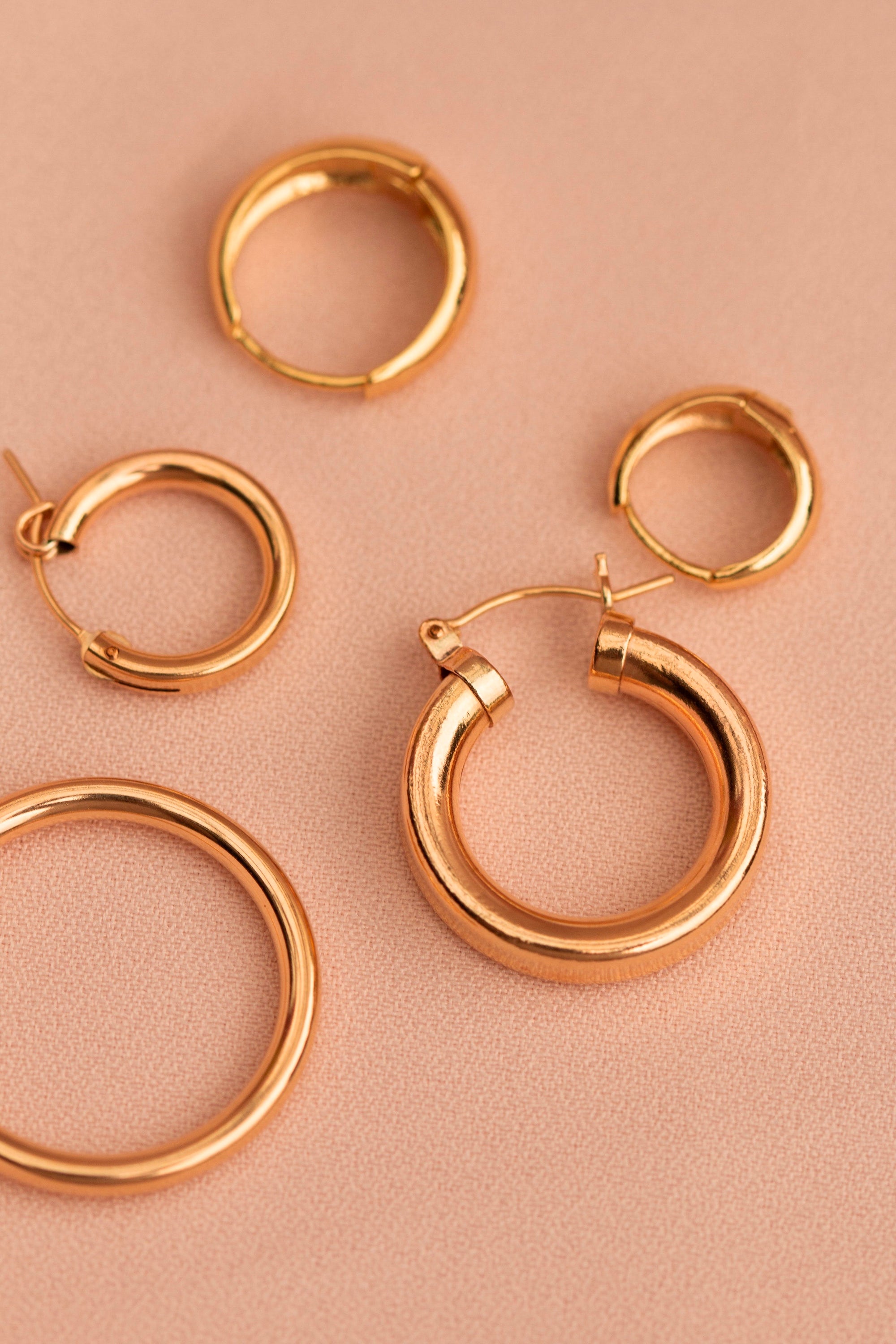 The quintessential everyday hoops and our best-selling design since 2019. These mid-sized earrings can be dressed up or down and their lightweight design makes them perfect for daily, 24/7 wear -- rain or shine.