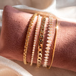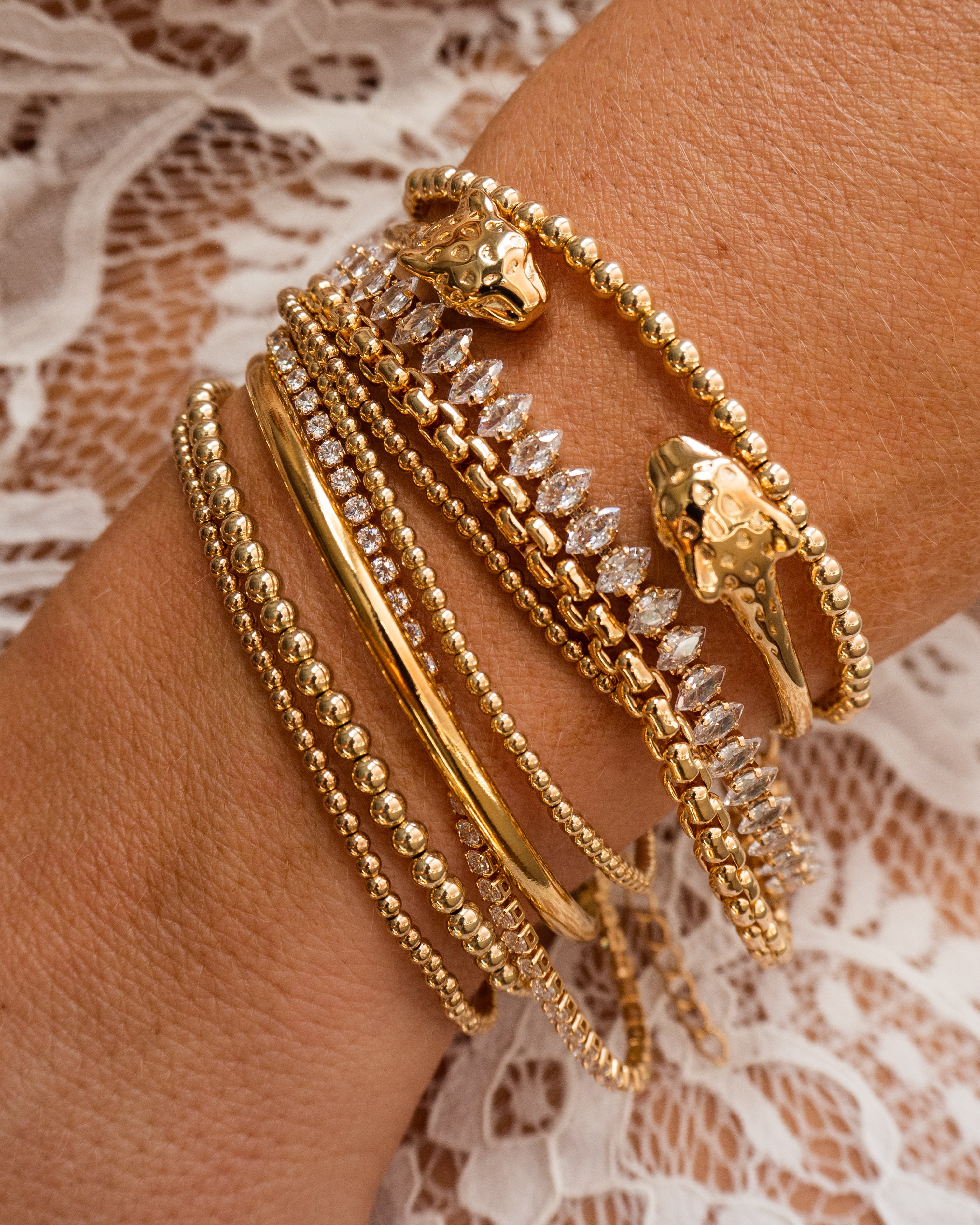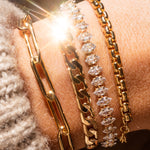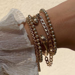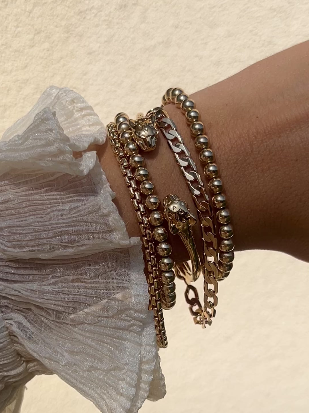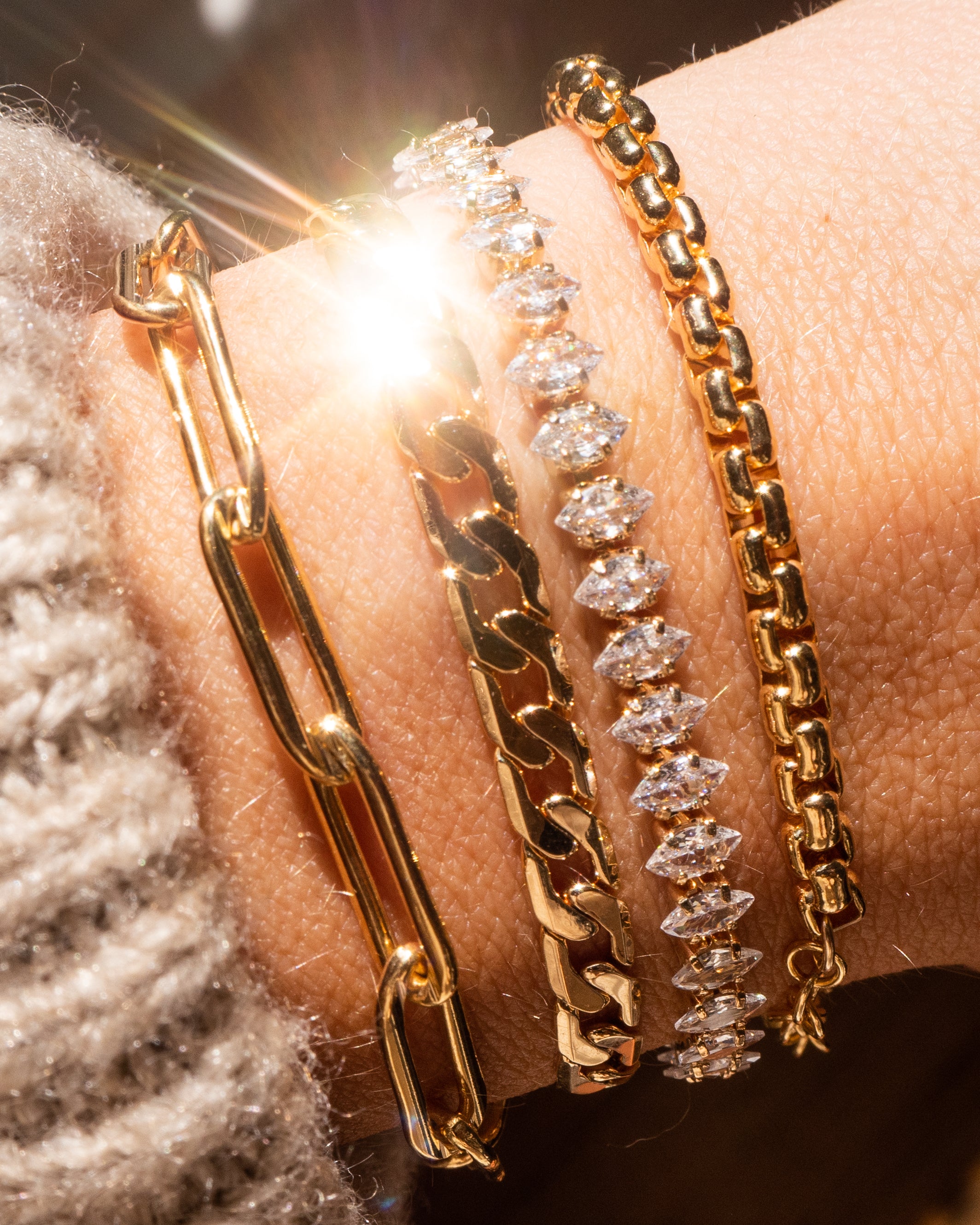 The Holden bracelet exudes robust simplicity - meaning the piece stands beautifully on its own, while pairing well with others in your stack. The rounded Venetian chain offers a unique texture unlike anything we offer in our current line. You'll feel the weight and luxury of this piece, designed to be worn alone or stacked high.