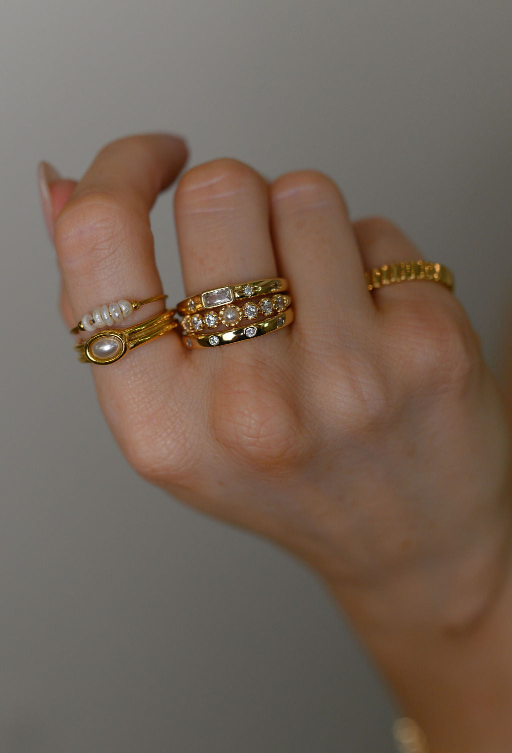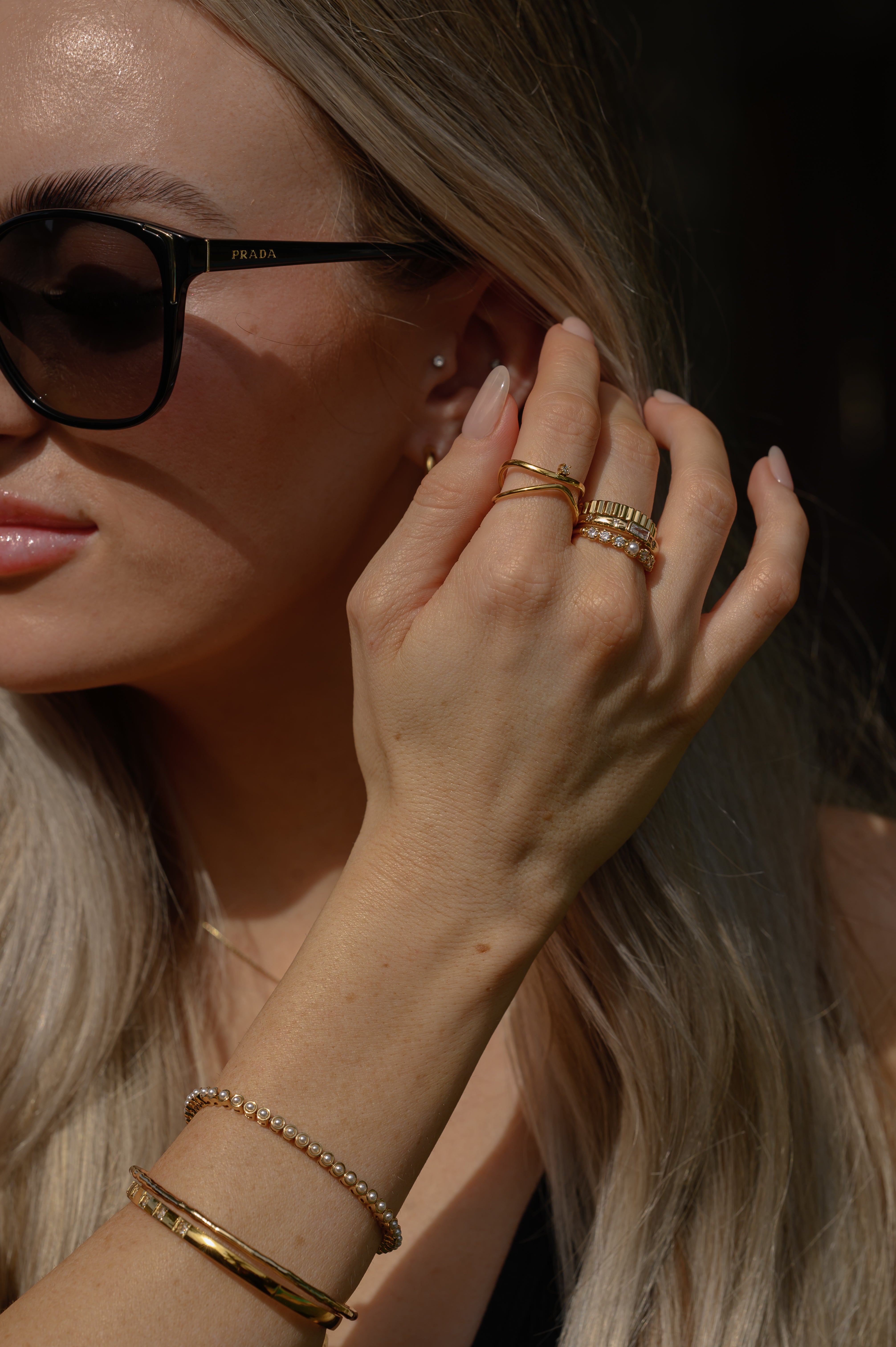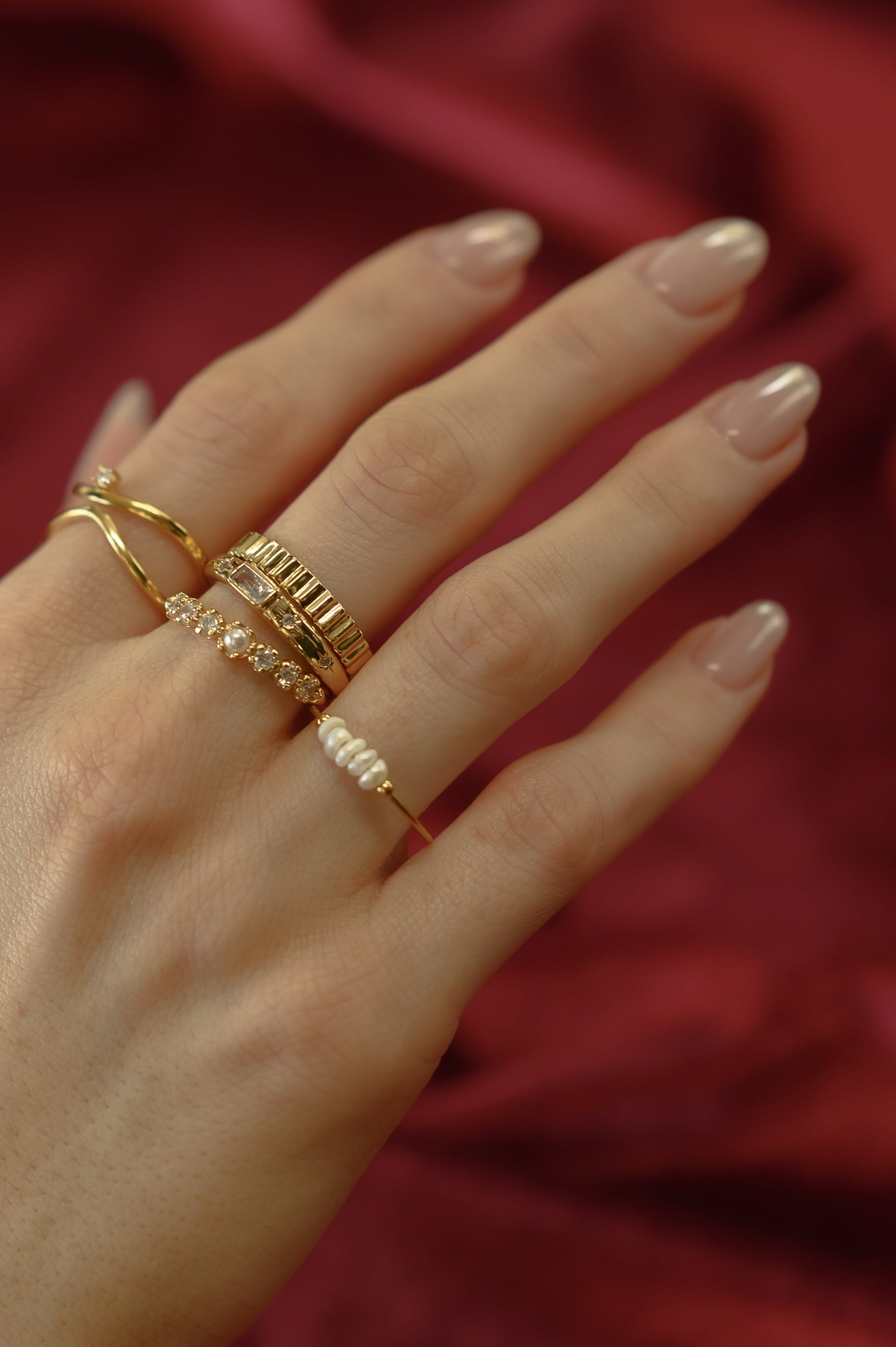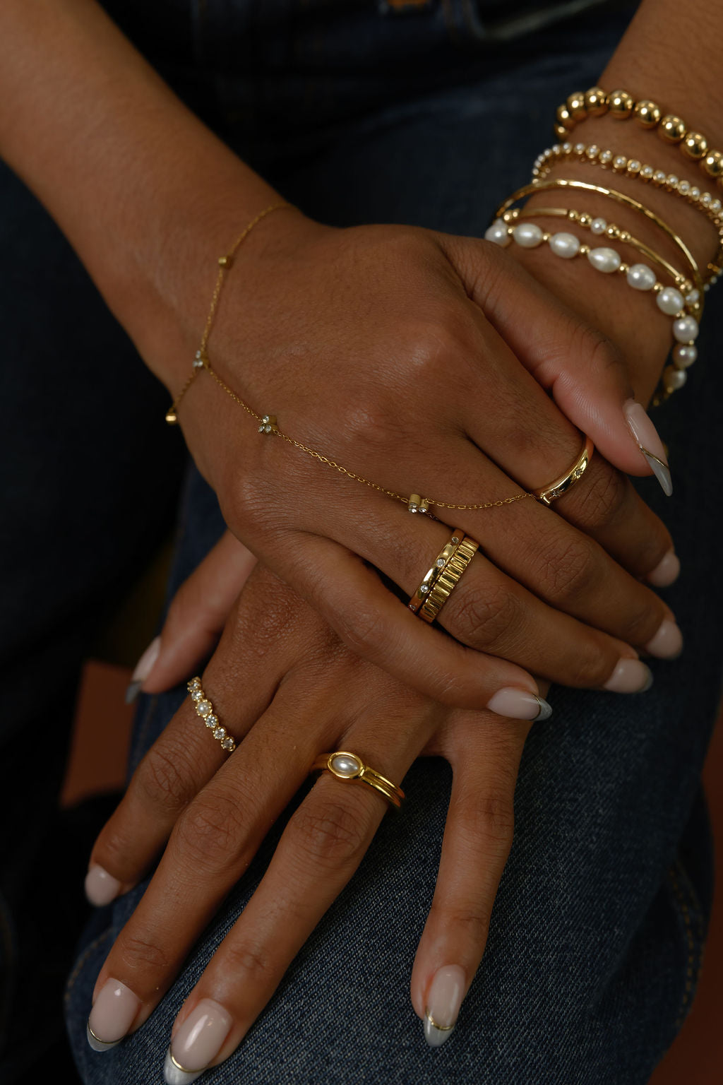 Dazzling stones frame a center freshwater pearl to channel the shape of an opened pearl. The Fleur De Sel Ring is as ethereal as it is feminine.