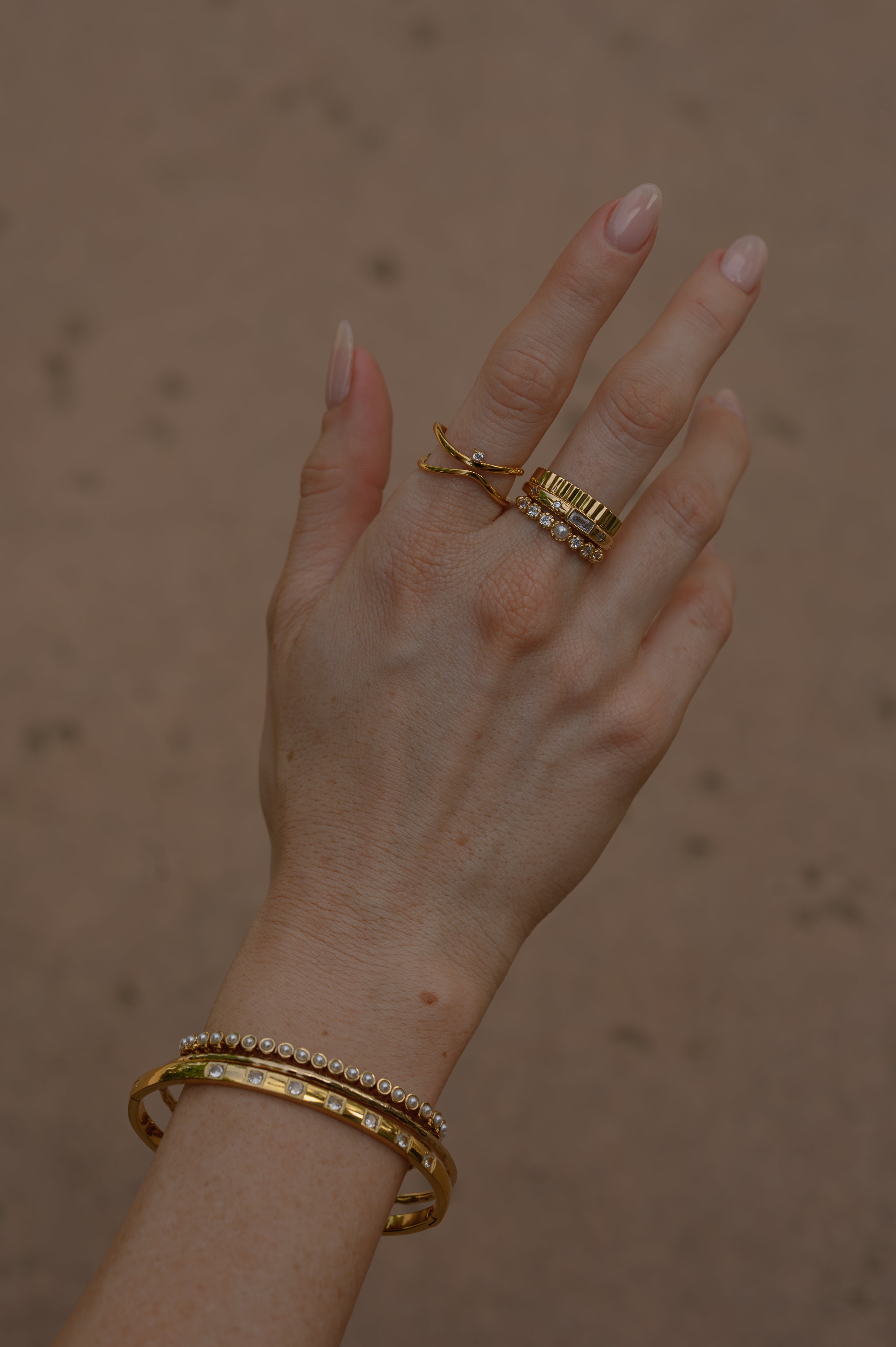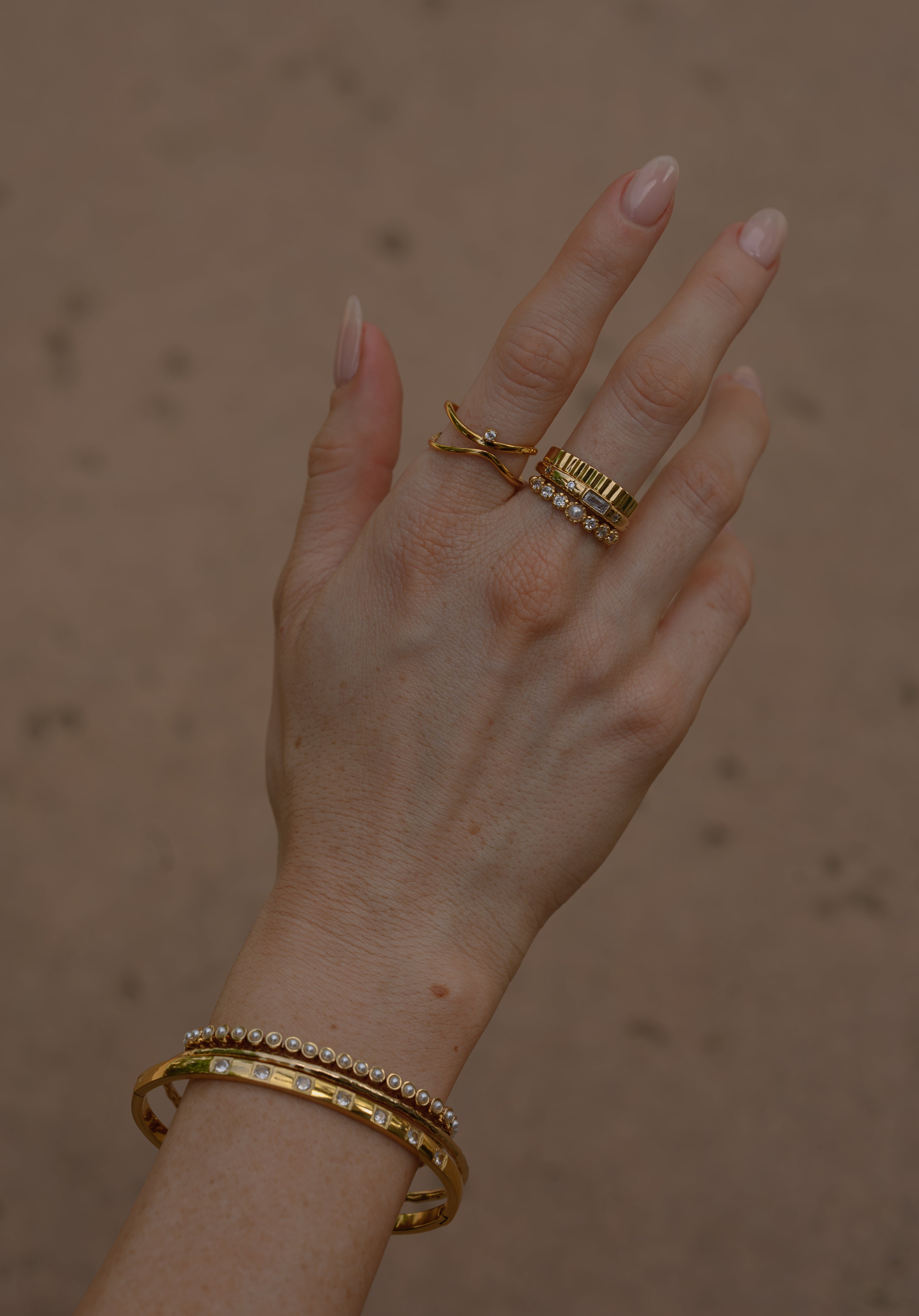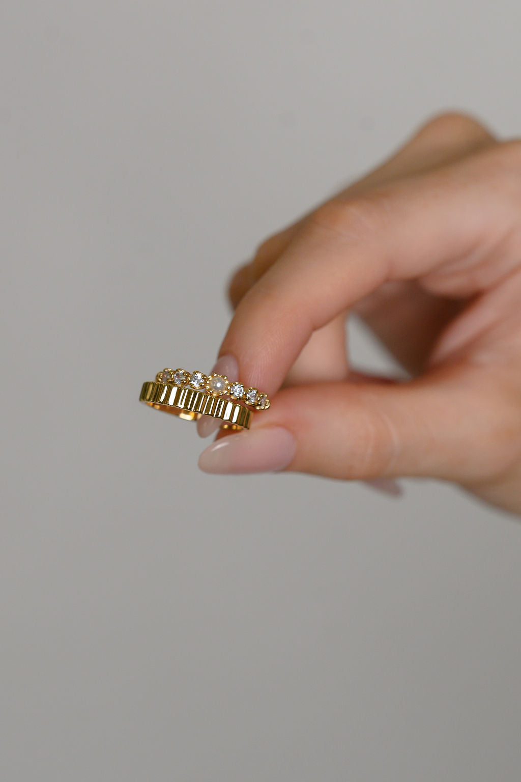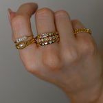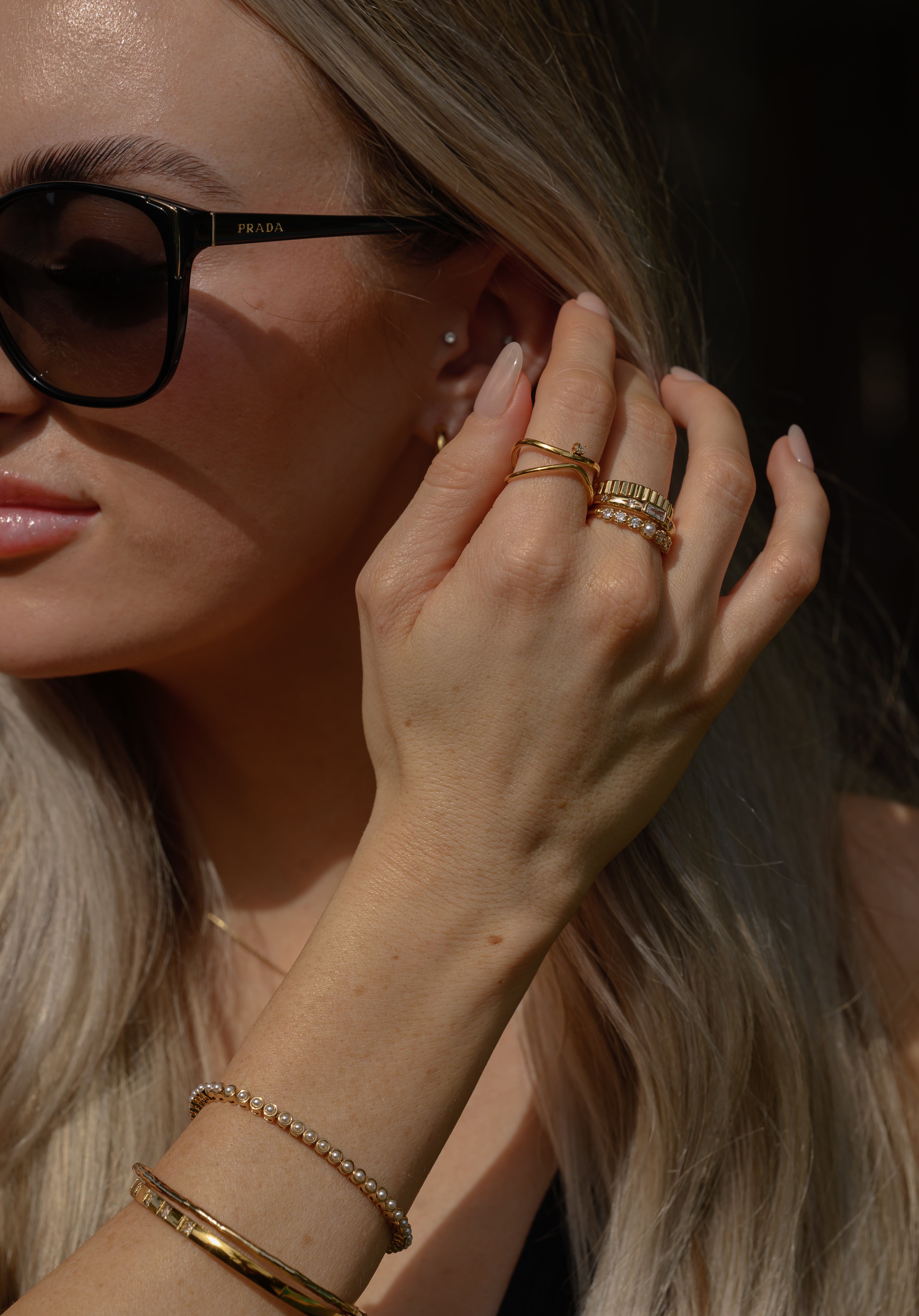 Dazzling stones frame a center freshwater pearl to channel the shape of an opened pearl. The Fleur De Sel Ring is as ethereal as it is feminine.