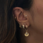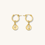 A classic pair of everyday huggies with a summer flair, the Marin Earrings are versatile can be sport with or without the shell charm. Take your stack to the beach, and slide the charms off for a pair of earrings that can be worn in and out of the water.