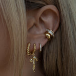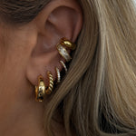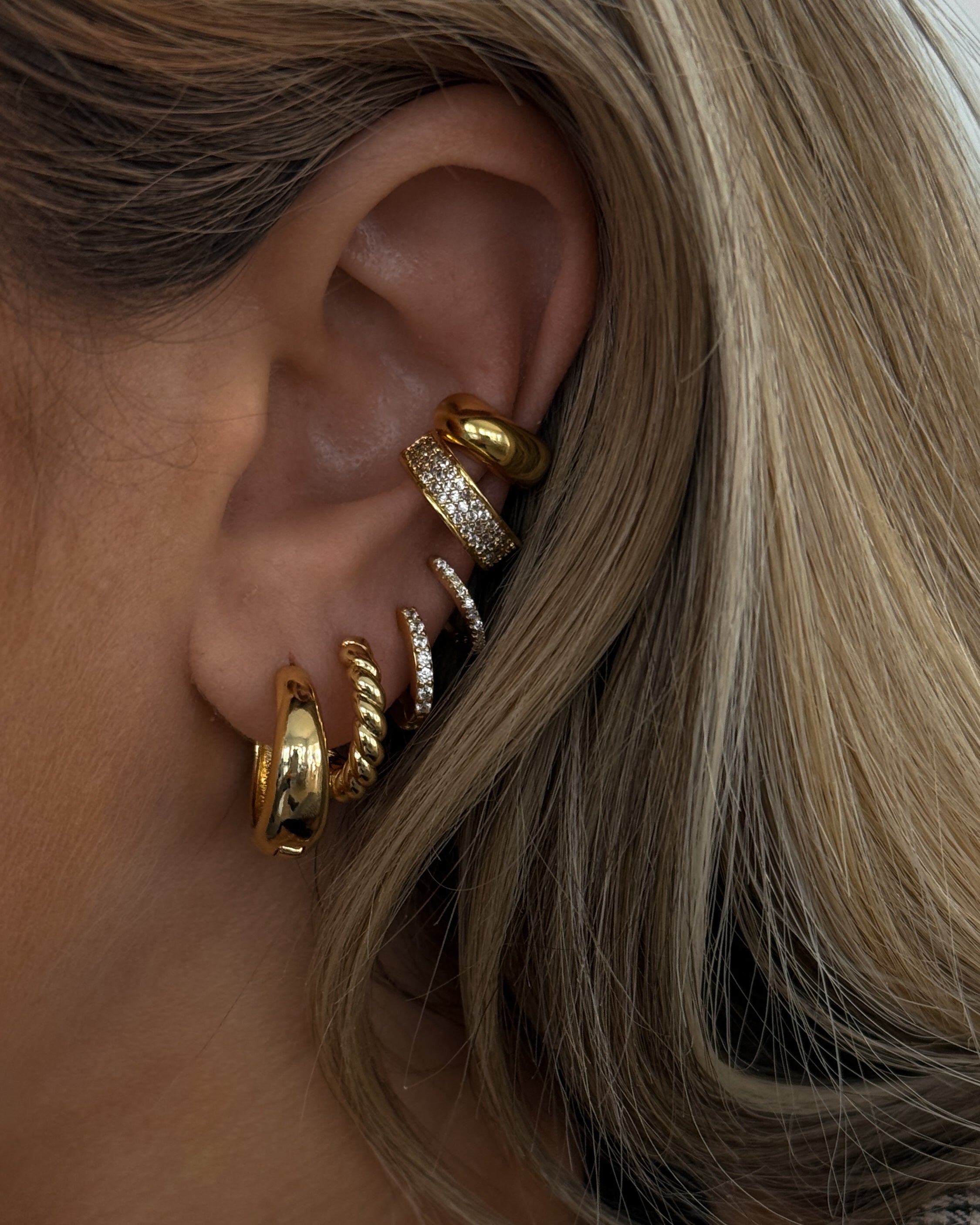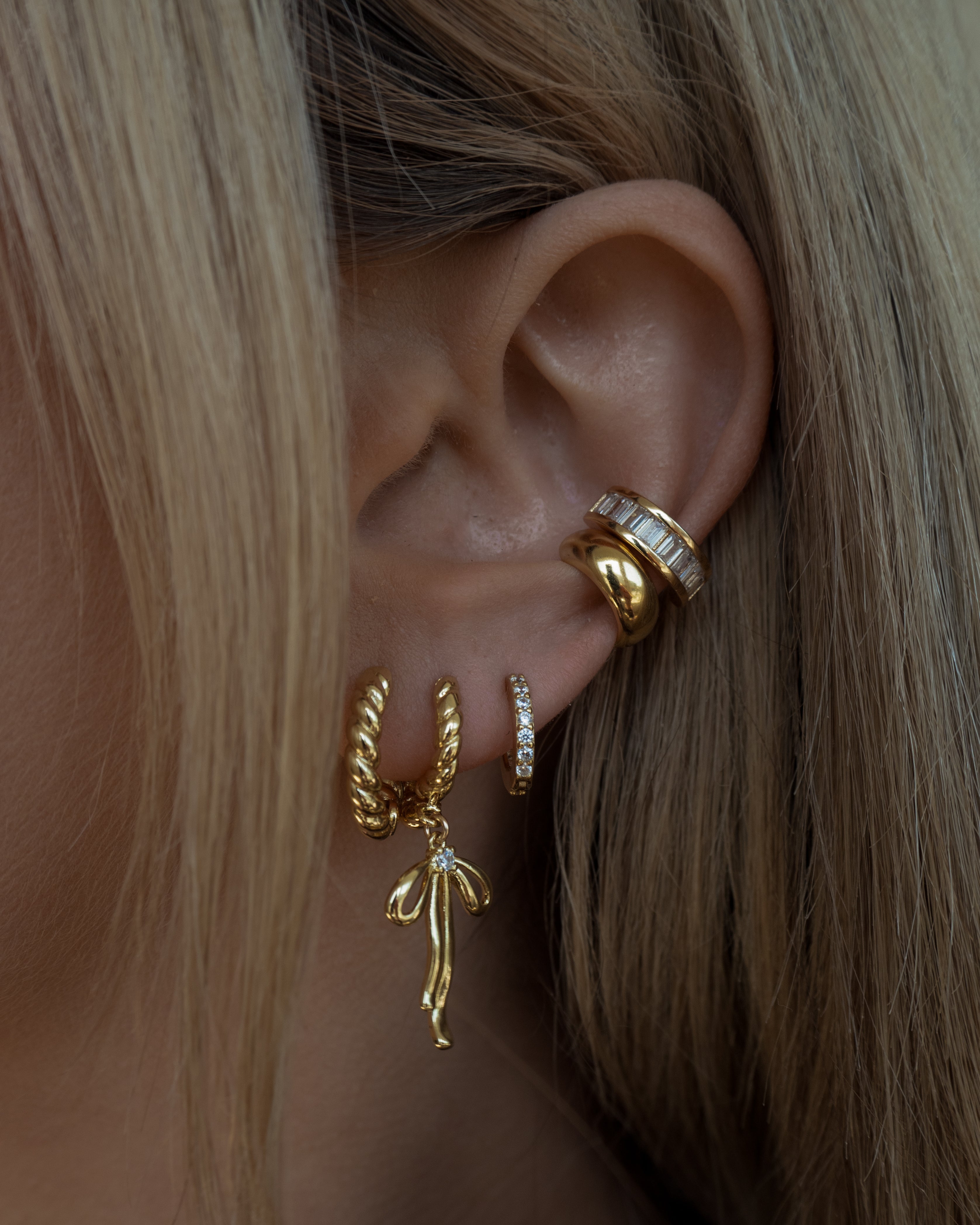 The Goldie Earrings are a thin and sleek vintage-inspired pair reminiscent of something you'd find in your mother's jewelry box. A delicate and twisted rope texture paired with high-quality, lightweight material make these a timeless staple piece.