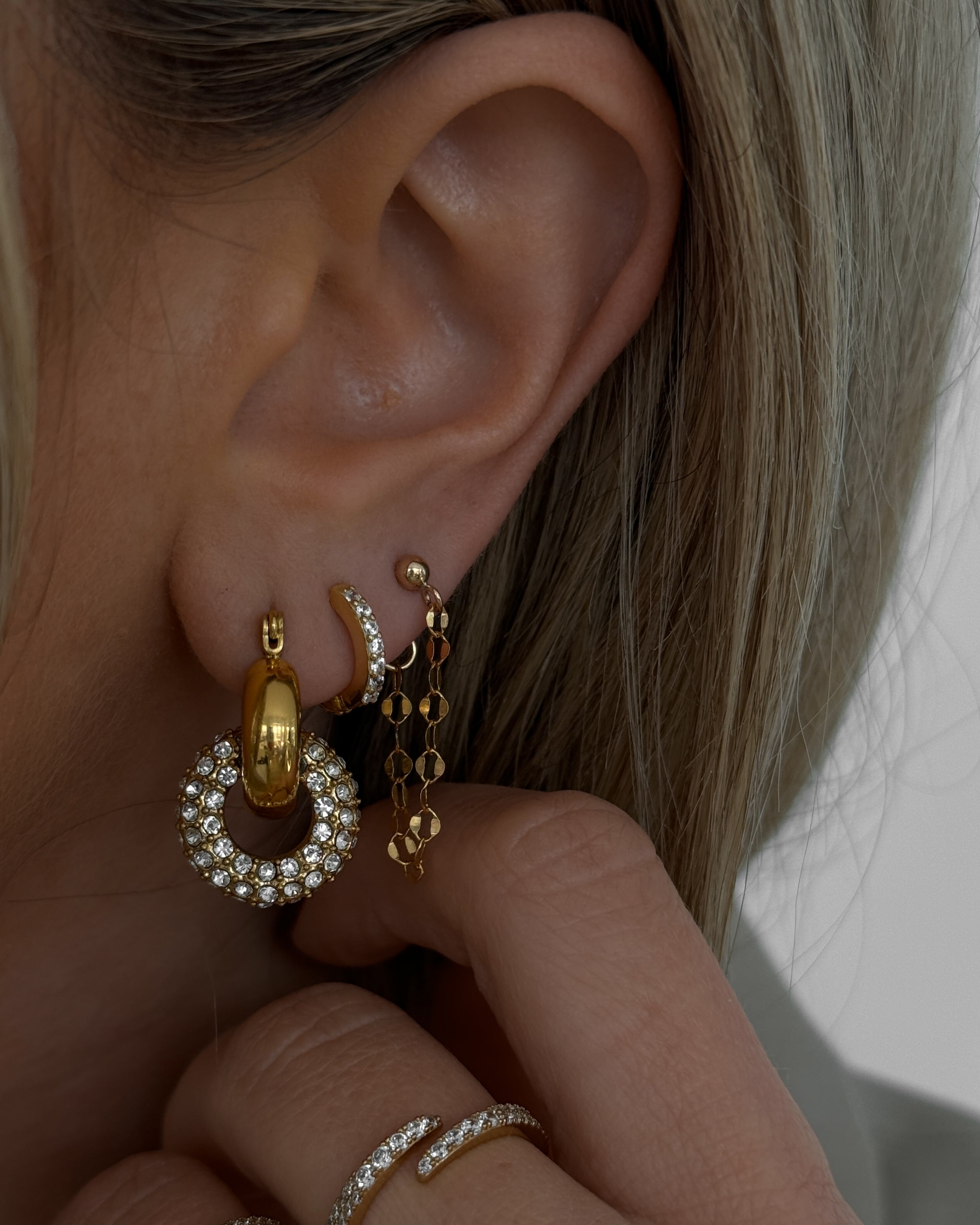 These sparkle chain earrings add extra dimension and texture to your earring stack. Super lightweight, eye-catching, and the perfect piece to elevate your earring game - the look of a stud with the dangling element of a threader.