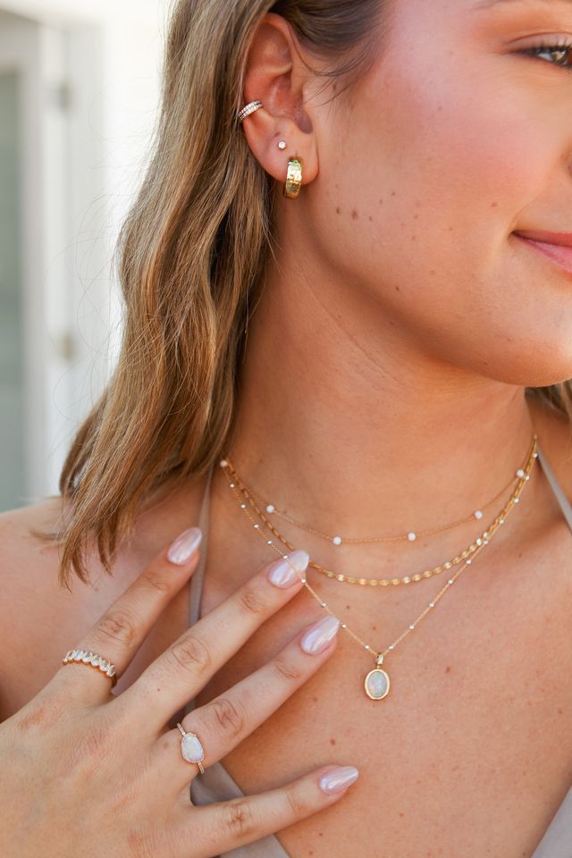 Victoria Garrick Browne is a viral content creator, founder, and public speaker who isn't afraid to get real. Her mission is to de-stigmatize the conversation around mental health and encourage all people to be their unfiltered selves. Our 10-piece collection with Victoria is unlike anything we've ever done. From ethereal opal pieces, to iridescent moonstone, to two-tone hoops that will effortlessly pair with any outfit, this collection has something for everyone.