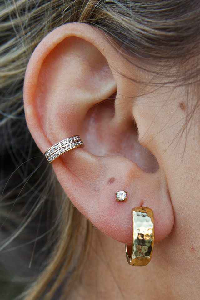 Get ready to say hello to your new favorite pair of everyday gold hoops. These earrings are the perfect size for everyday wear, and the textured design allows light to bounce off the earrings, making them a small, but mighty force on your ears.
