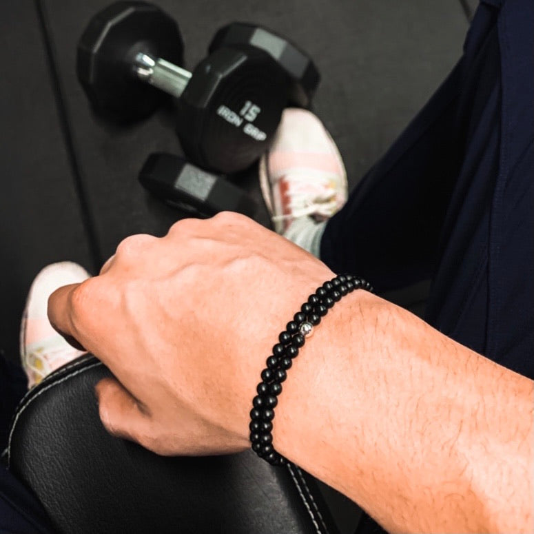 The JC Bracelet is a matte onyx stone bracelet comfortable enough to keep on 24/7, and perfect for the man with an active lifestyle. Slip on and accessorize alongside a watch or chain bracelet, and elevate any classic look.