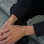 The Essie Bracelet is a slim box chain bracelet that looks just as good on its own as paired with any other accessories. Subtle texture is a must-have in any stack, and the Essie Bracelet adds this effortlessly.