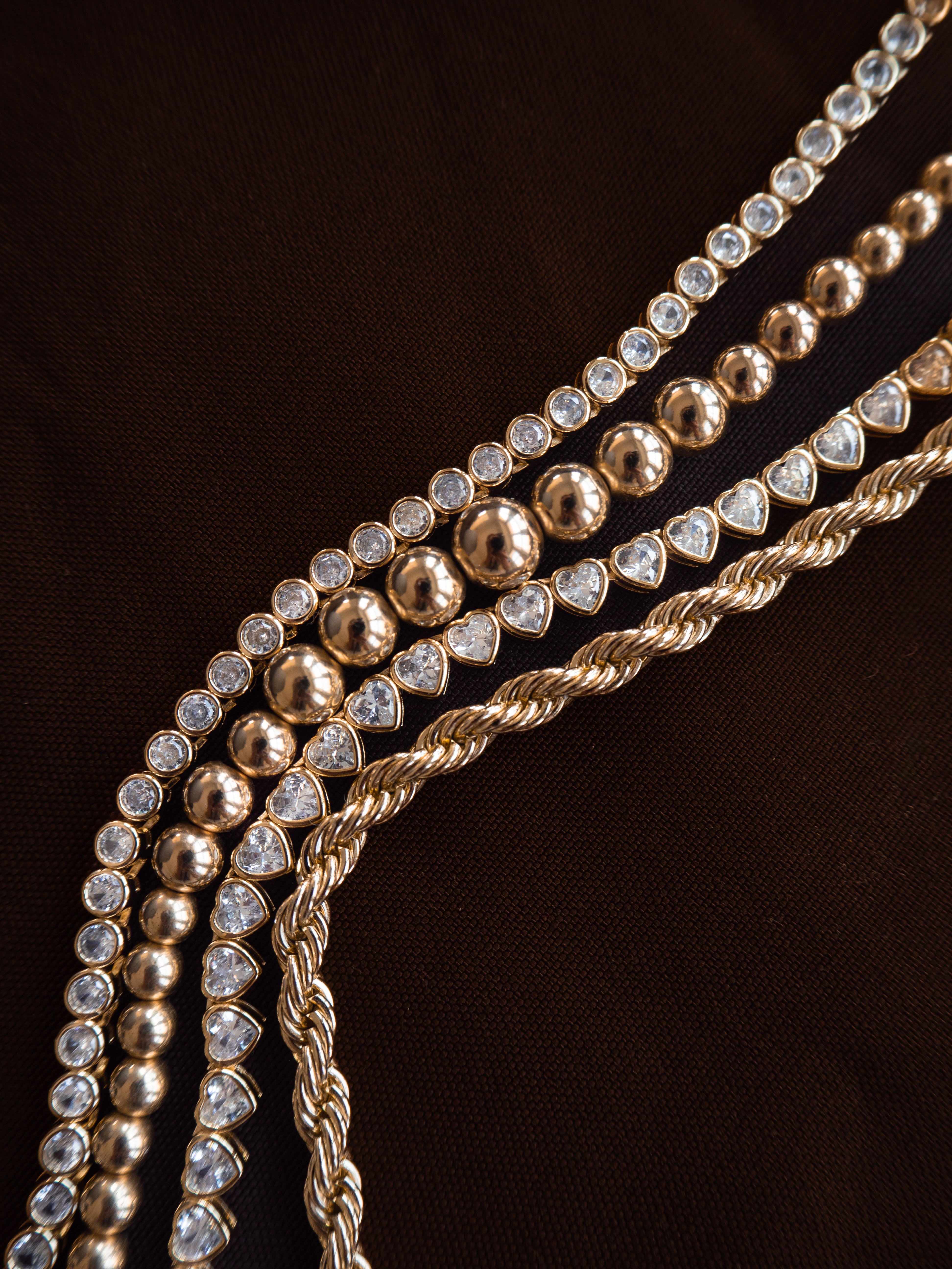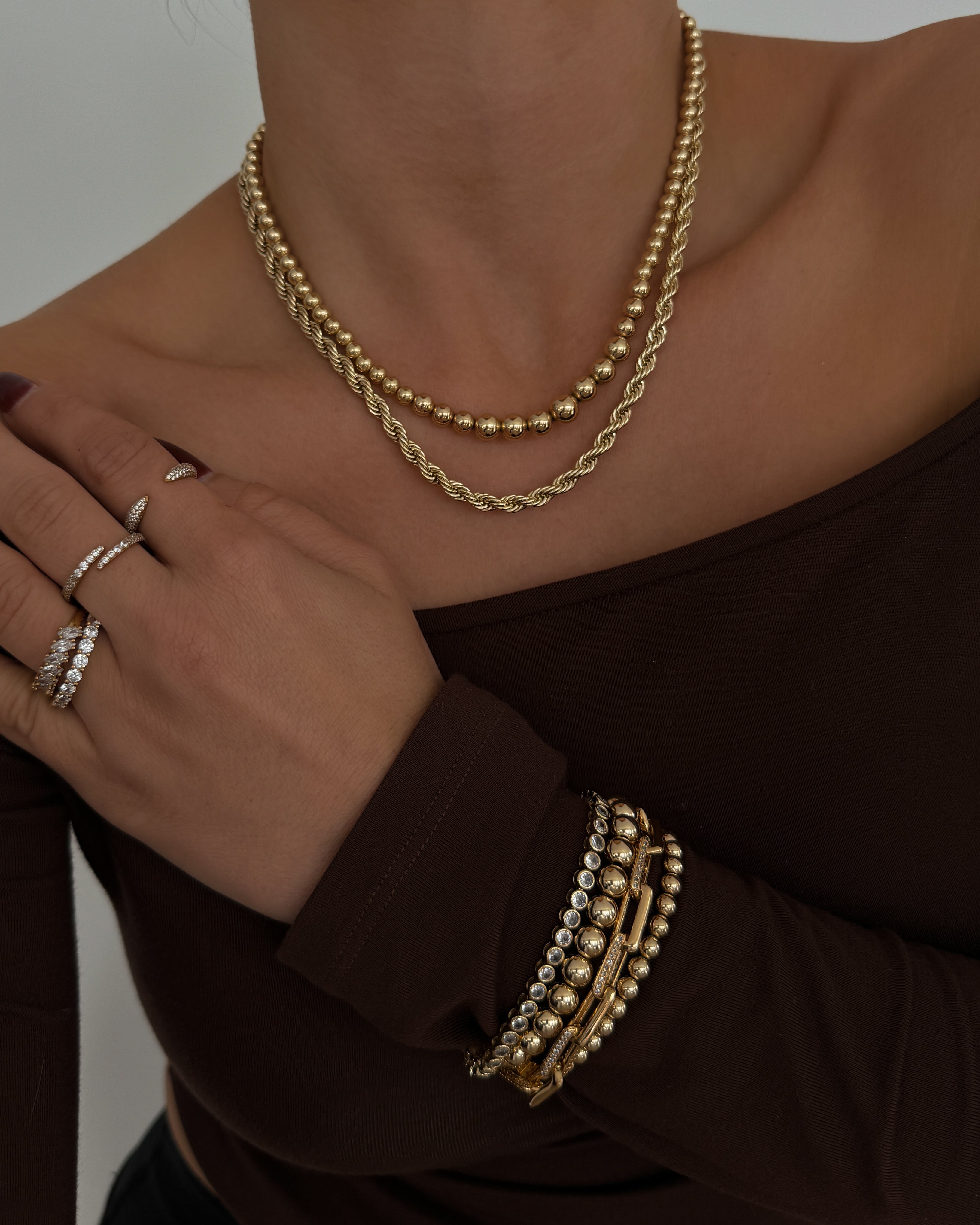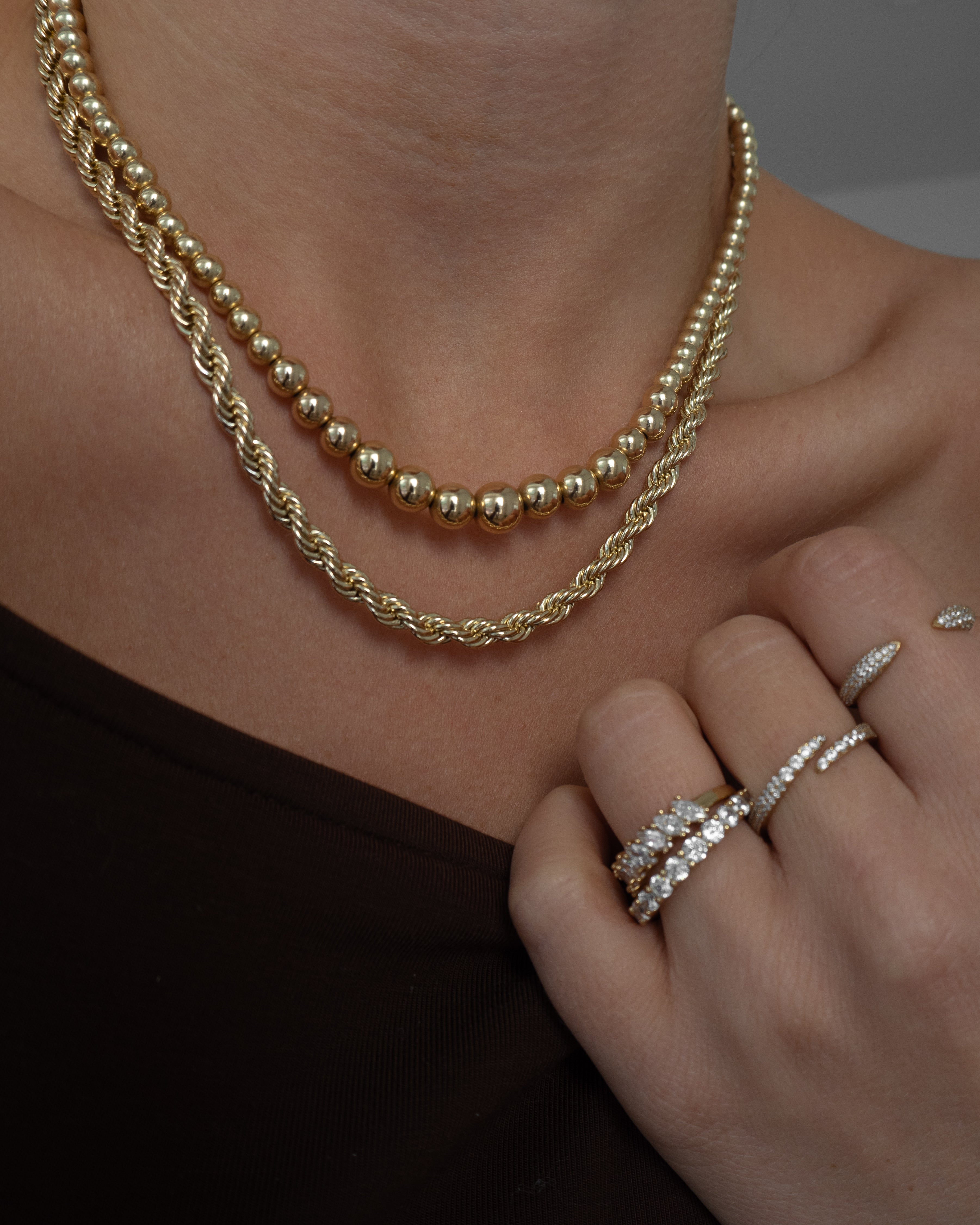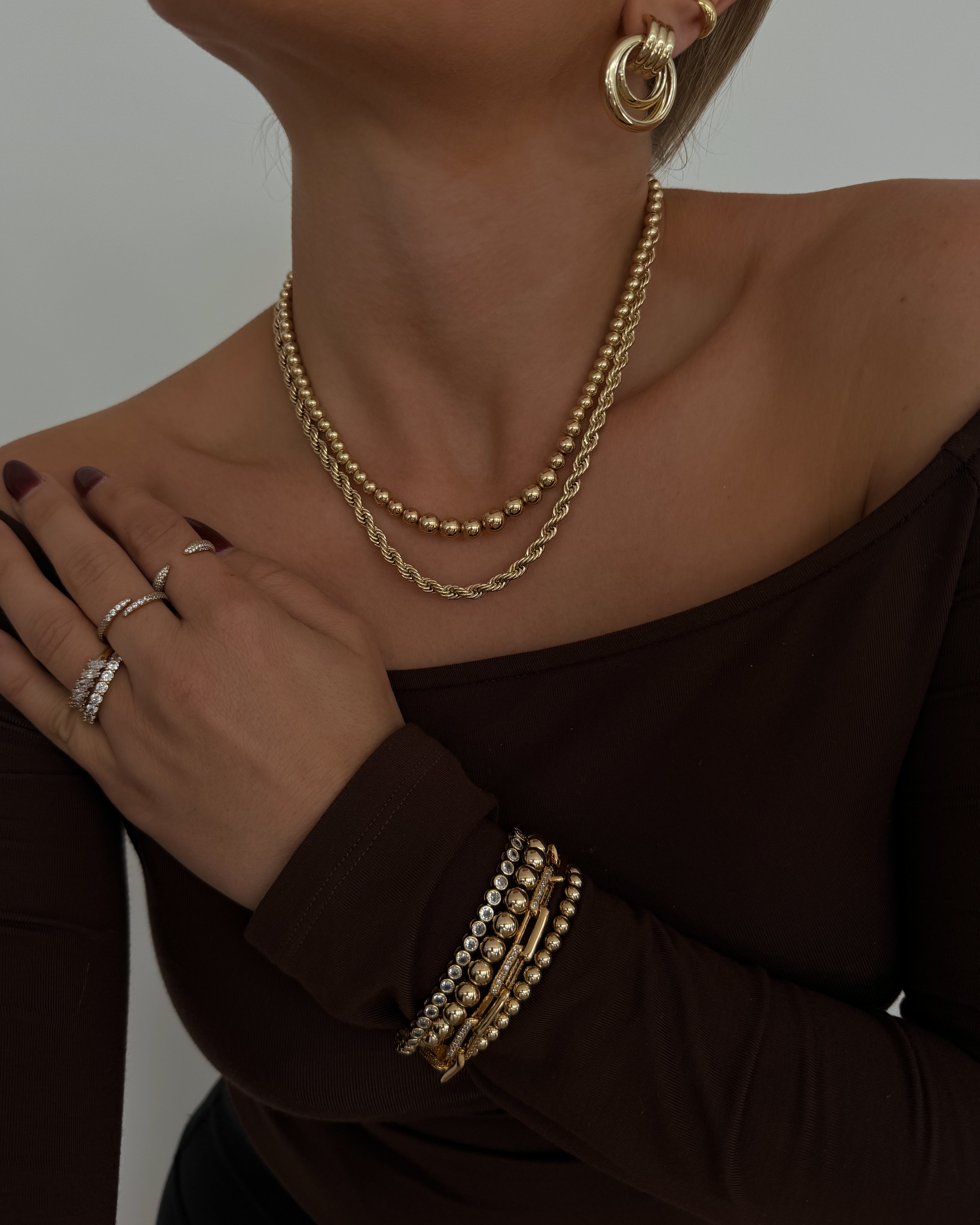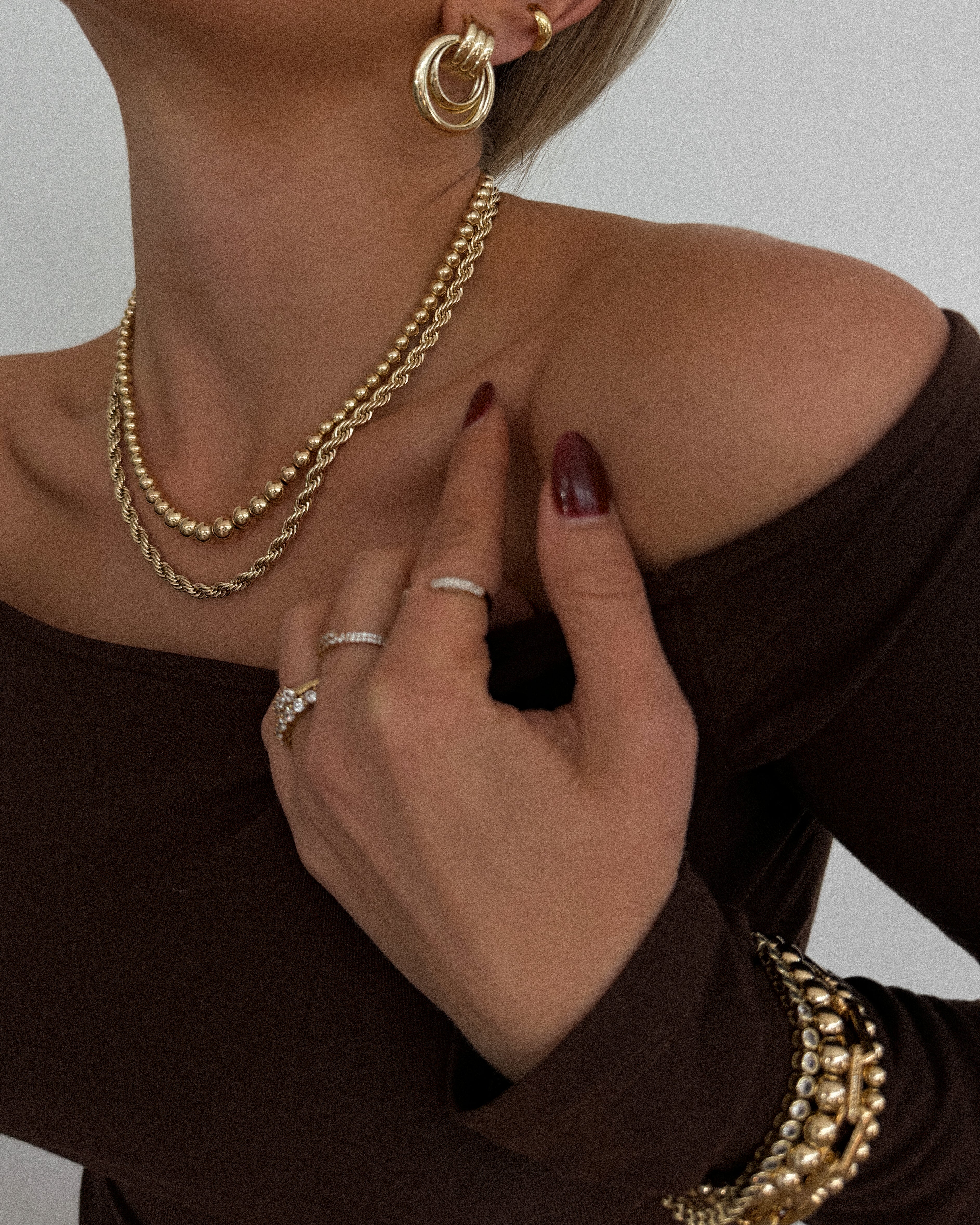 The perfect middle ground between the Jumbo Rio and the Mini Rio, this bestselling necklace is back in a new size that's truly perfect for every outfit. Dress the necklace down for work with a chic blazer and high neck top, or layer with your favorite bold chains for a waterfall of gold cascading down your neck -- this shimmery rope chain is luxe and versatile. Better yet, pair your stack with a white button up for the easiest look ever.