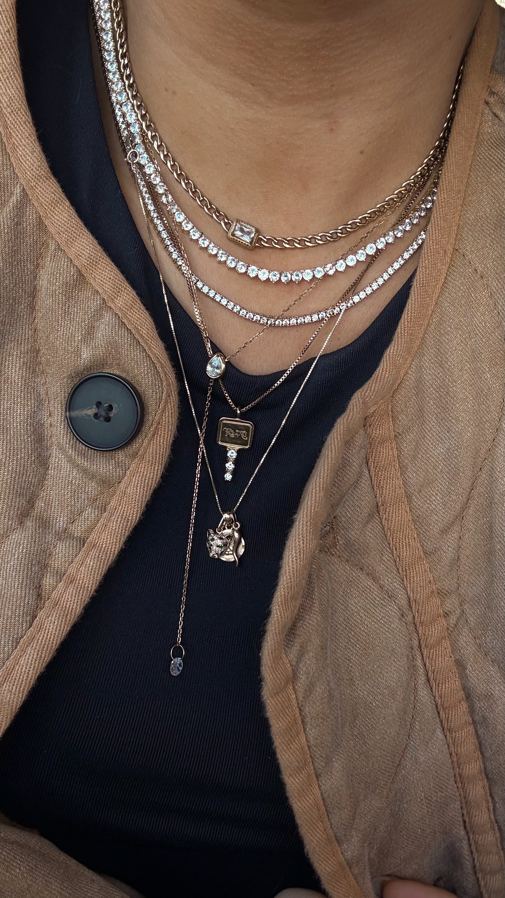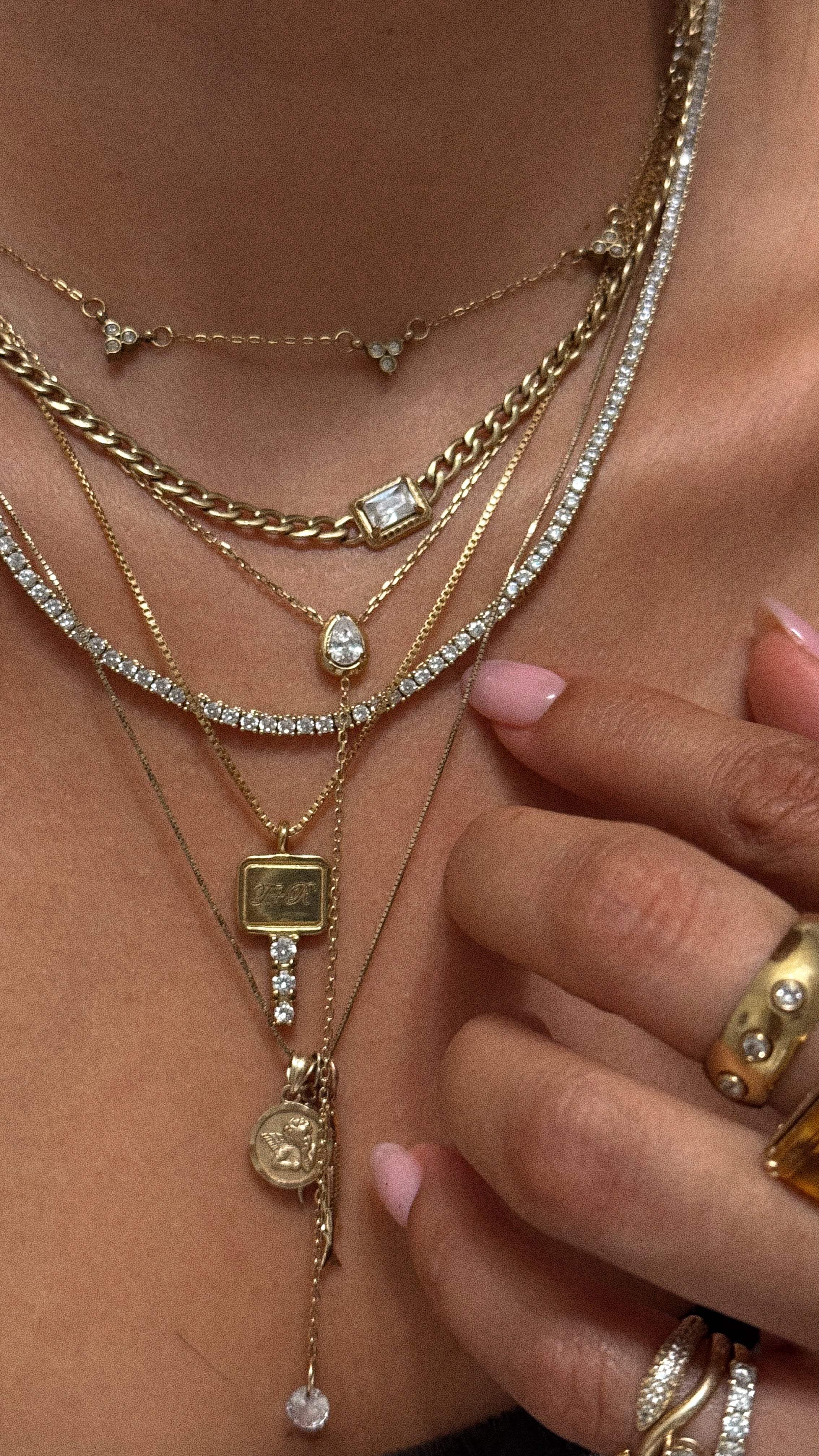 Our most sleek-style lariat yet, this design featuring a pear-cut CZ centerpiece and a trailing drop that elongates the neckline with refined sparkle. This piece was intentionally designed to be subtle enough to wear everyday with your favorite daily staples.
