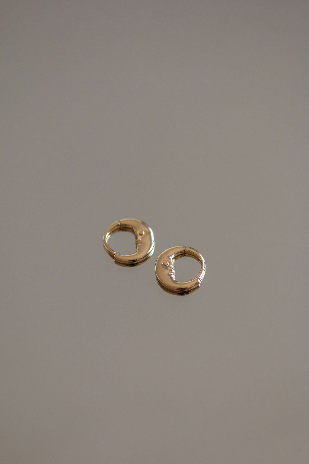 A celestial twist on a classic huggie style earring. These gold hoops feature a sculpted crescent moon face—subtle yet full of character. Wear in your lobe, cartilage, or even your rook for a whimsical, mysterious, and endlessly wearable earring.