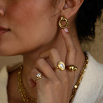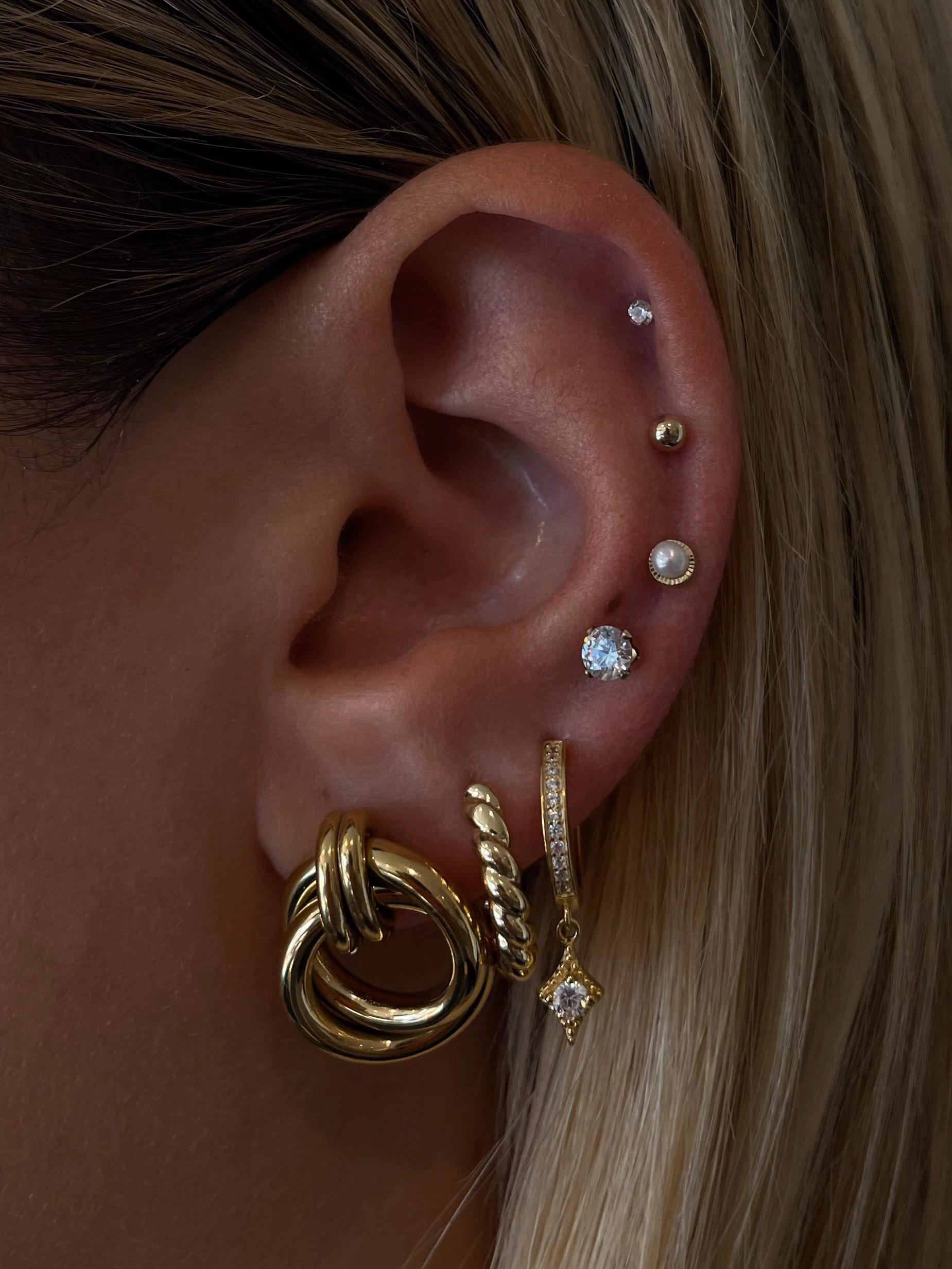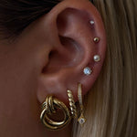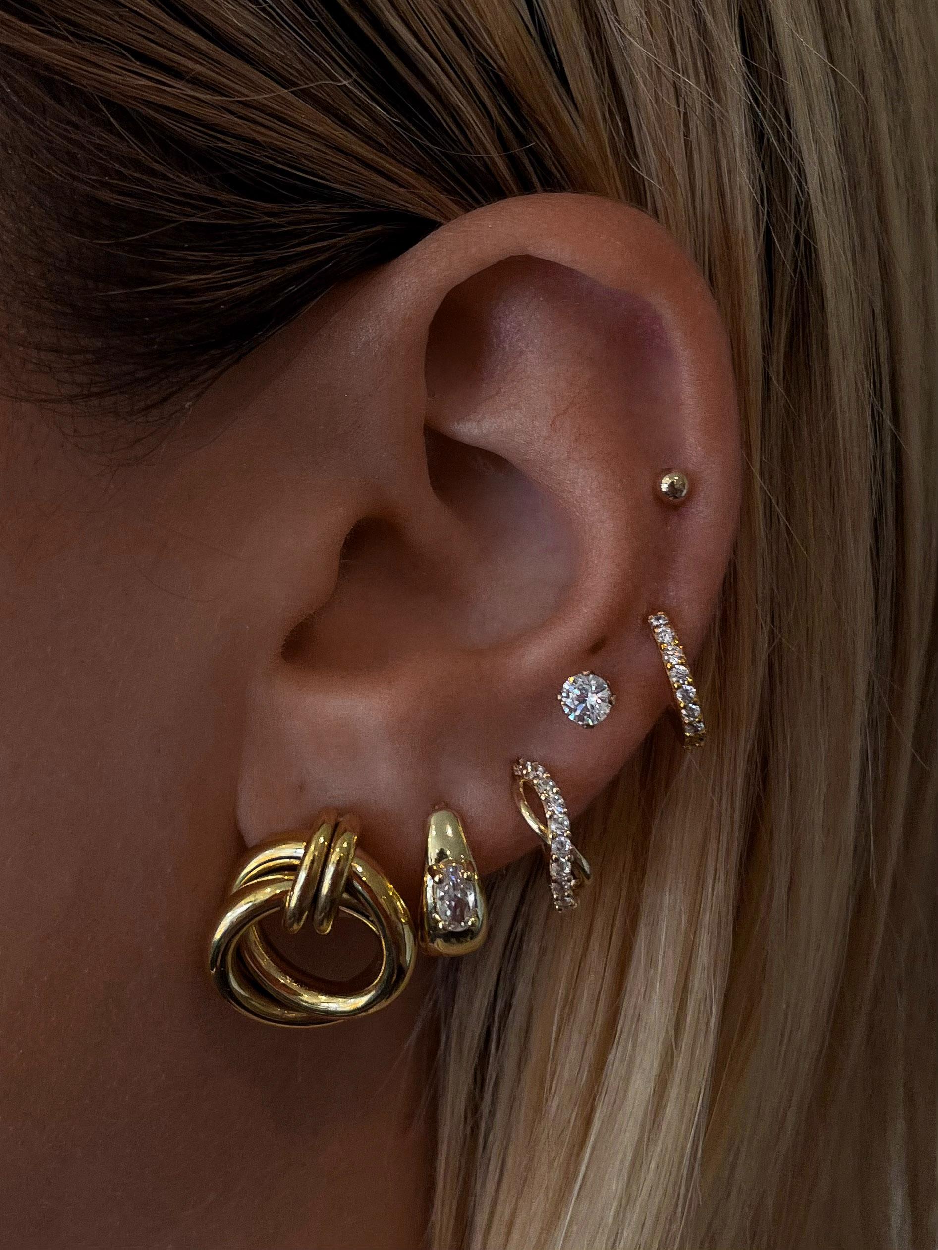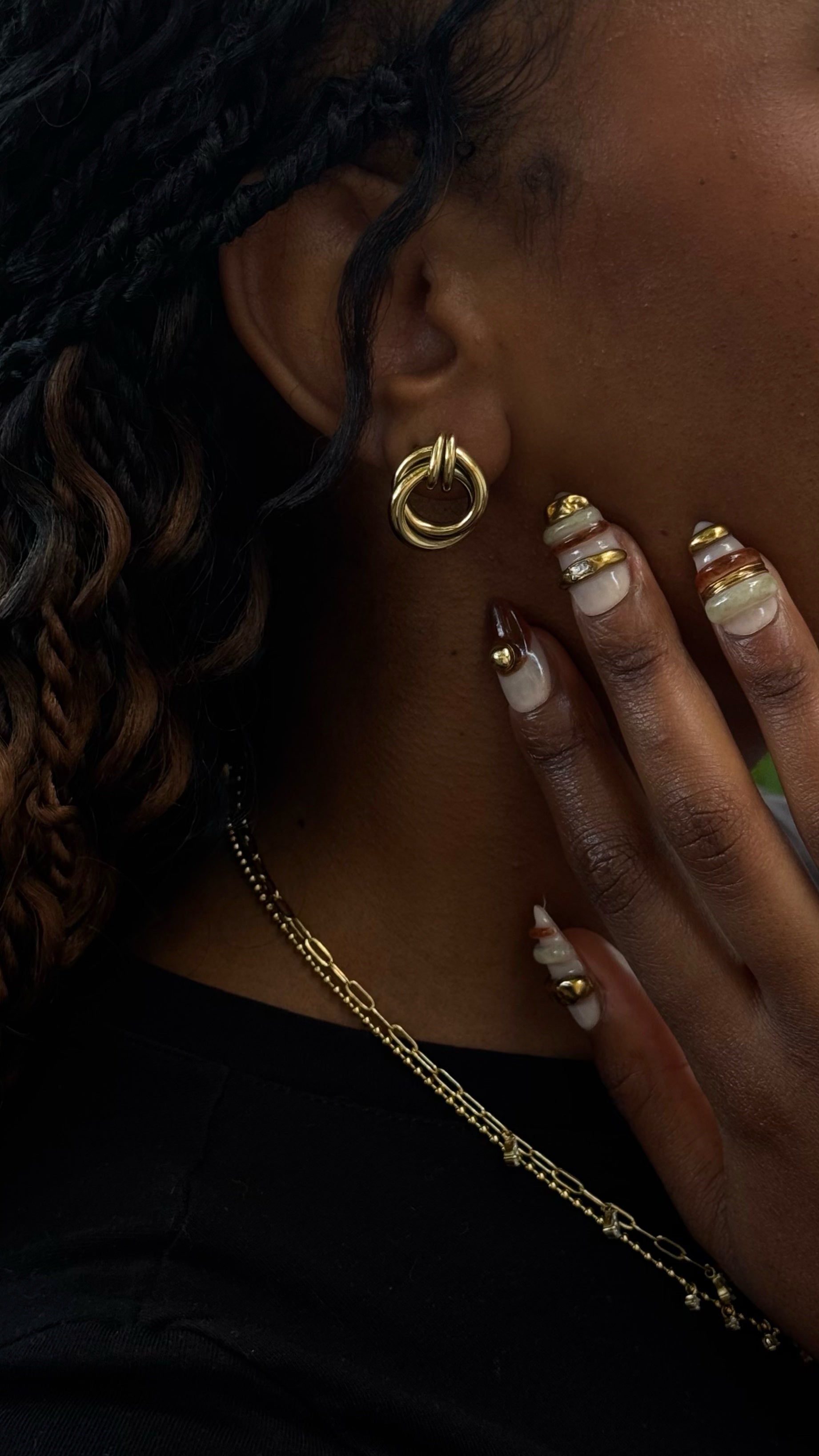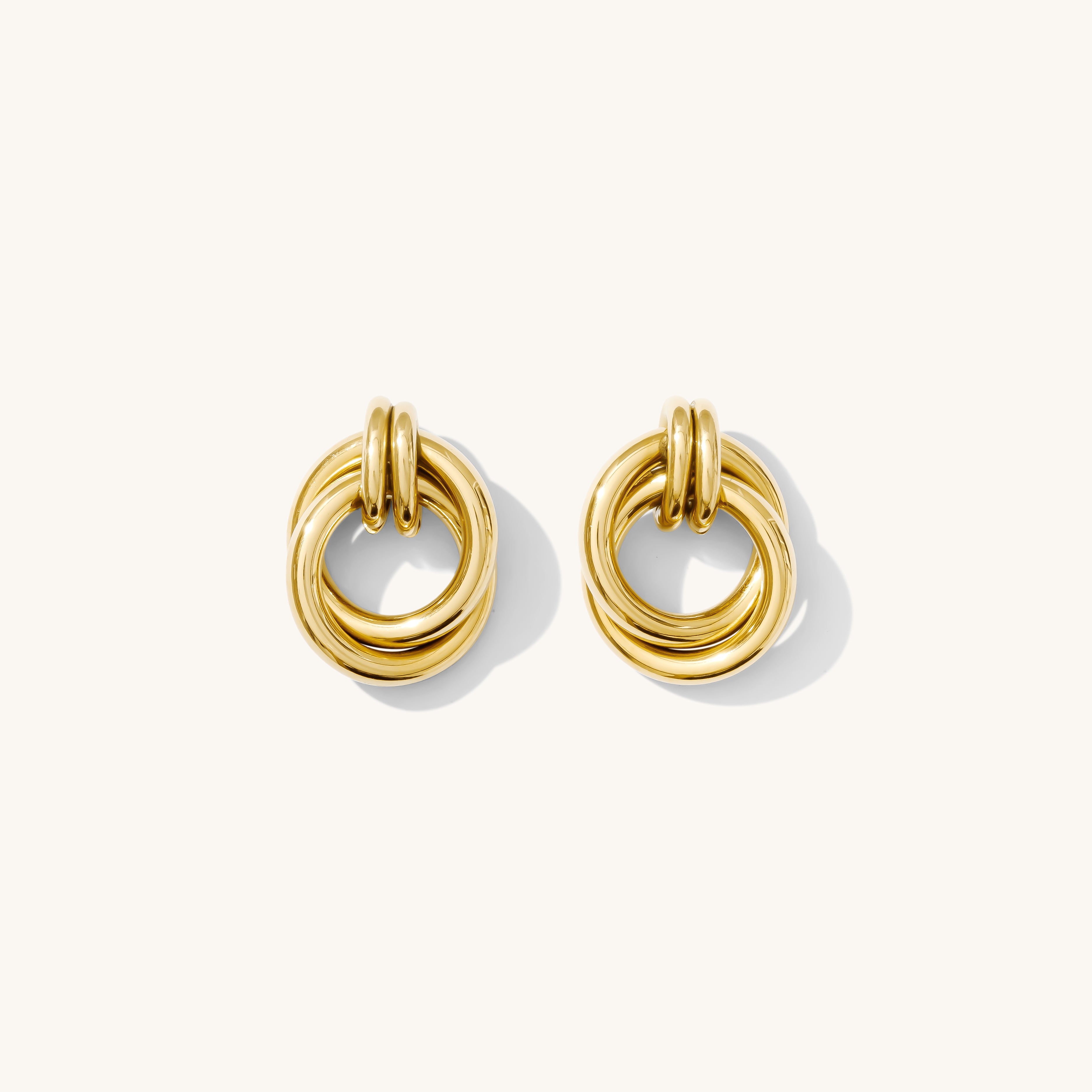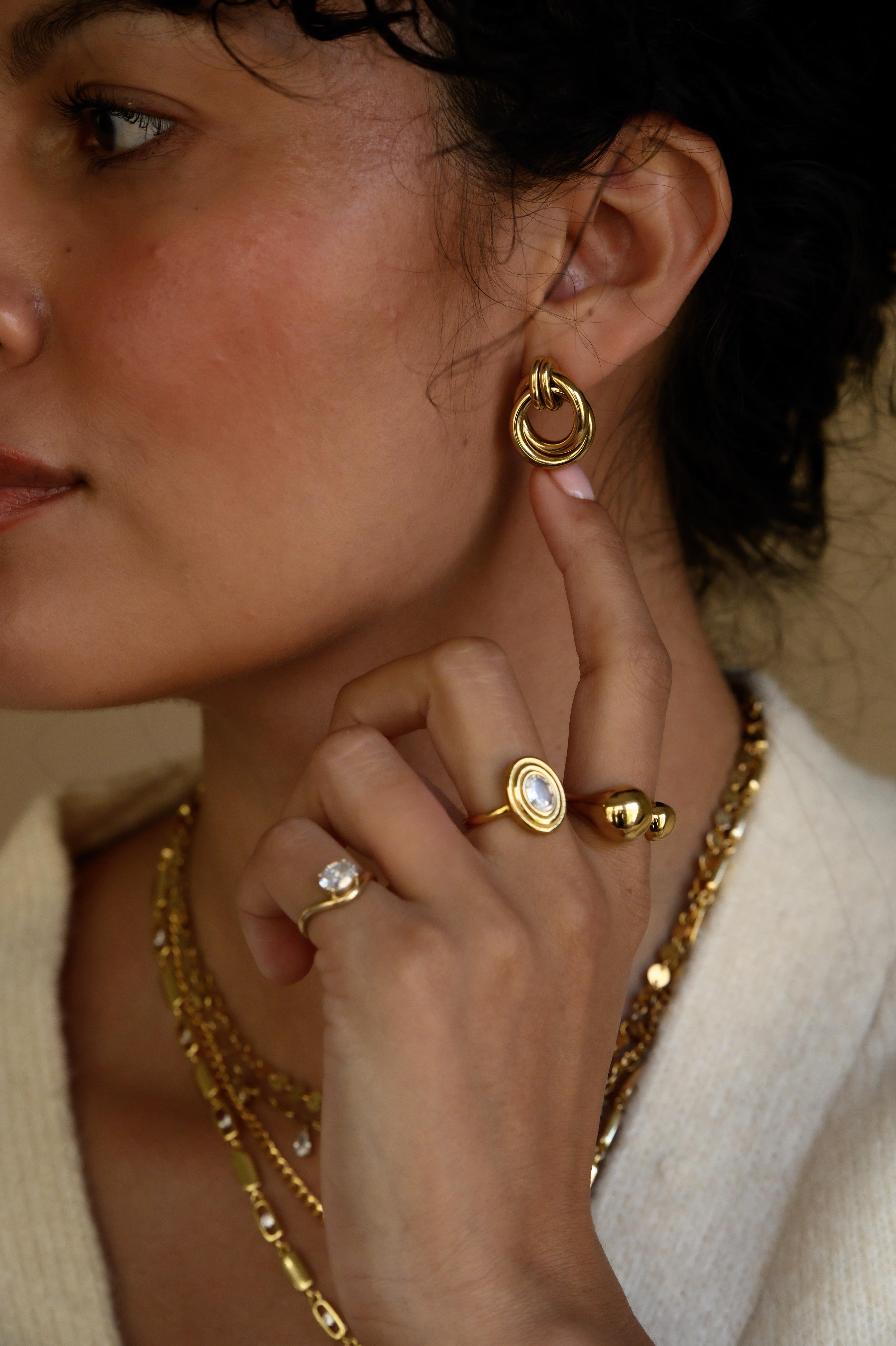 A smaller version of our cult-favorite Lucia earrings, these modern sculptural hoops loop into one another with effortless sophistication, with a size perfect for everyday wear. Their high-shine finish catches light beautifully, giving the illusion of movement. Polished yet playful, they feel like vintage gold reimagined for today.