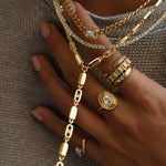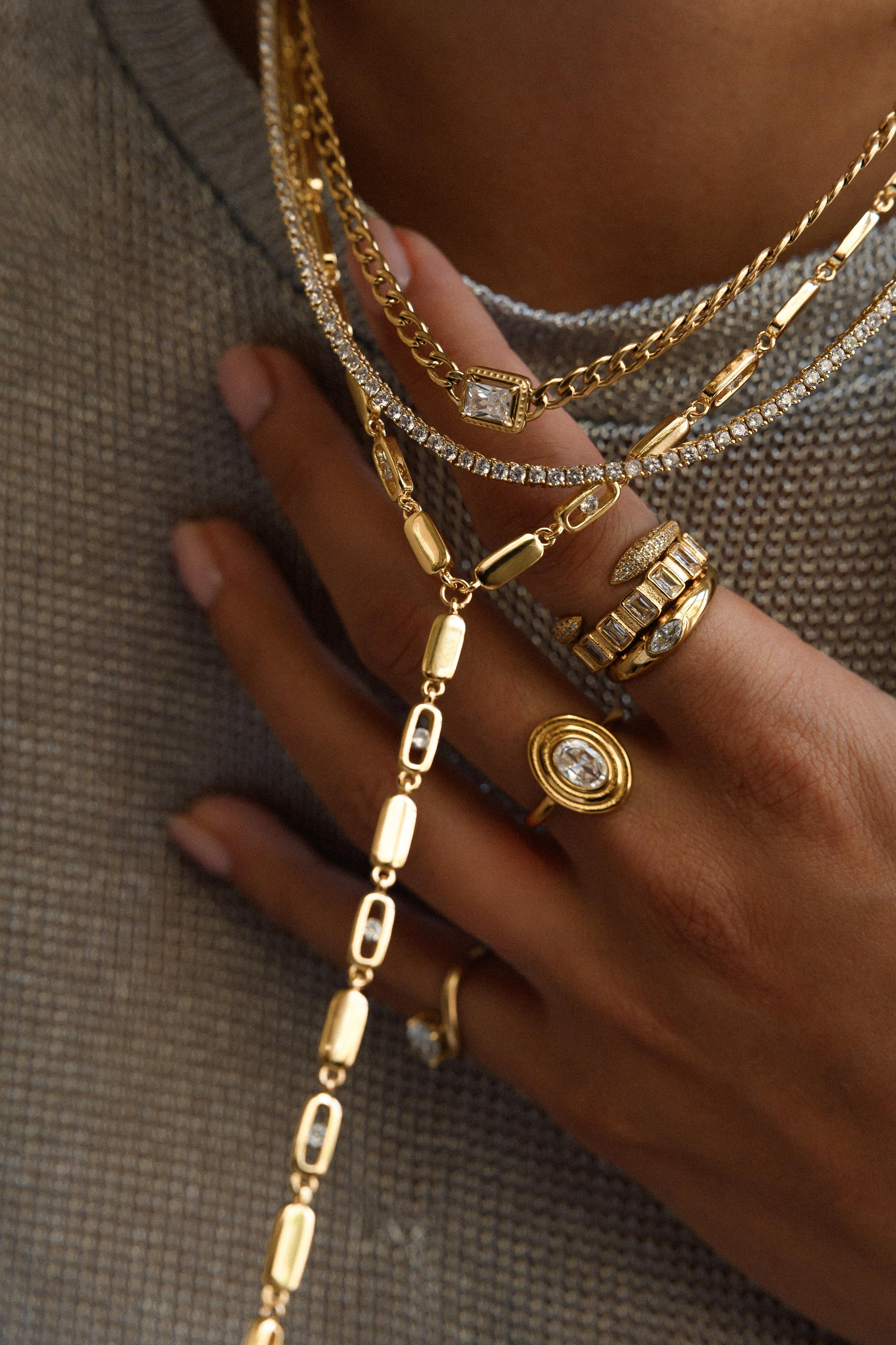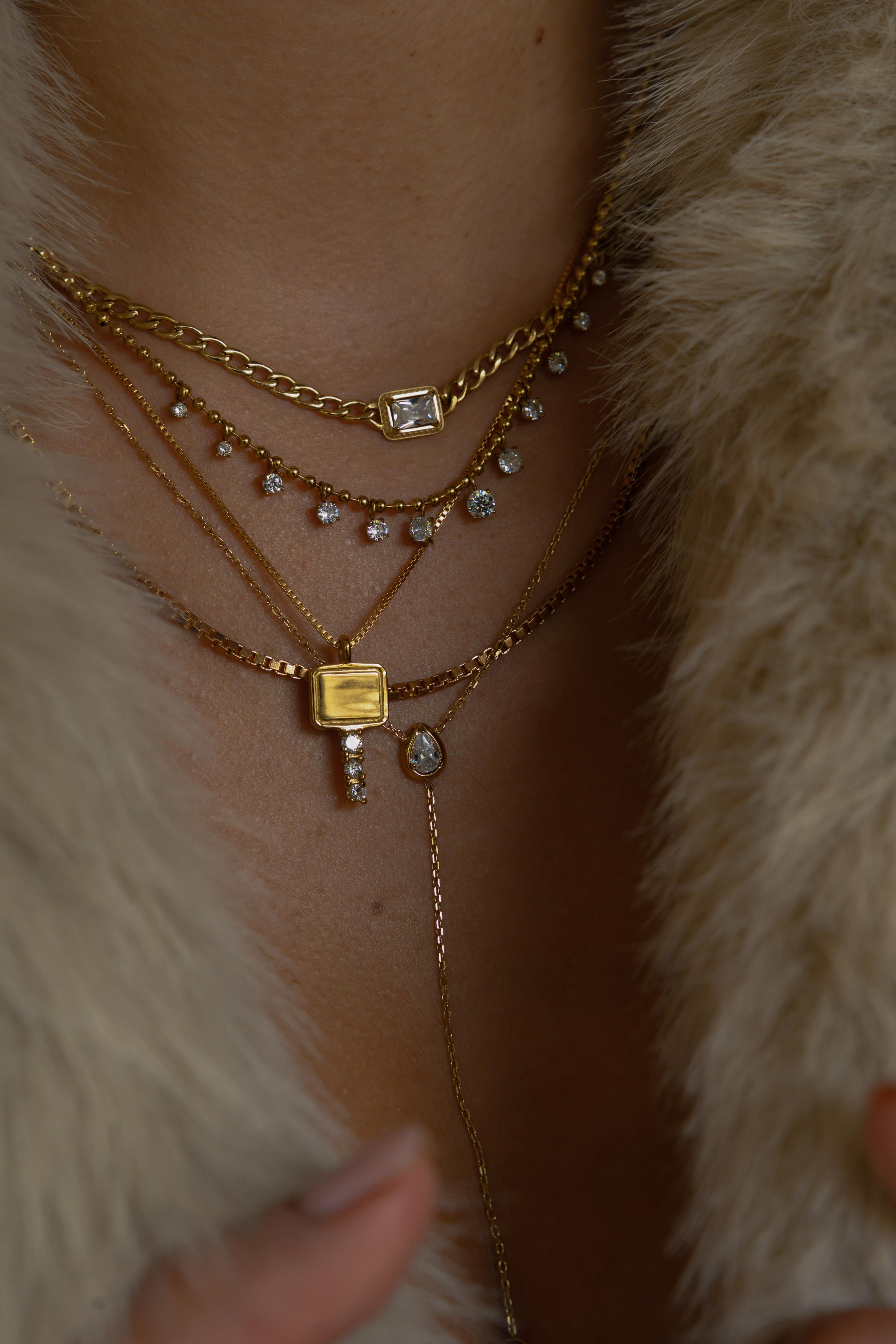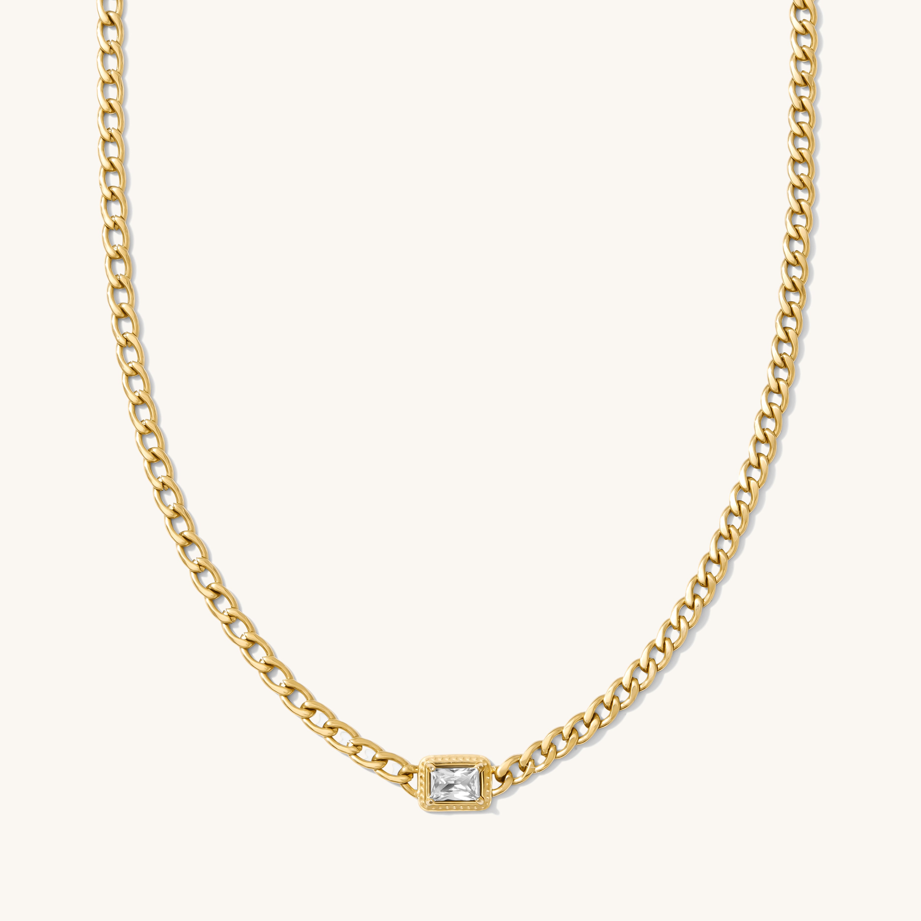A structured cuban chain anchored by a single emerald bezel-set stone. Minimal but commanding, it’s a piece that feels as timeless as it does contemporary. Grab the matching bracelet to complete the set.