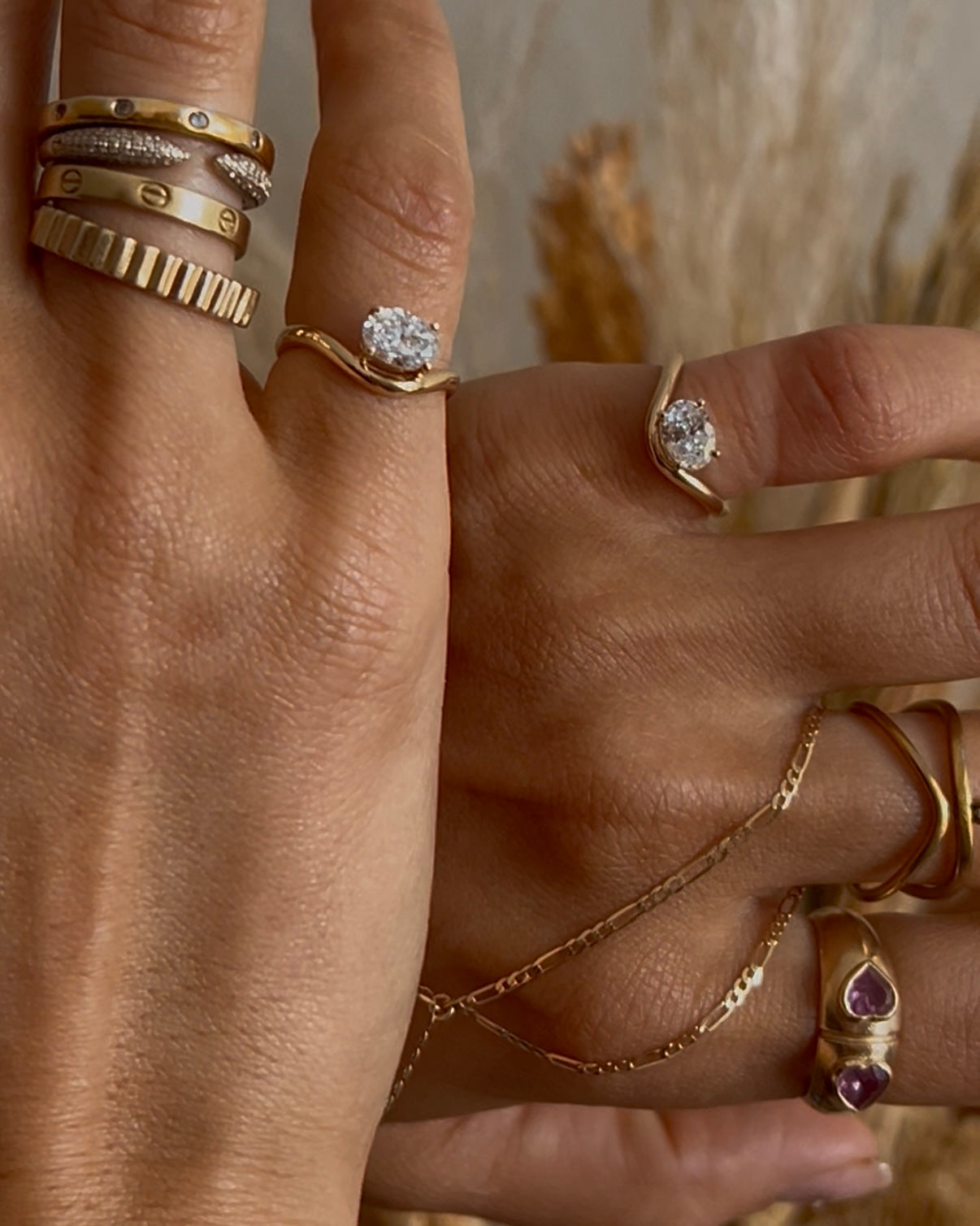 Historically associated with nobility and royalty, pinky rings have made a modern revival with this timeless and elegant setting. Diamond rings aren't just for engagement rings - sport our Oval Solitaire Wave Pinky ring on your finger for a luxe glimmer that will elevate your hands. Grab matching rings with your best friend or loved one - our 14k fine version is an heirloom you'll keep forever and pass down.