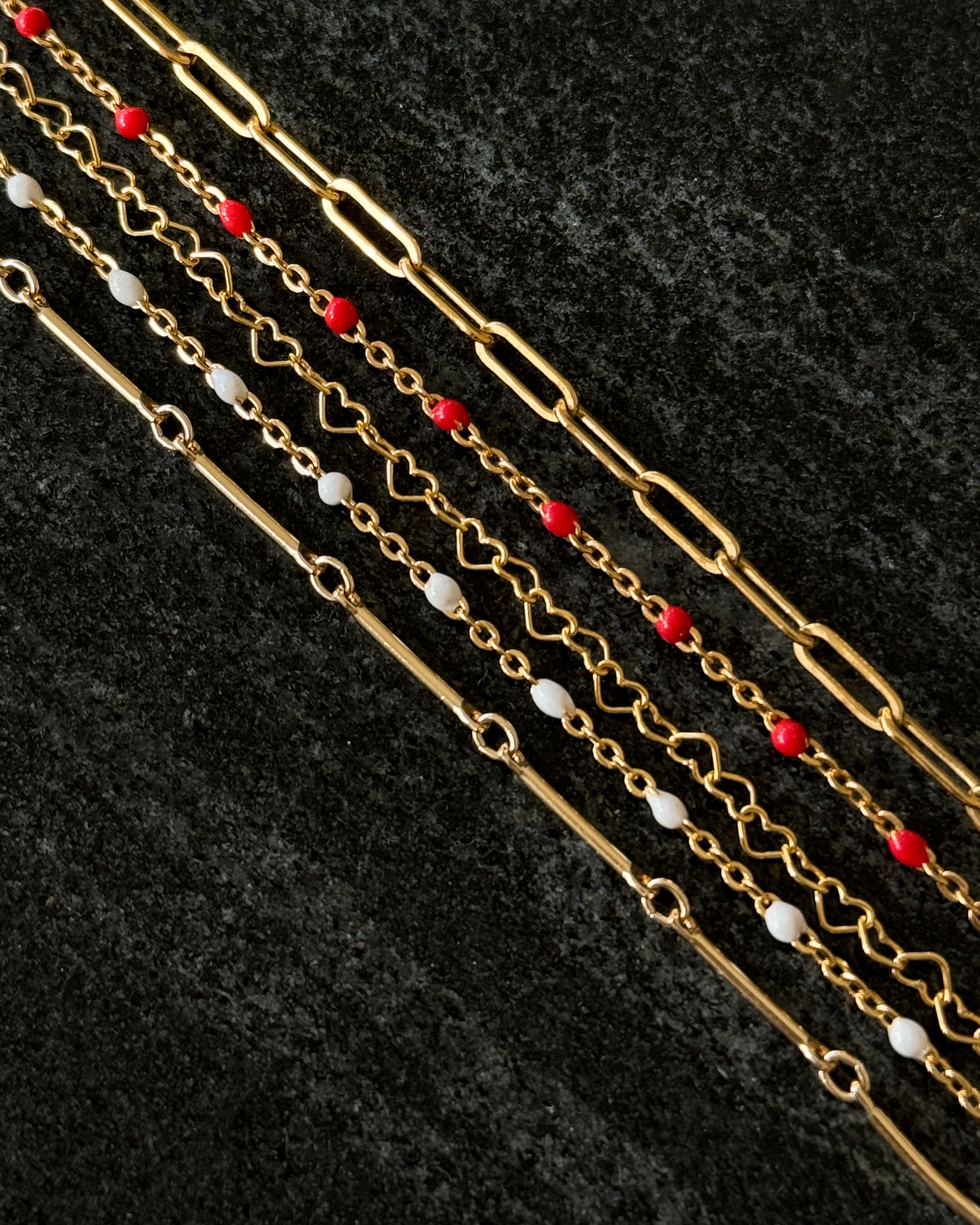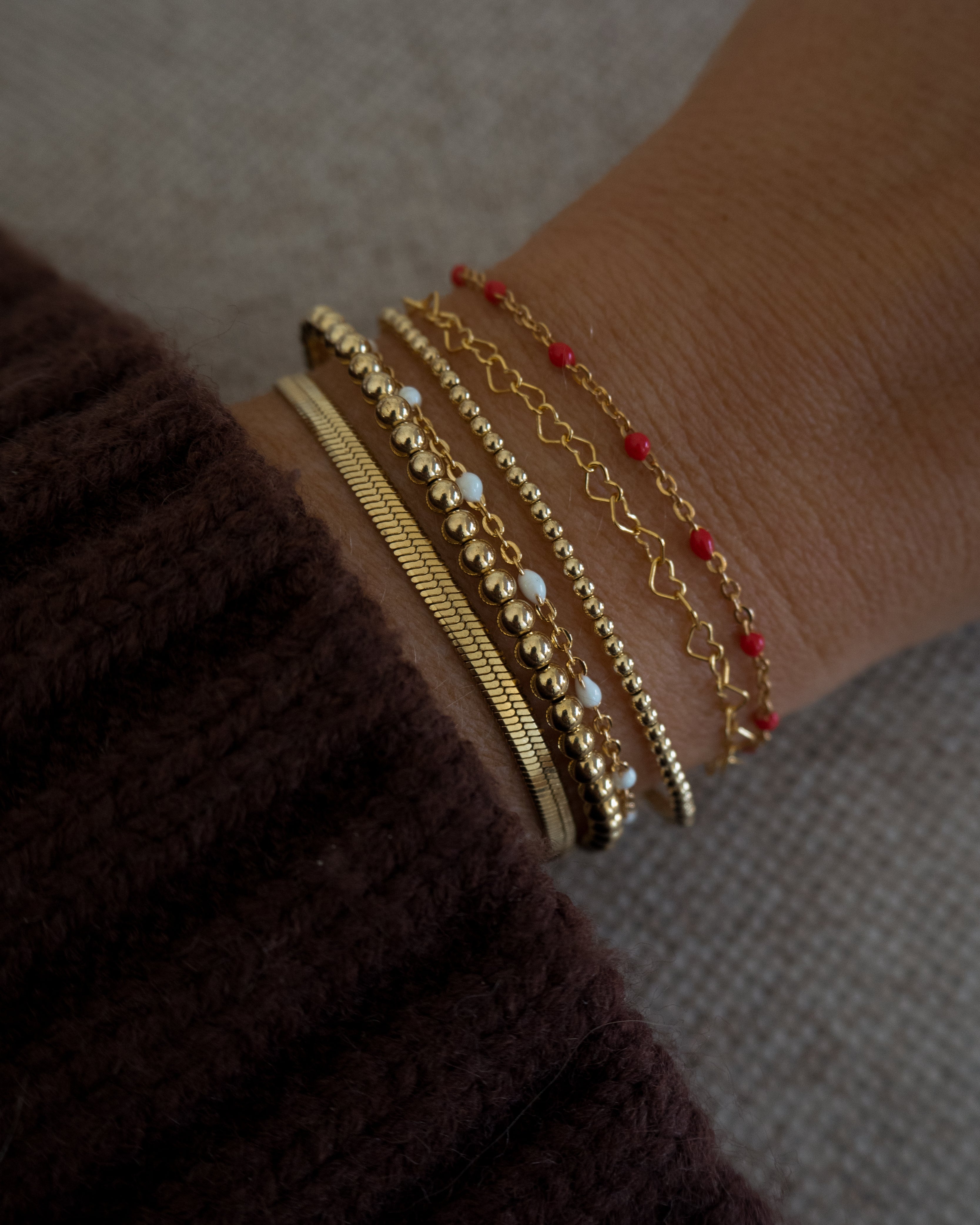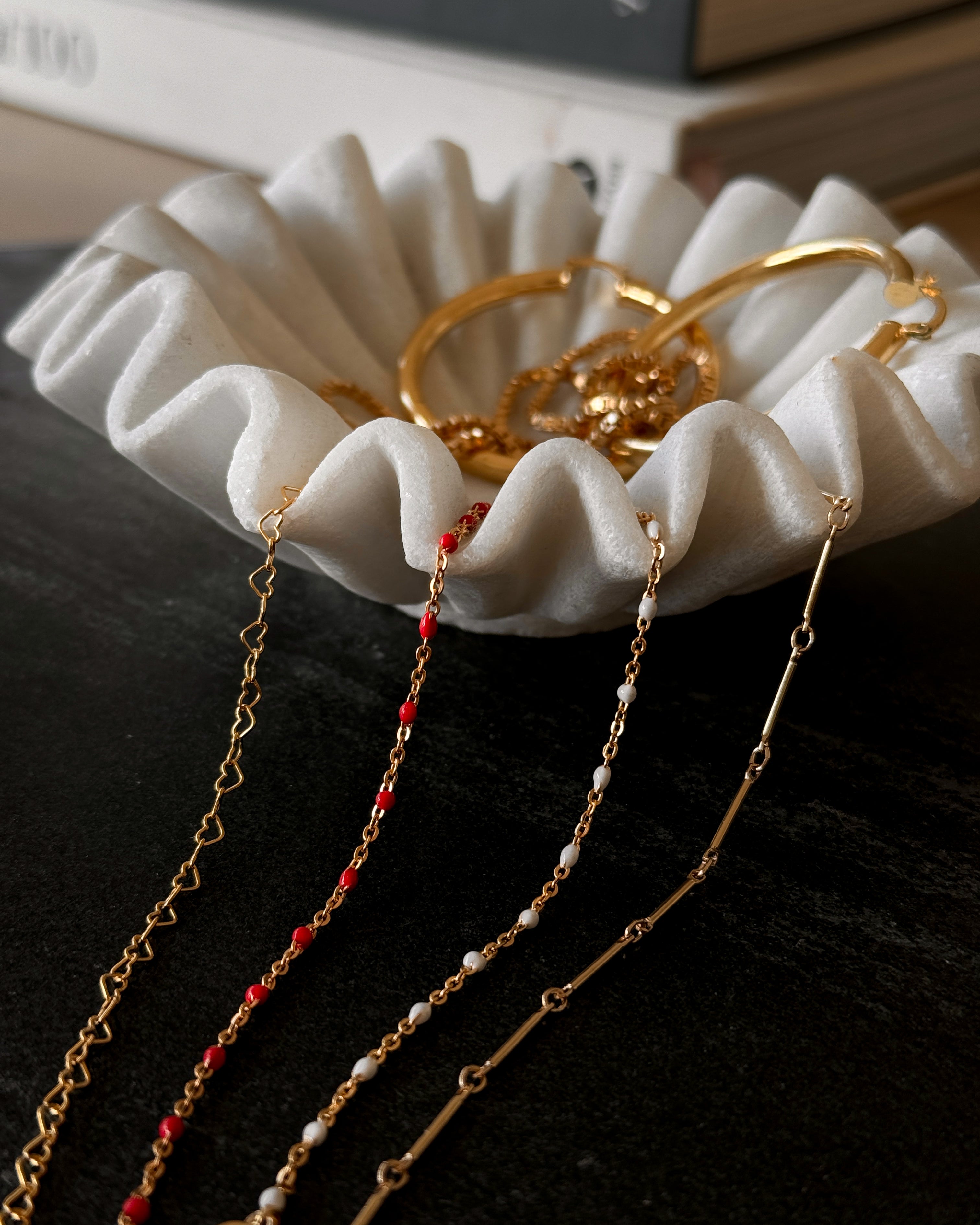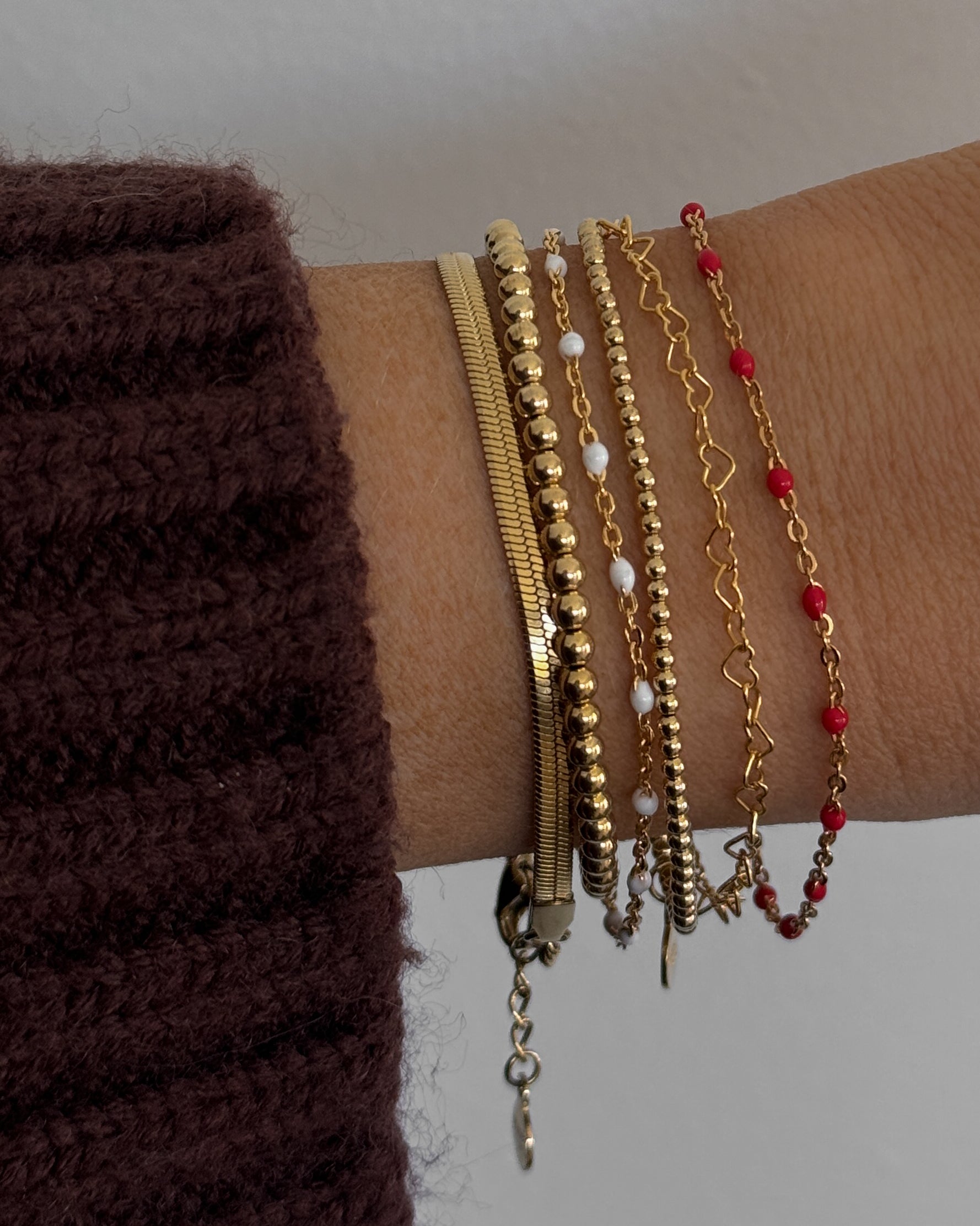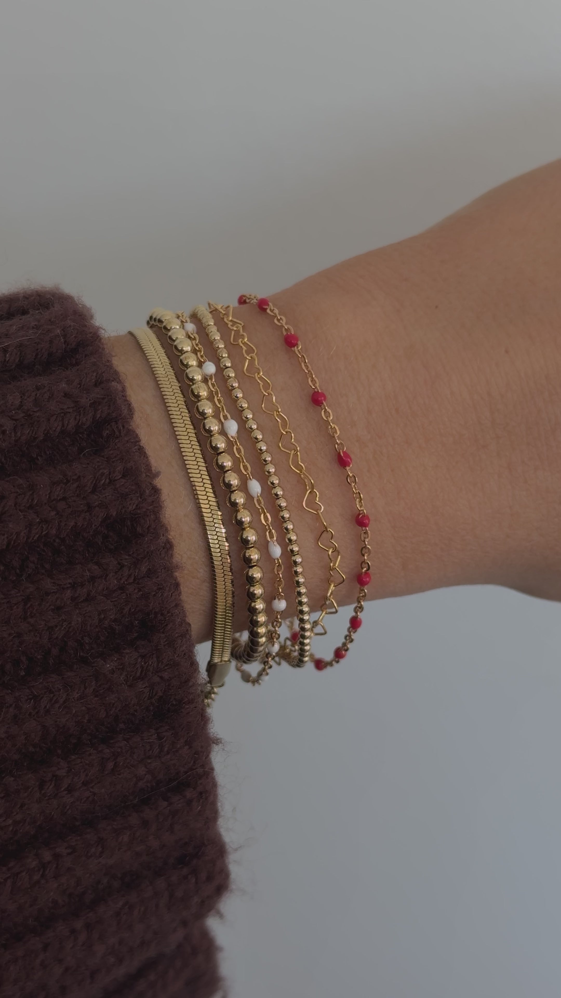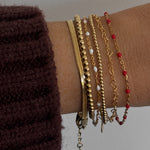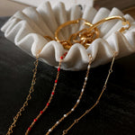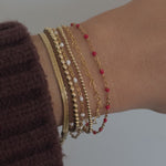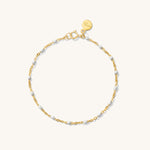 A classic gold chain threaded with white caviar drops, this bracelet is perfect for those who want to incorporate color in their stack, in a minimalistic way. Add this creamy white to your stack for a modern neutral flair.