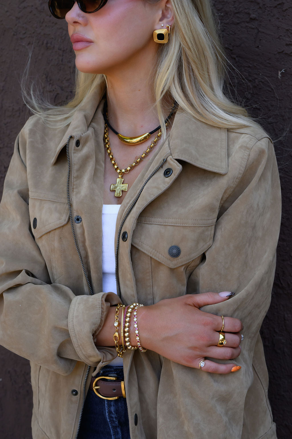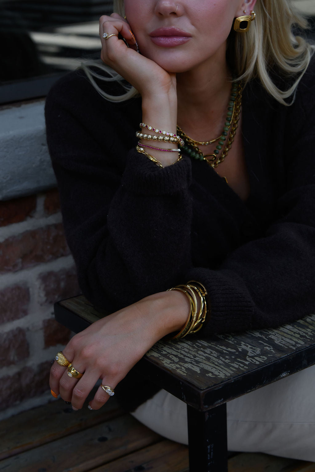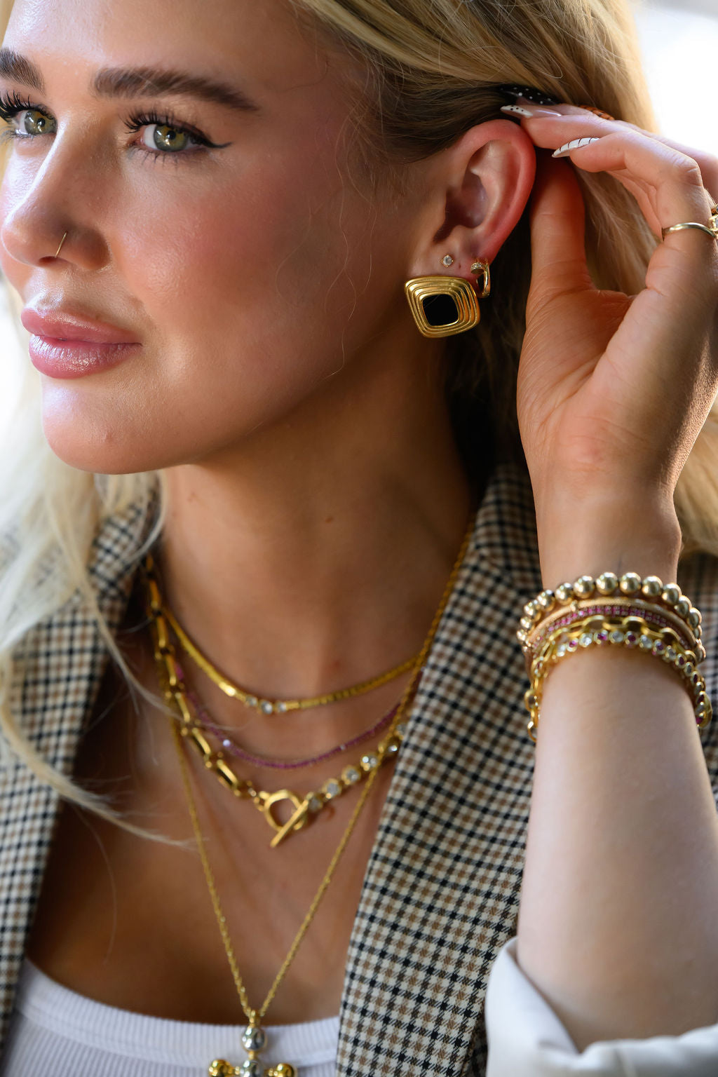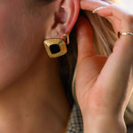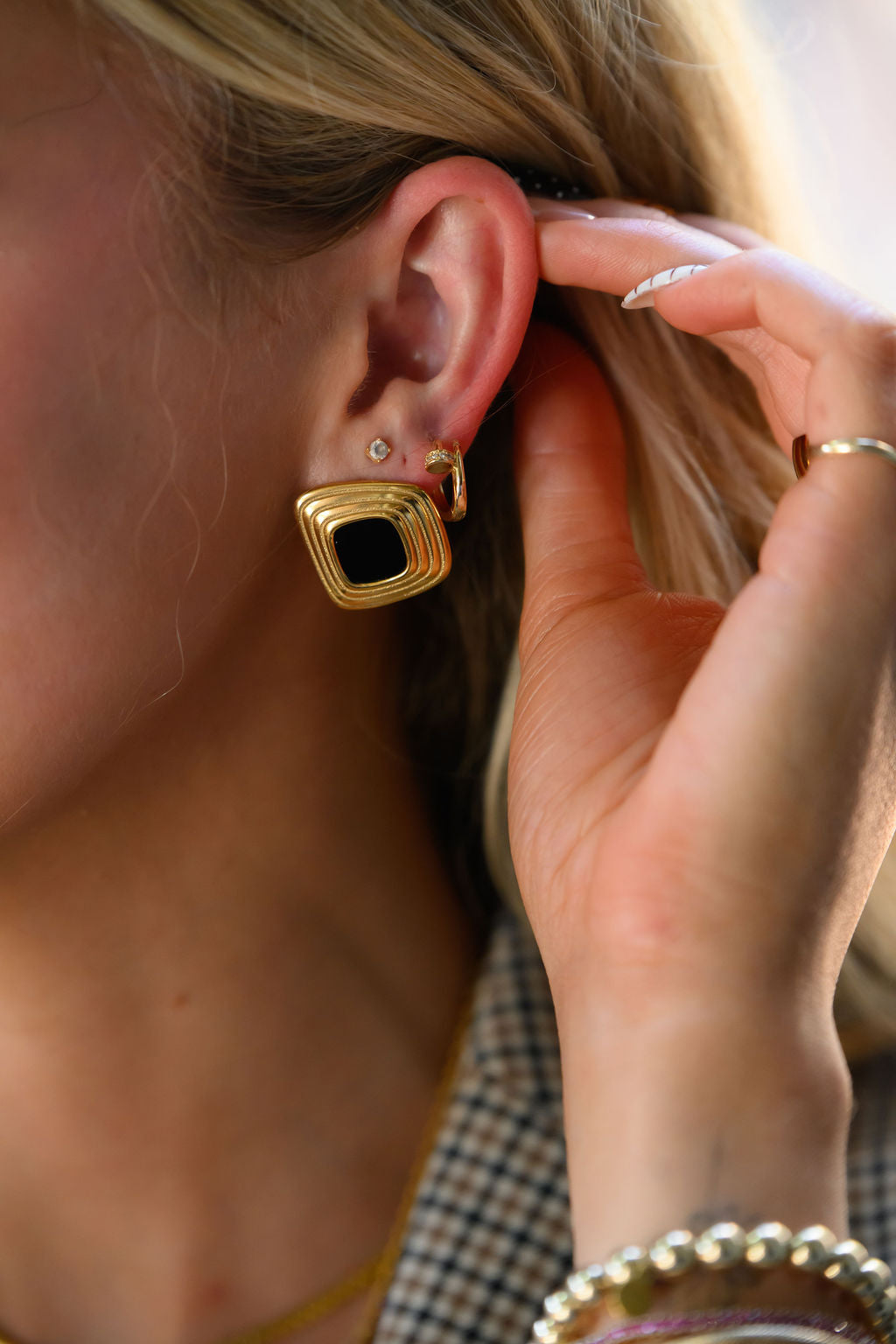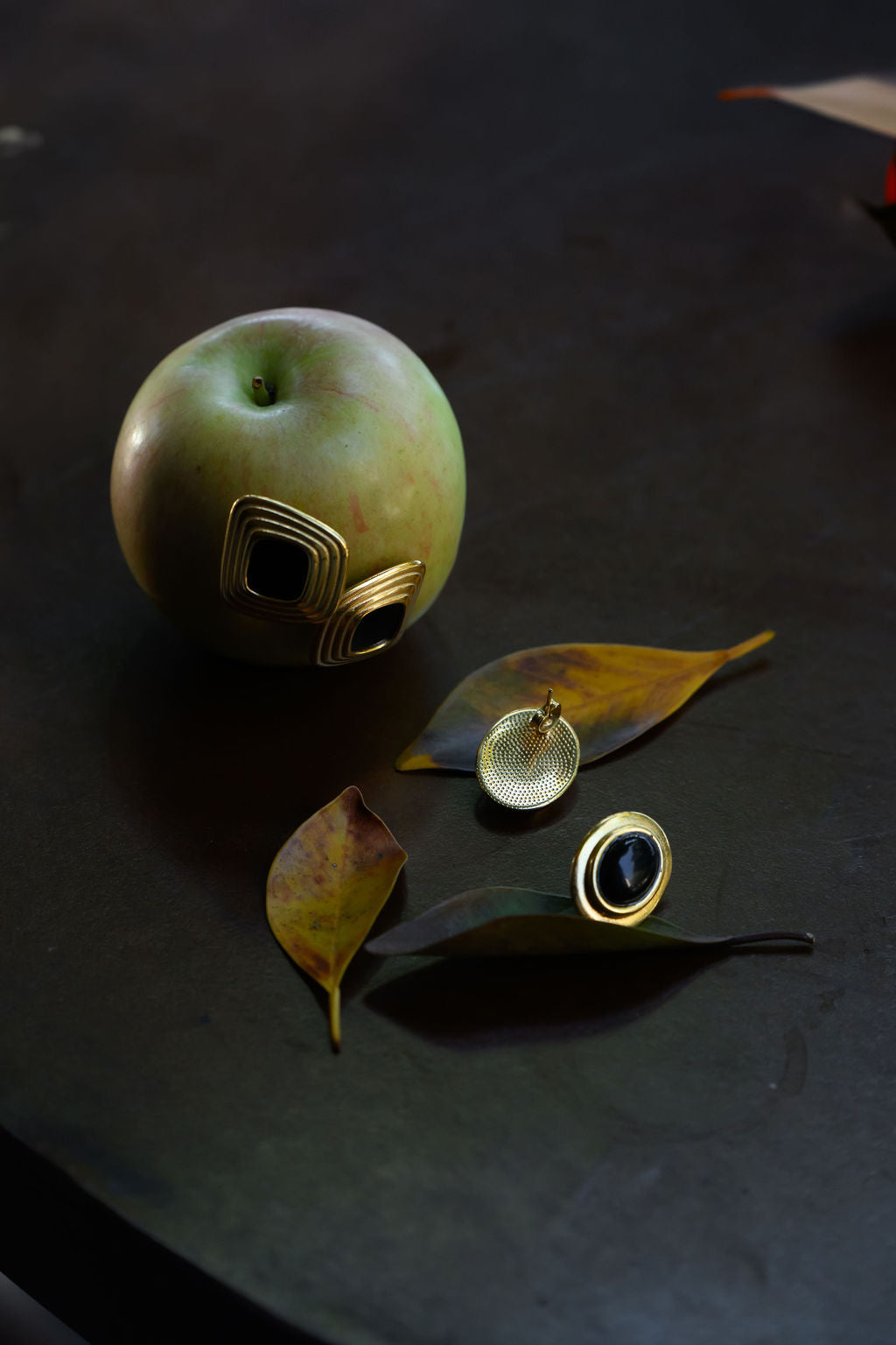 Geometric and organic at the same time, these studs pair a high-shine gold frame with a glossy black onyx center. They’re statement-making yet versatile — perfect for channeling a little vintage glamour.