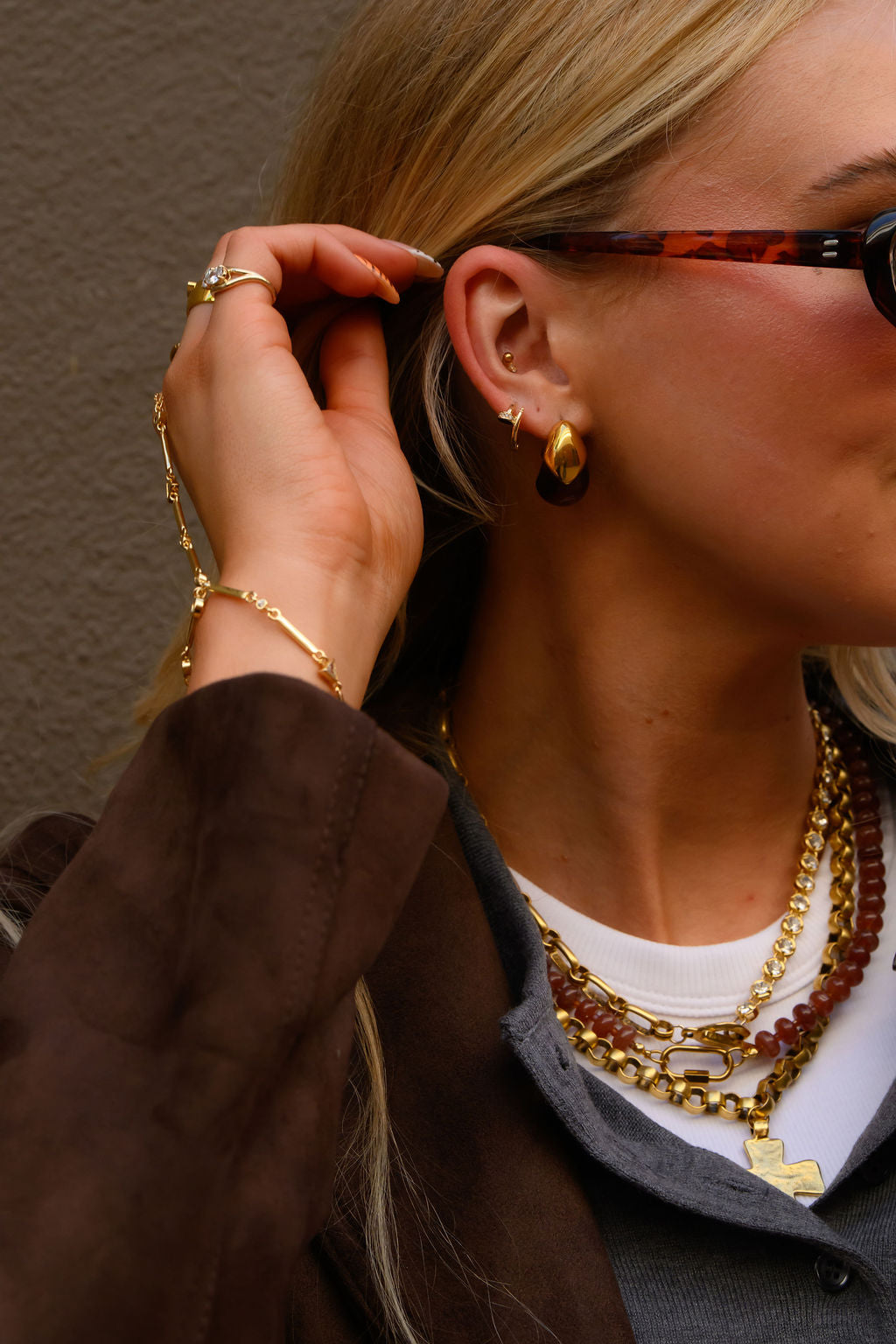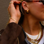 Art for your ears - the Sepia earrings feature a bold tortoiseshell resin framed with sleek gold for a bold yet polished look. These earrings are sculptural, modern, and versatile — the kind of pair that instantly pulls an outfit together.