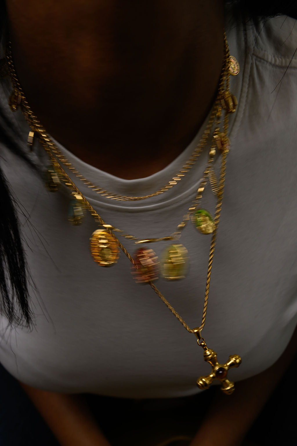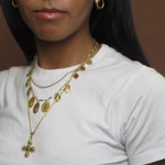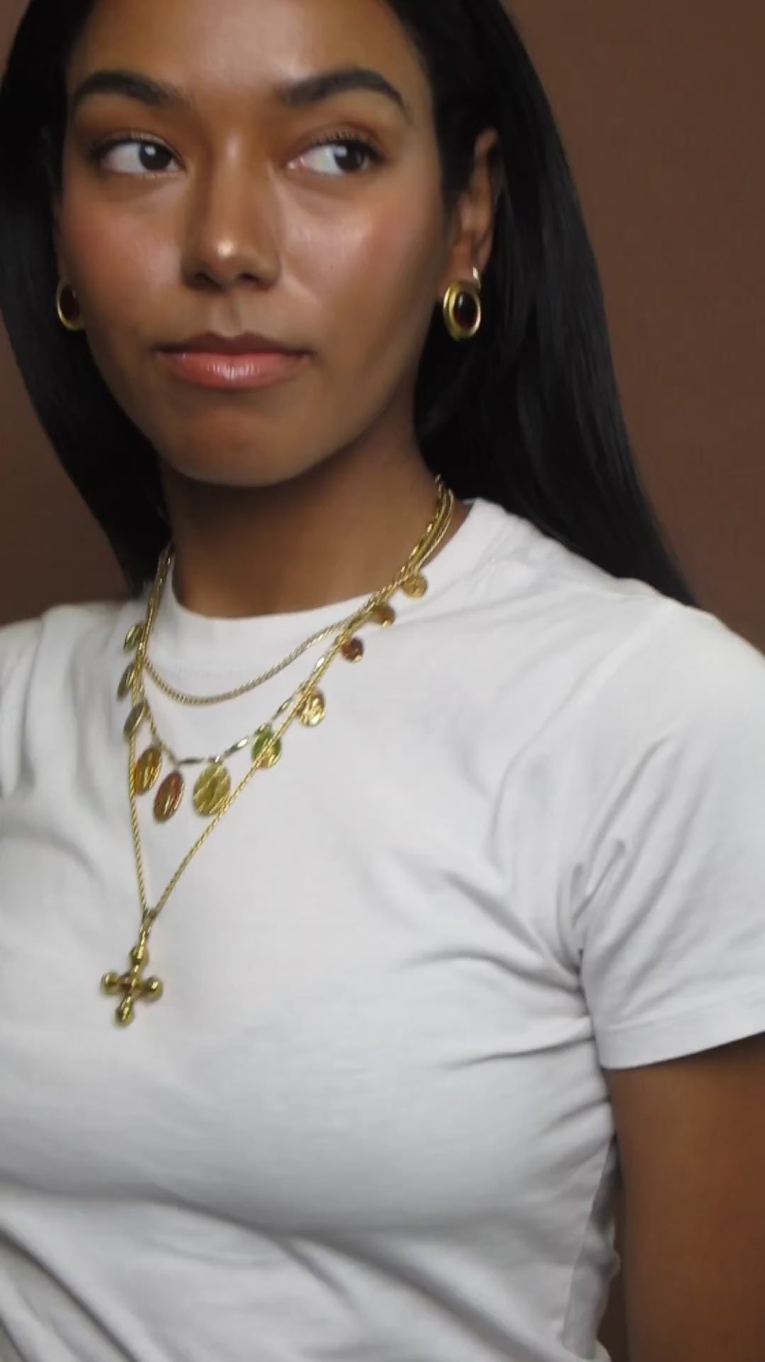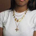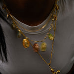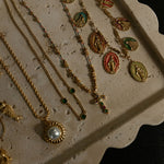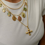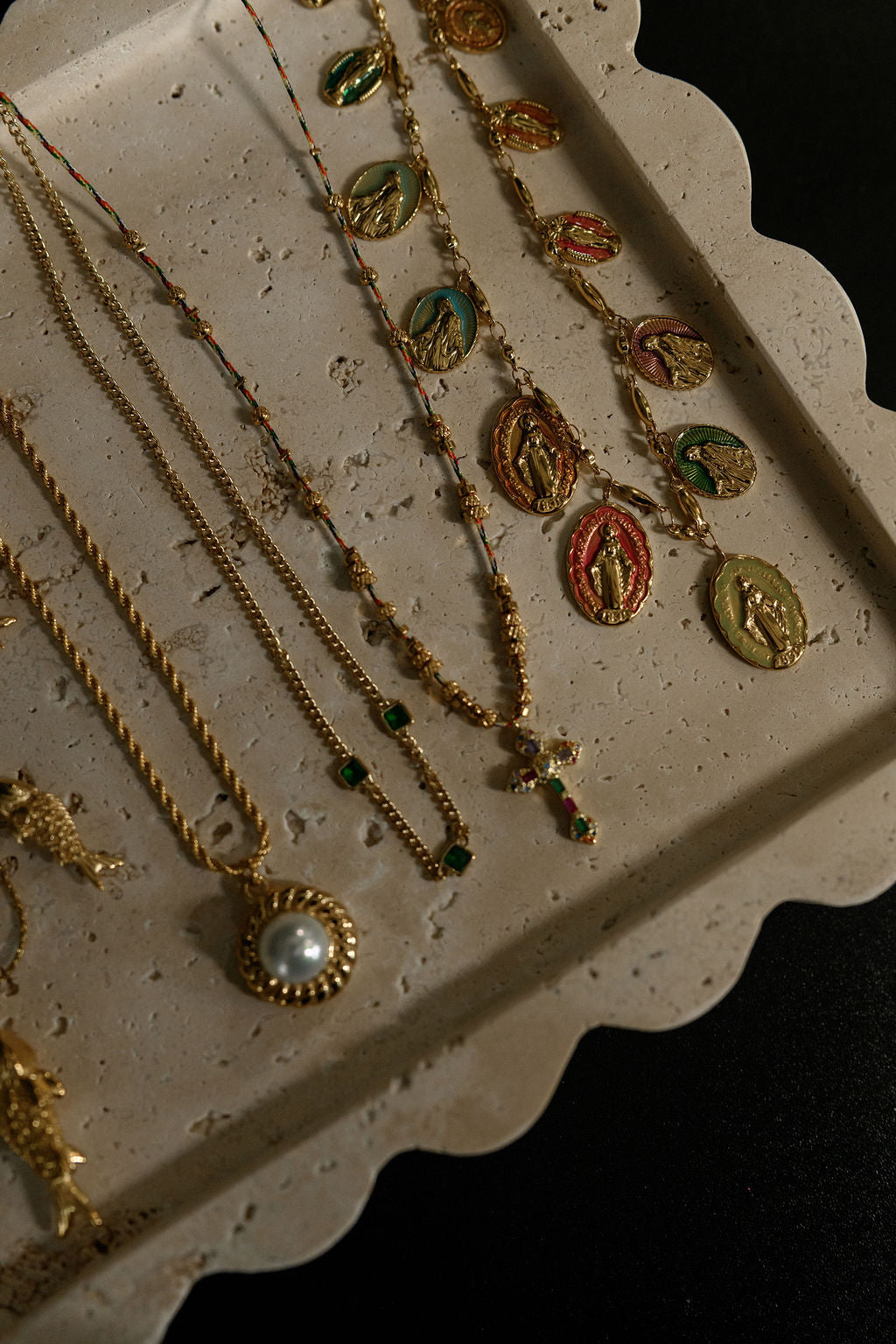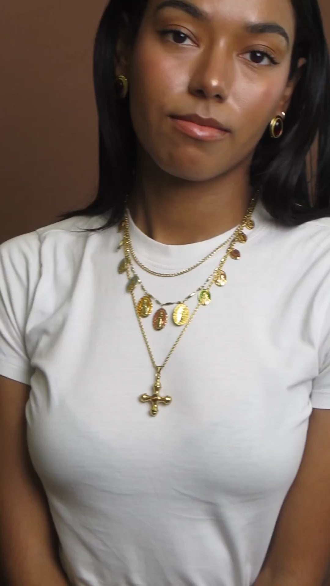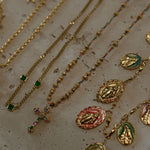 Not for the faint of heart, the Saints in Color Necklace truly dazzles in in its detail. With 13 saint coin charms in muted jewel tones, protection and beauty lie in each of the figures.