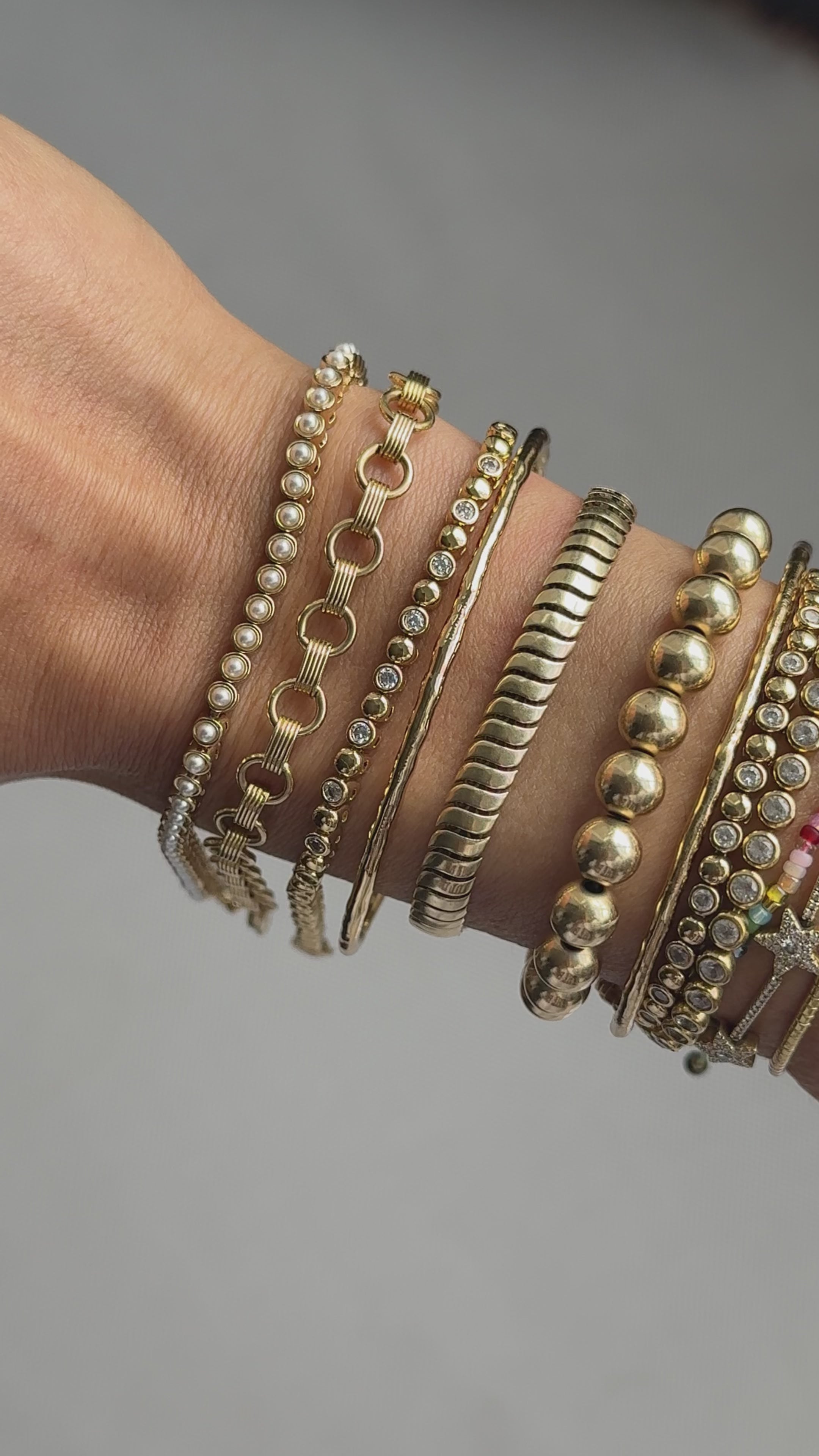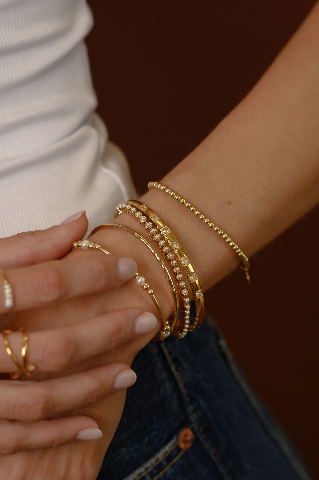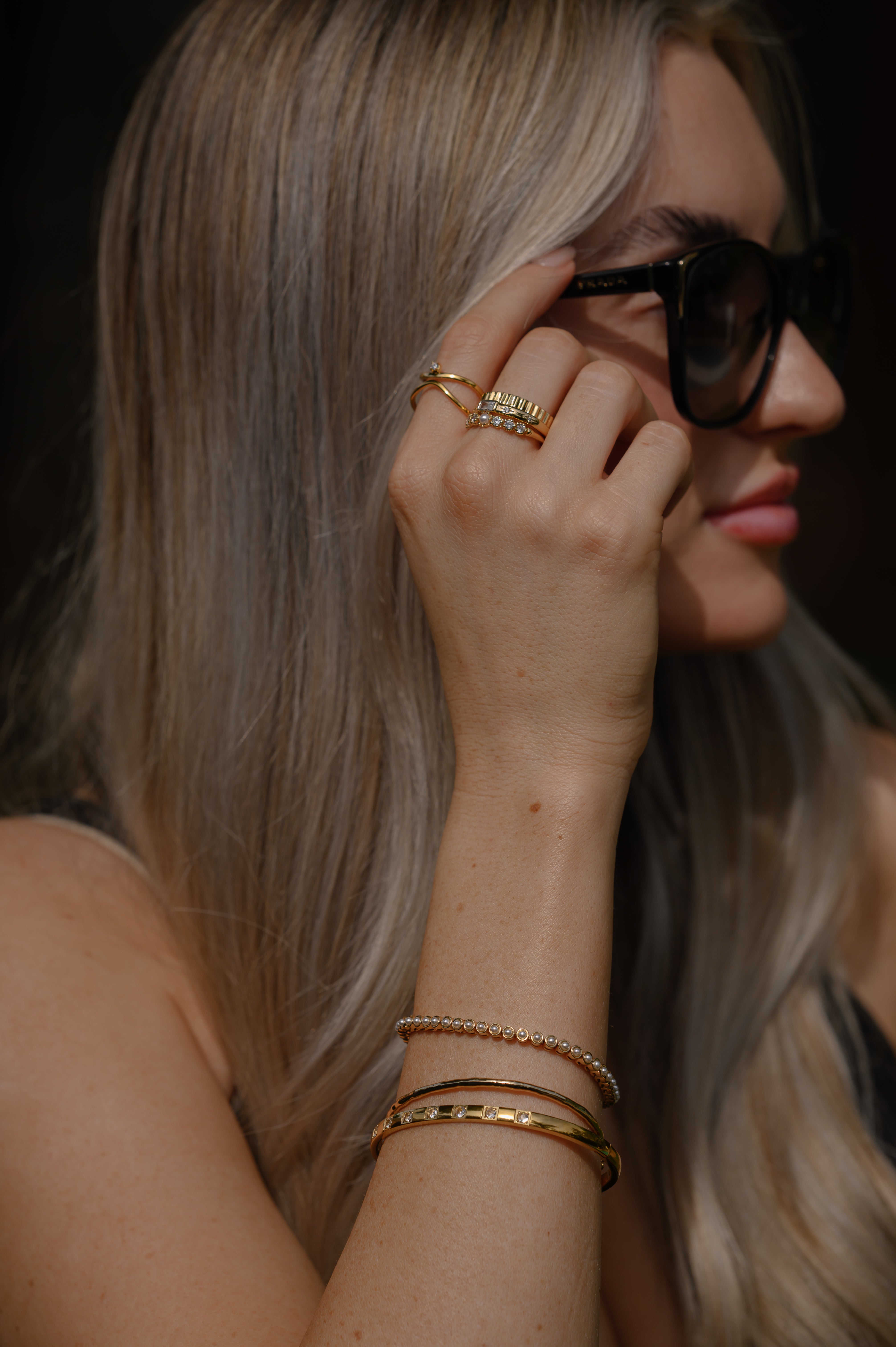 Where the intersection of elegant, timeless pearls and modern, sophisticated tennis bracelets meet, is where you'll find our Bezel Pearl Tennis bracelet. Made to stack or stun alone, this piece features bezel-set pearls - designed to be dressed up while versatile enough to be paired with your daily stack. P.S. this  piece makes a perfect bridal gift!