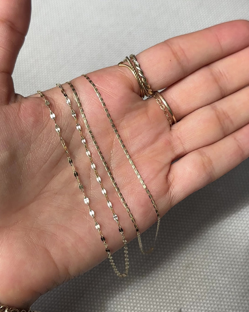 Small, but mighty is how we would describe this dainty chain. A lace-like chain that reflects all the rays of light, this piece exudes a captivating sparkle from every angle. The Shimmer Lace necklace is nothing short of stunning and makes the perfect gift for anyone who loves some glimmer around their neck.