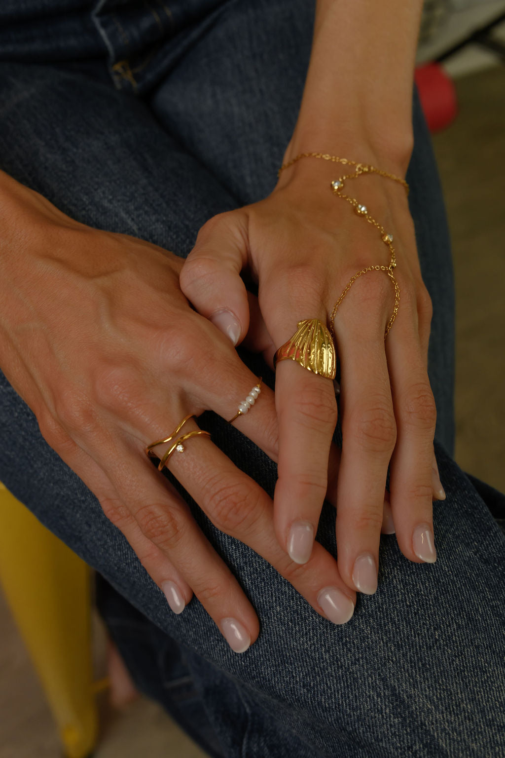 ANNA BEZEL HAND CHAIN BRACELET