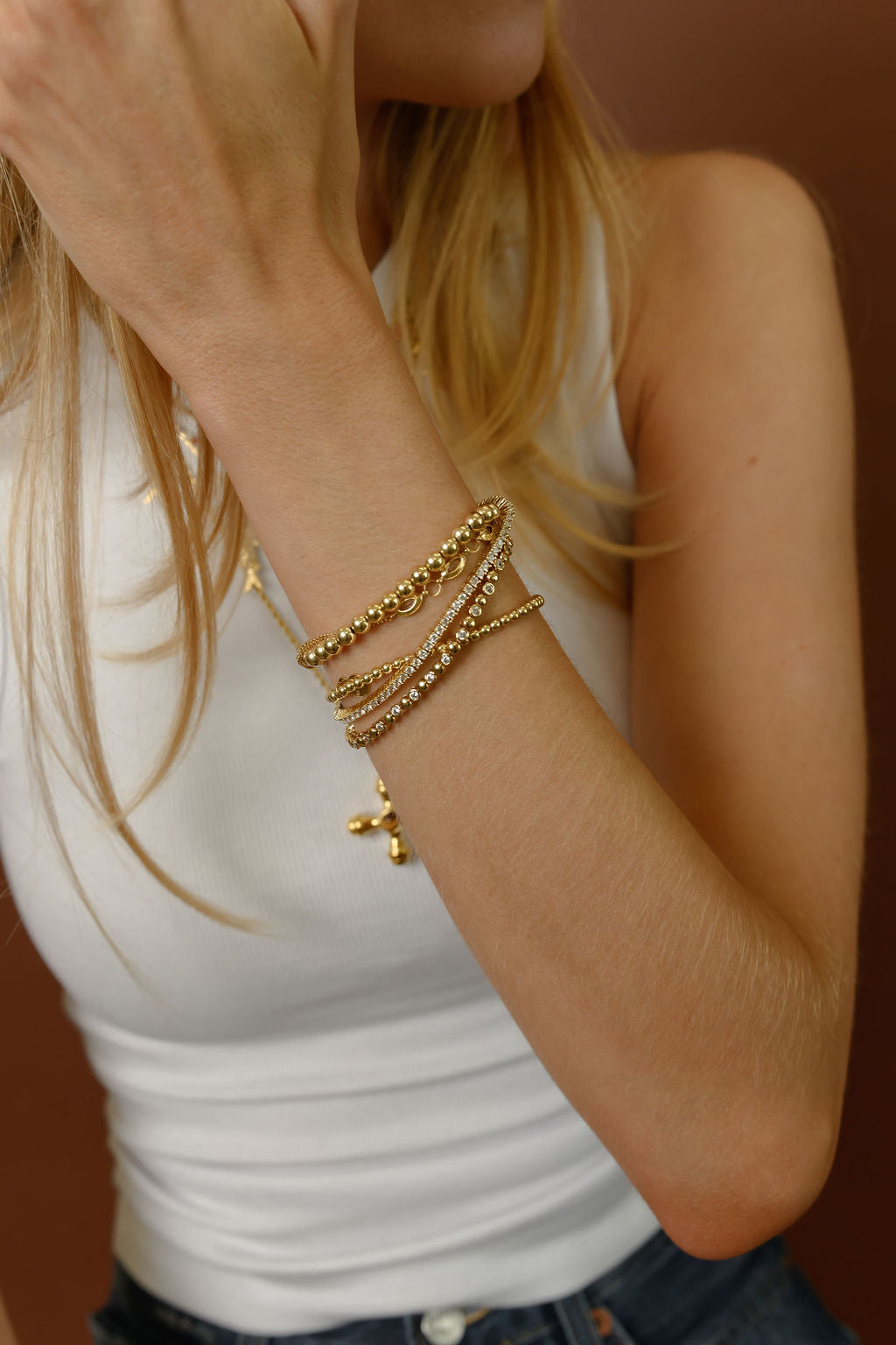 For a subtle everyday spin on the tennis bracelet, the Bezel Bead Tennis bracelet pairs bezel-set stones spaced apart by gold beads. This bracelet is the best way to add subtle glam to your stack, while mixing two of our best-selling styles.