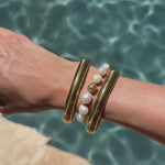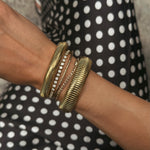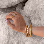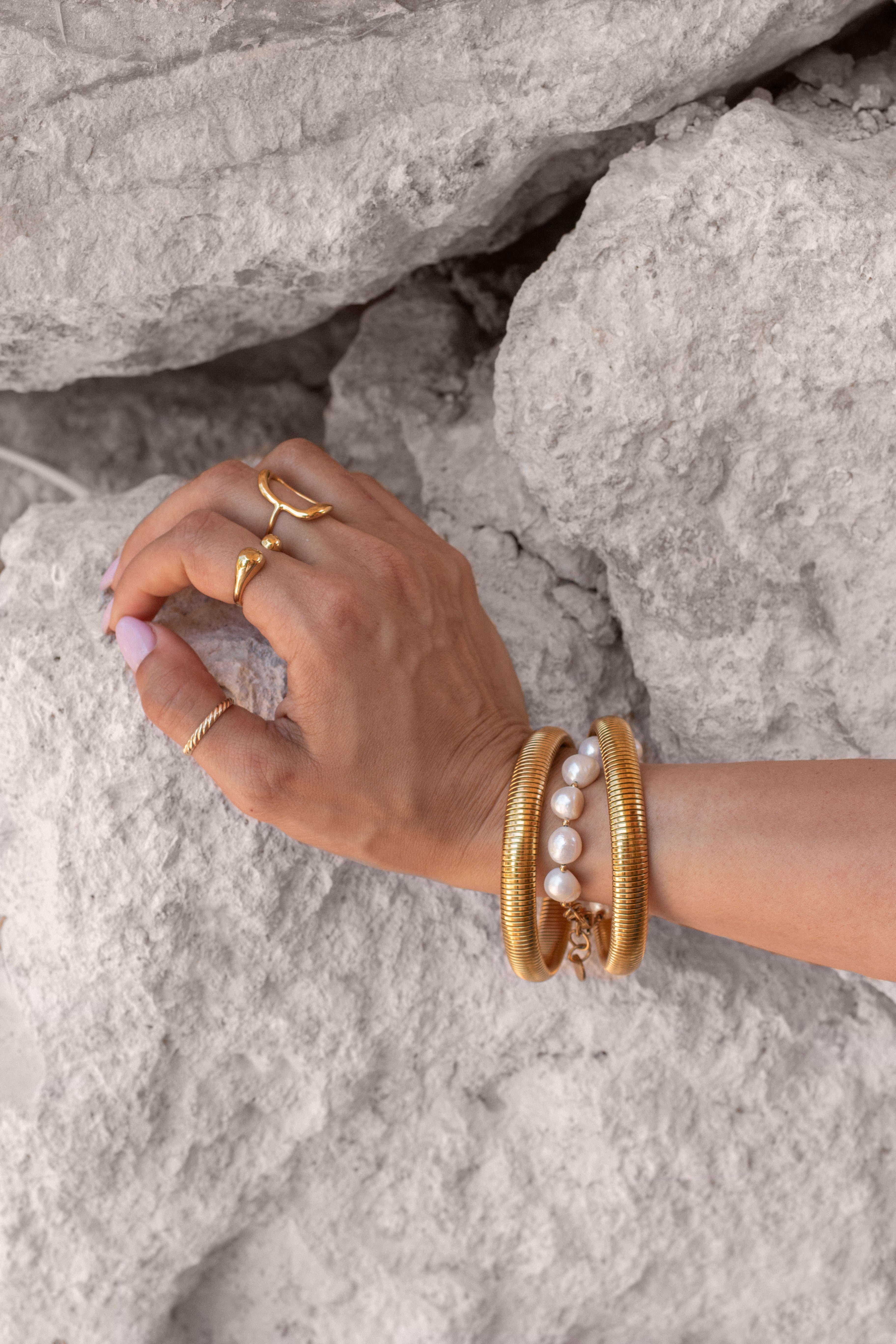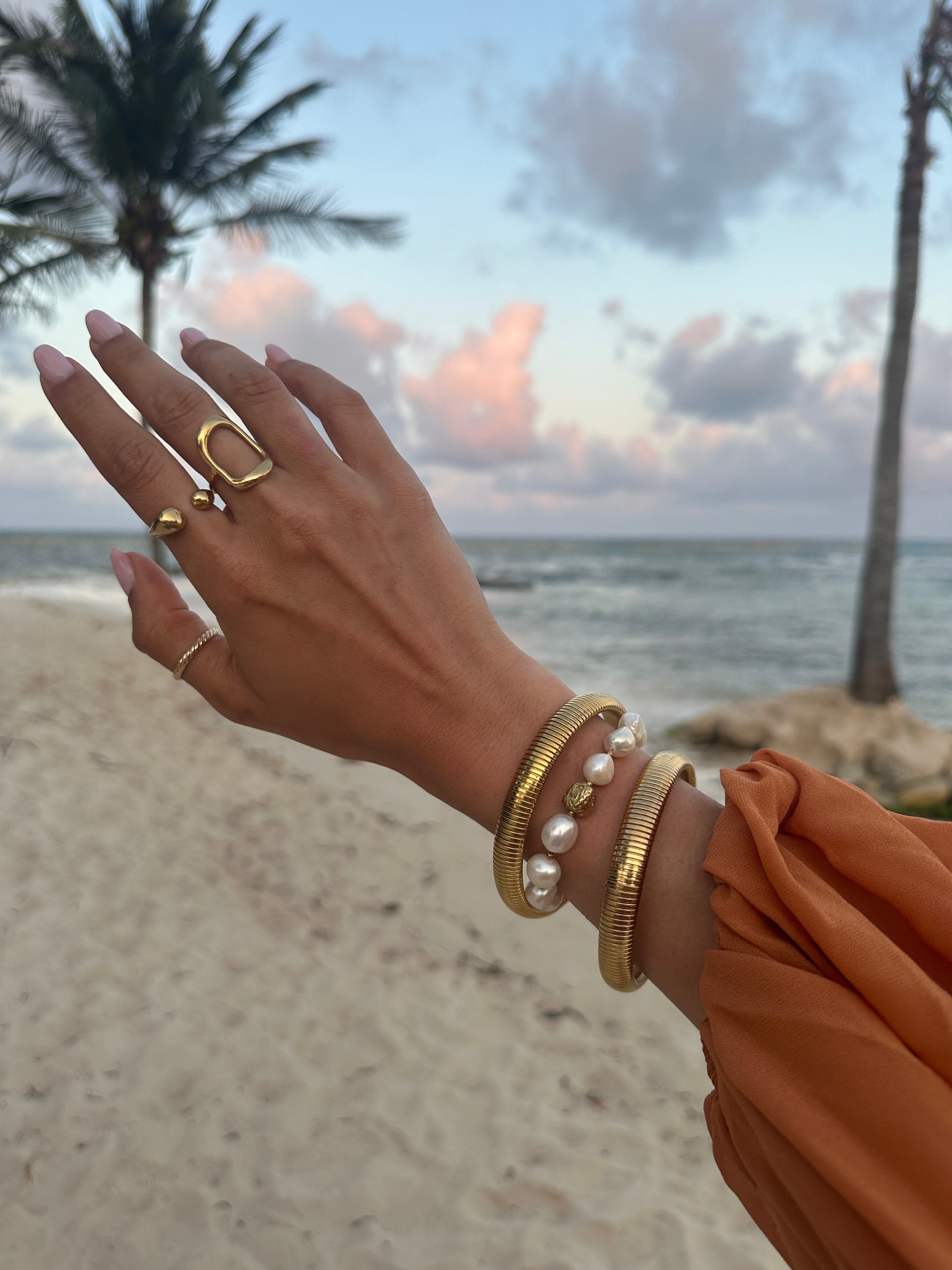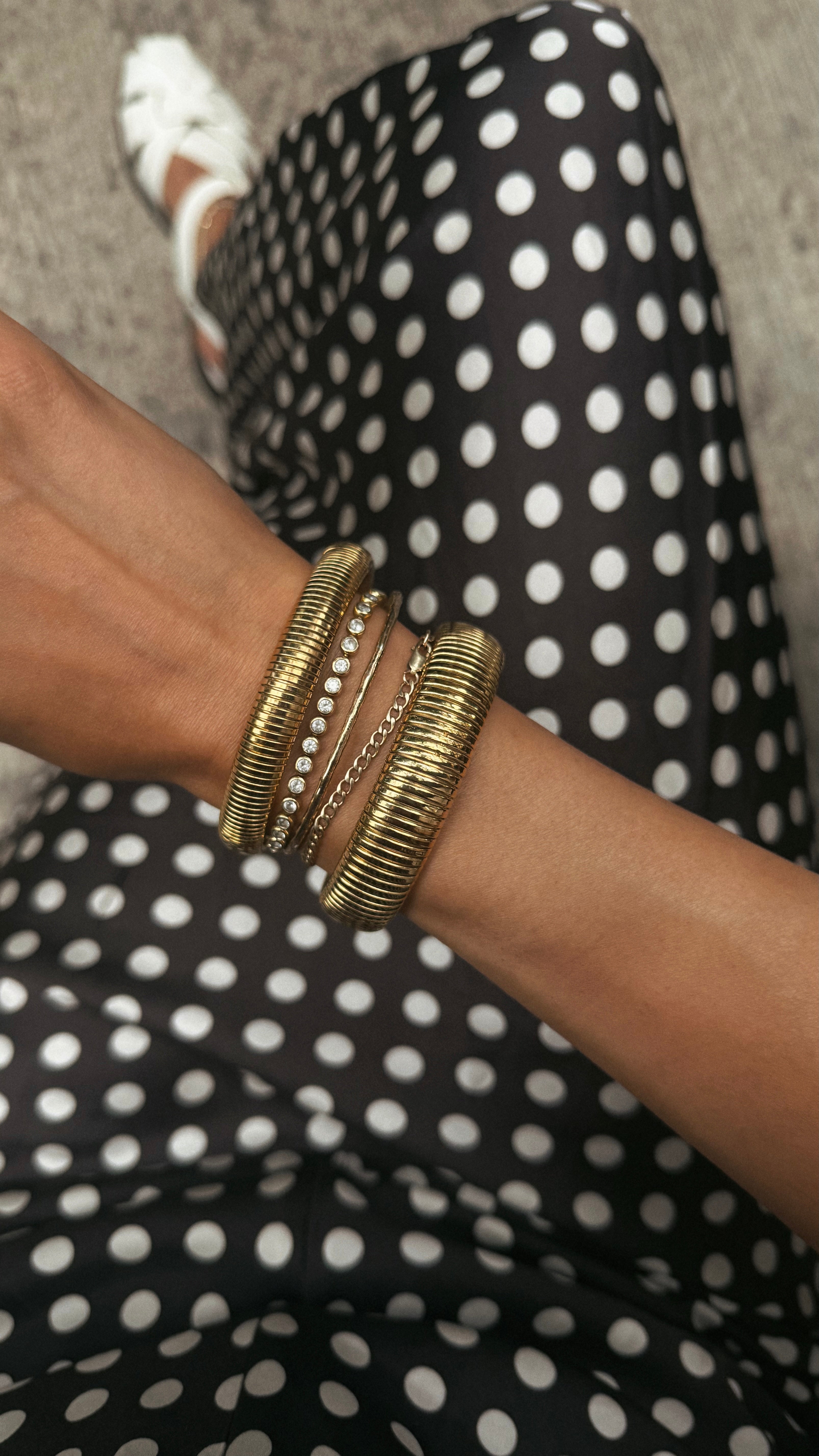 The Costa Thin Bracelet is our effortless, elevated version of a statement bracelet, with mini and bestselling thick styles available. Elastic and noise-free, this Tubogas style bracelet is easy to slide on and off. Perfect for elevating your look from tanning on the beach to elegant dinners, this bracelet is made to be lived in.