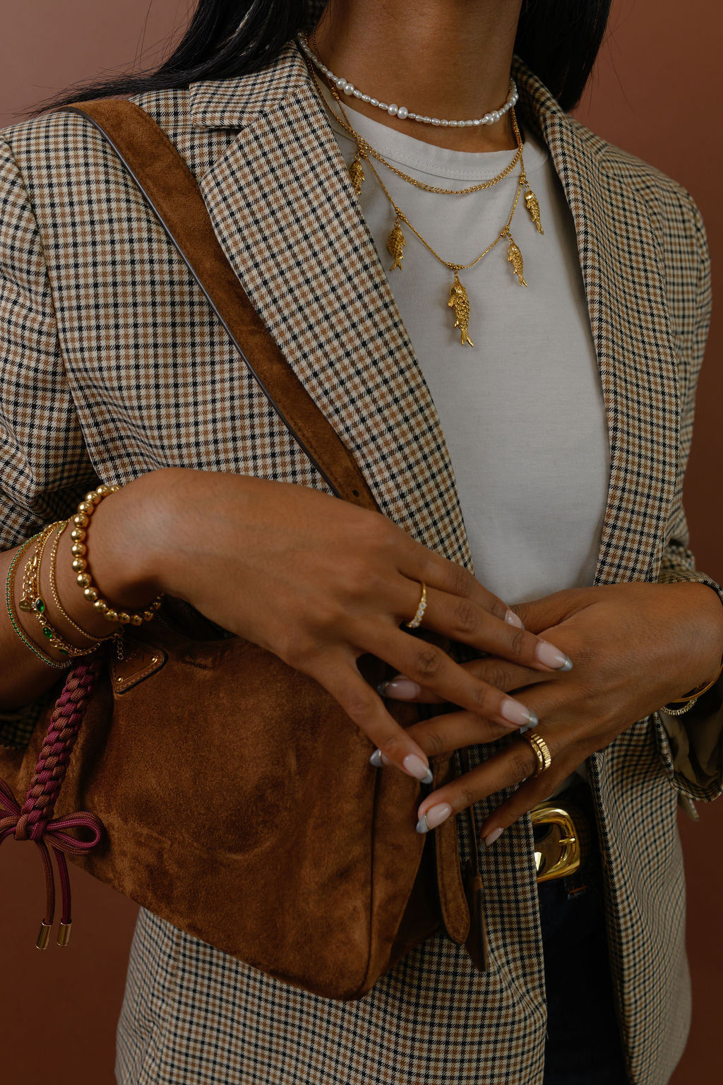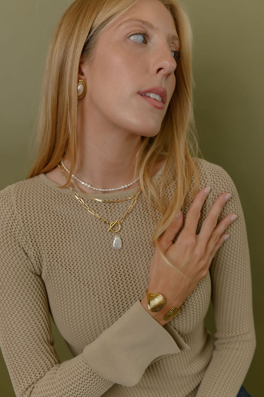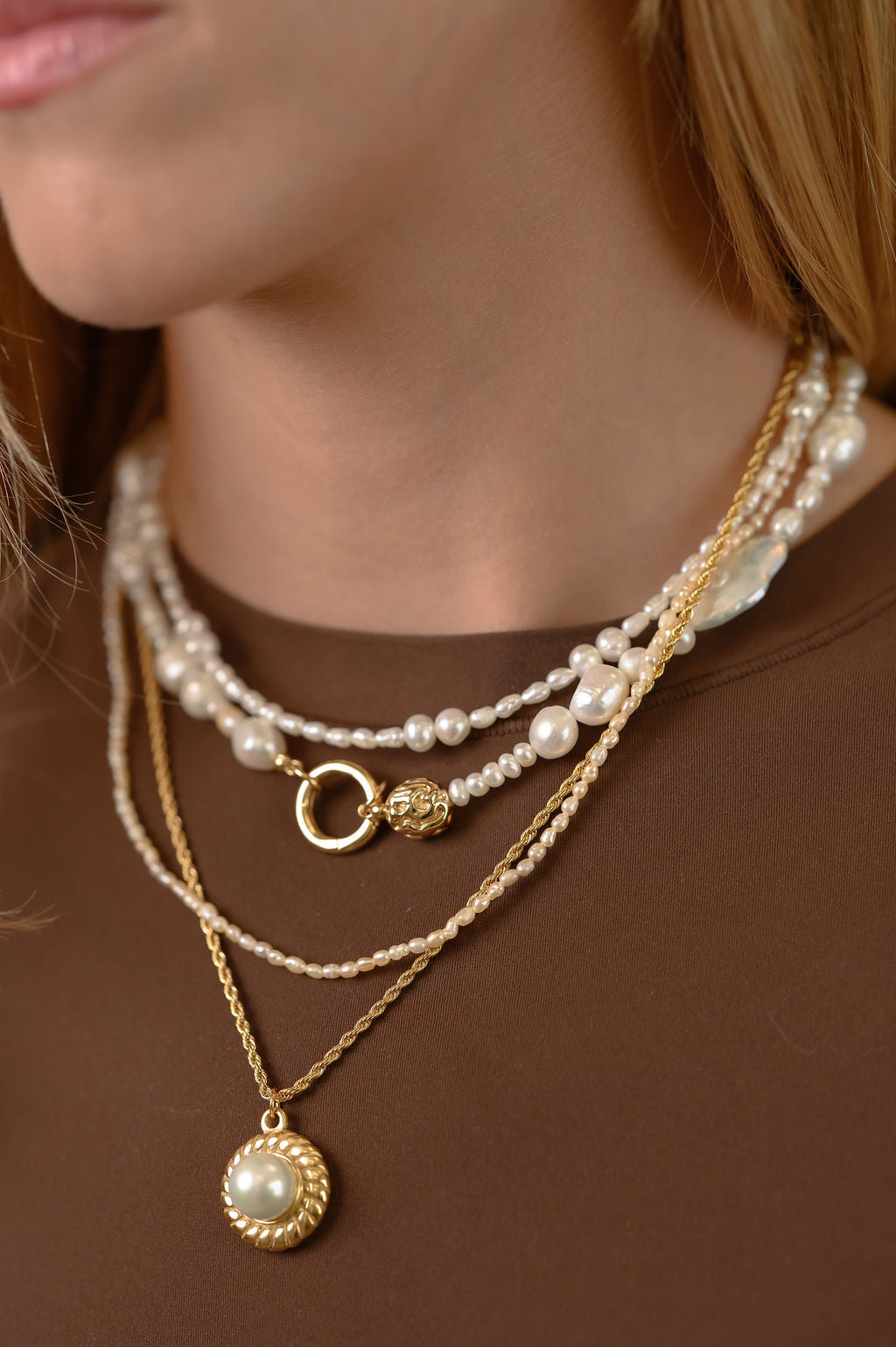 Fresh, clean, and simple, the Isla pearl necklace mixes different sizes of freshwater pearls to add contrast to a simple piece. Pair this necklace with a maxi dress and sandals for the perfect dressy look.