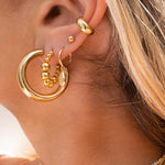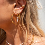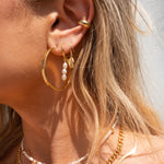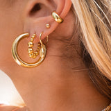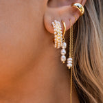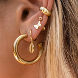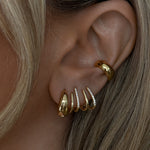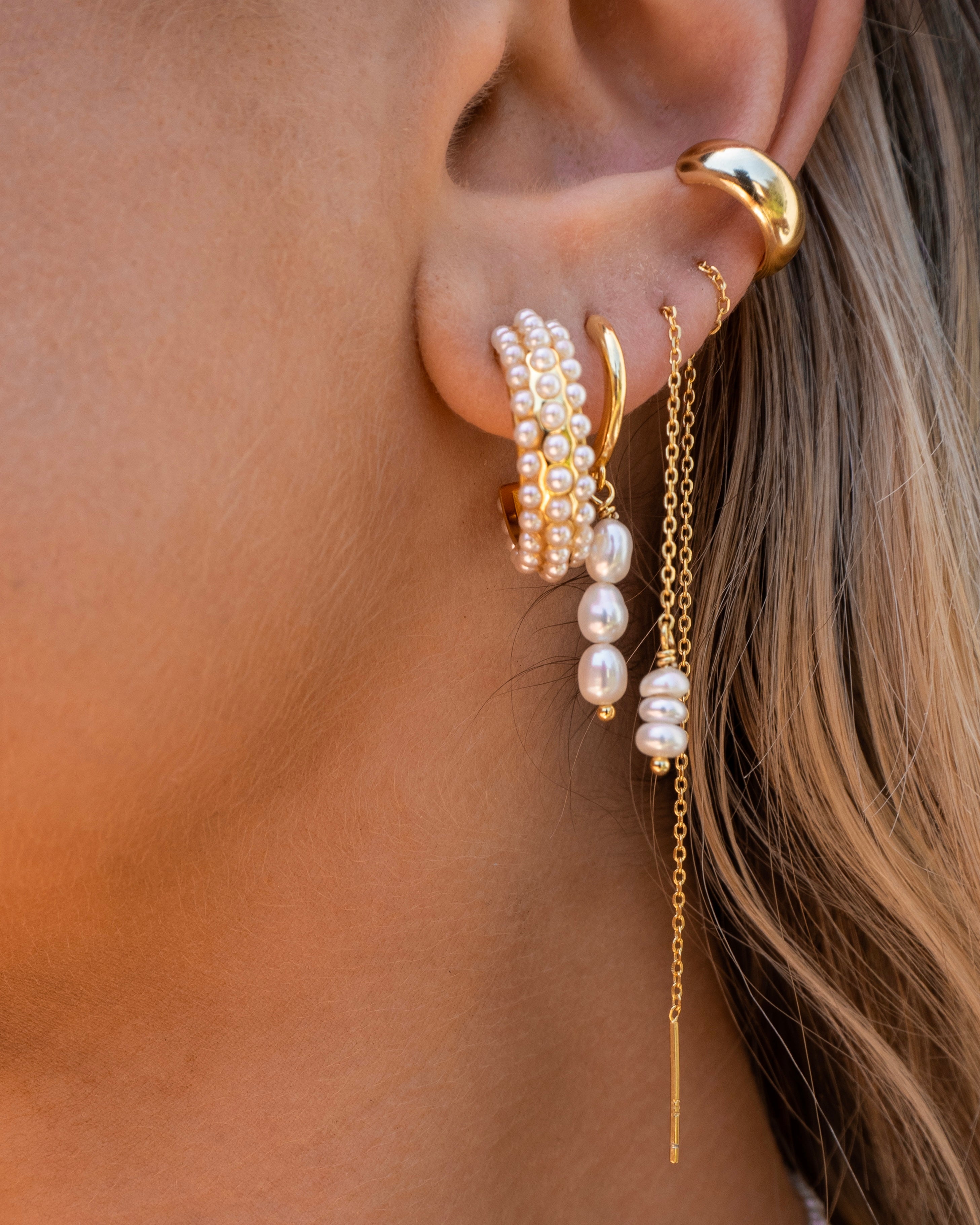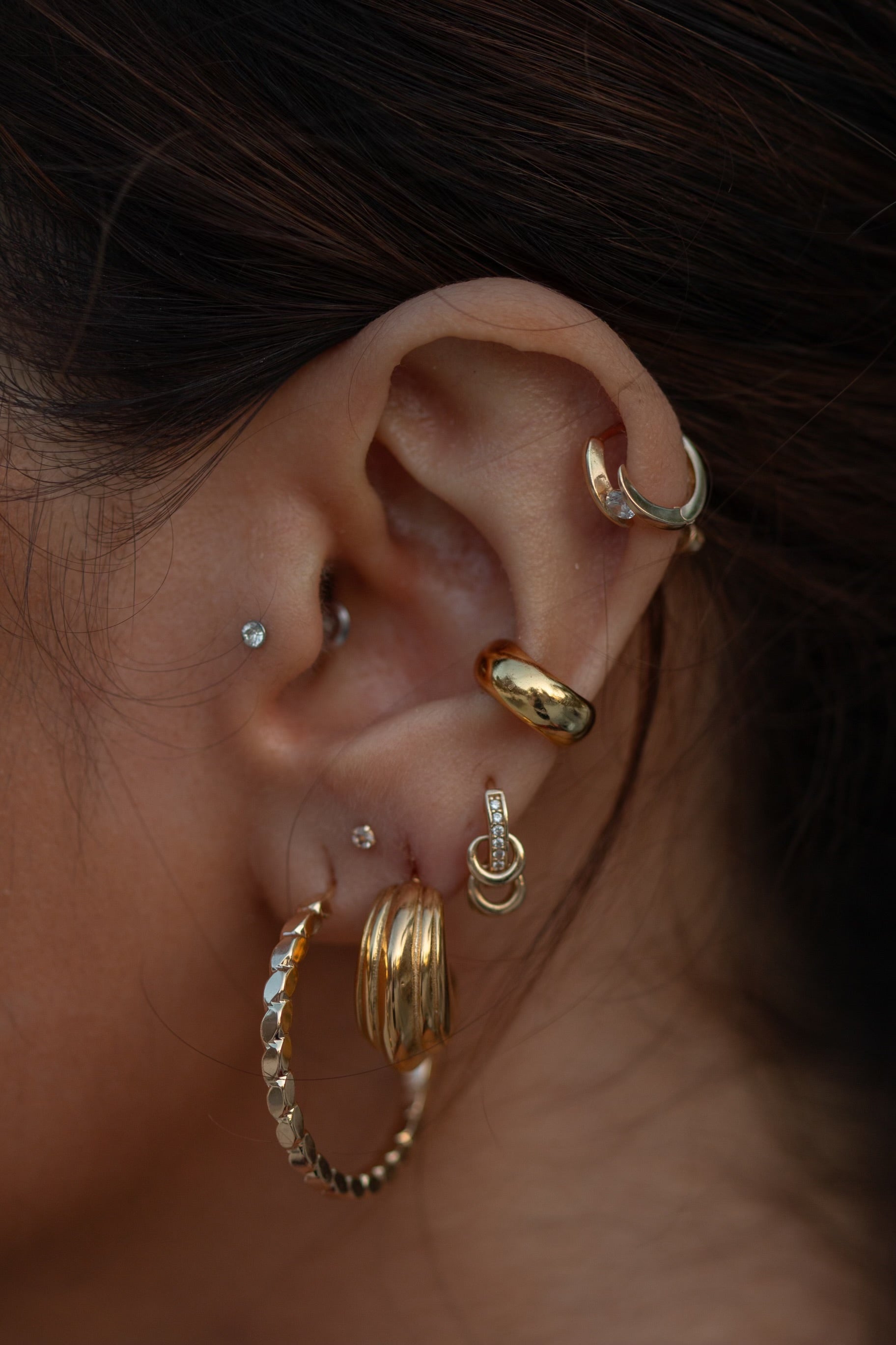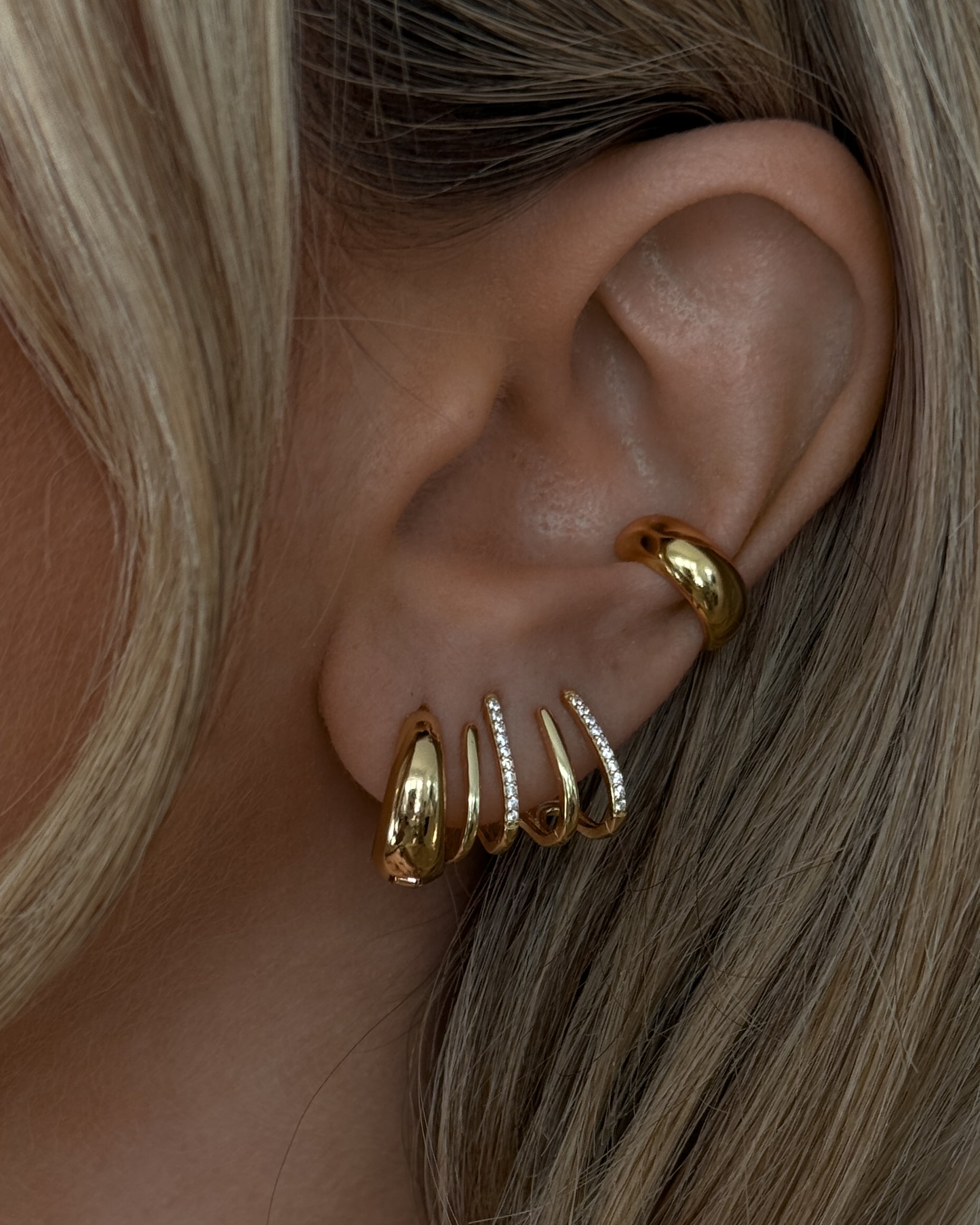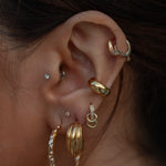 Mimic the look of a piercing, without the pain. This thick gold ear cuff hugs the middle of your ear and adds a band of gold that elevates any ear stack. The cuff slides right on and stays in place, so you're able to rock a glam ear party every day.