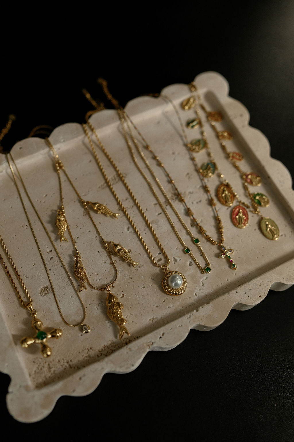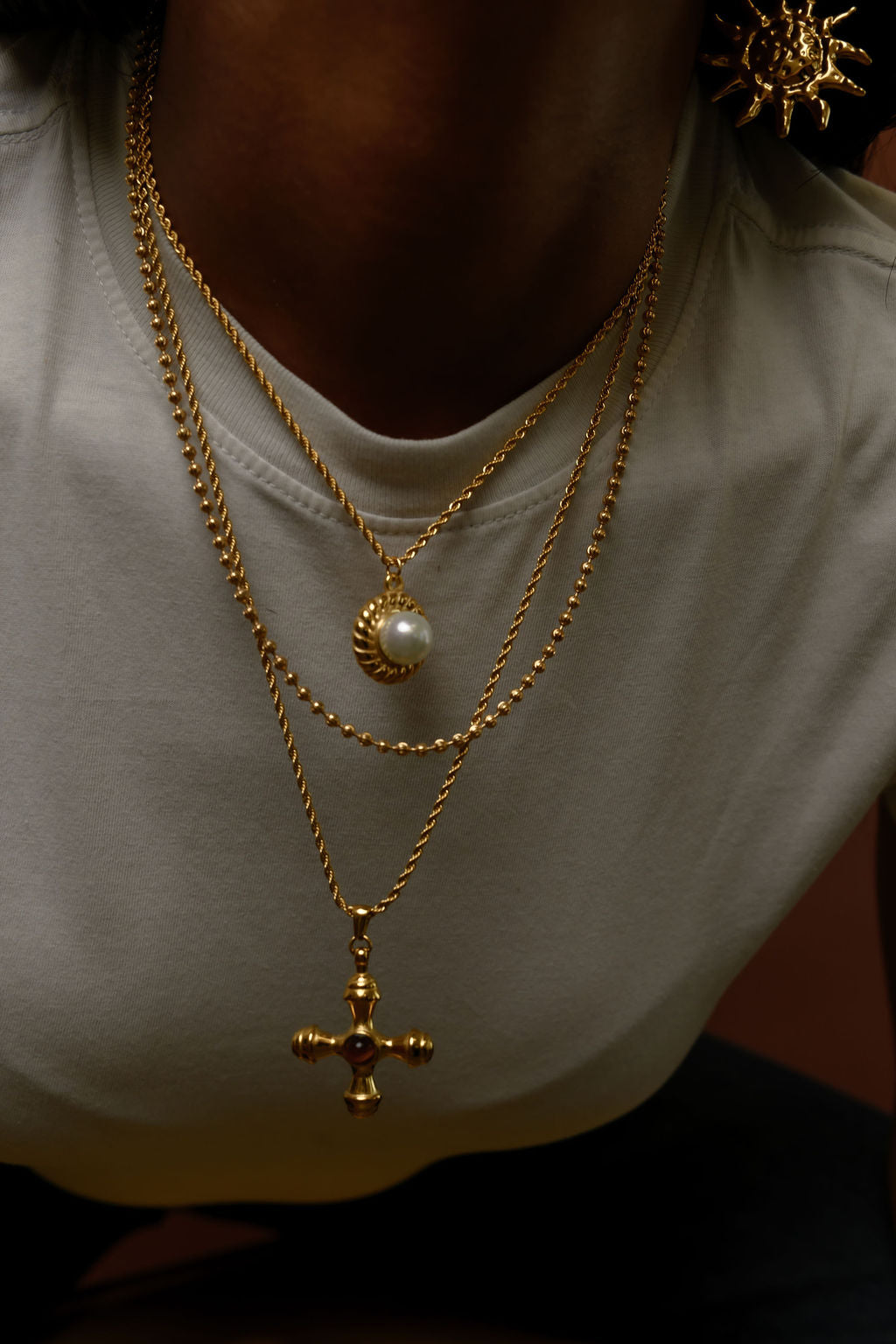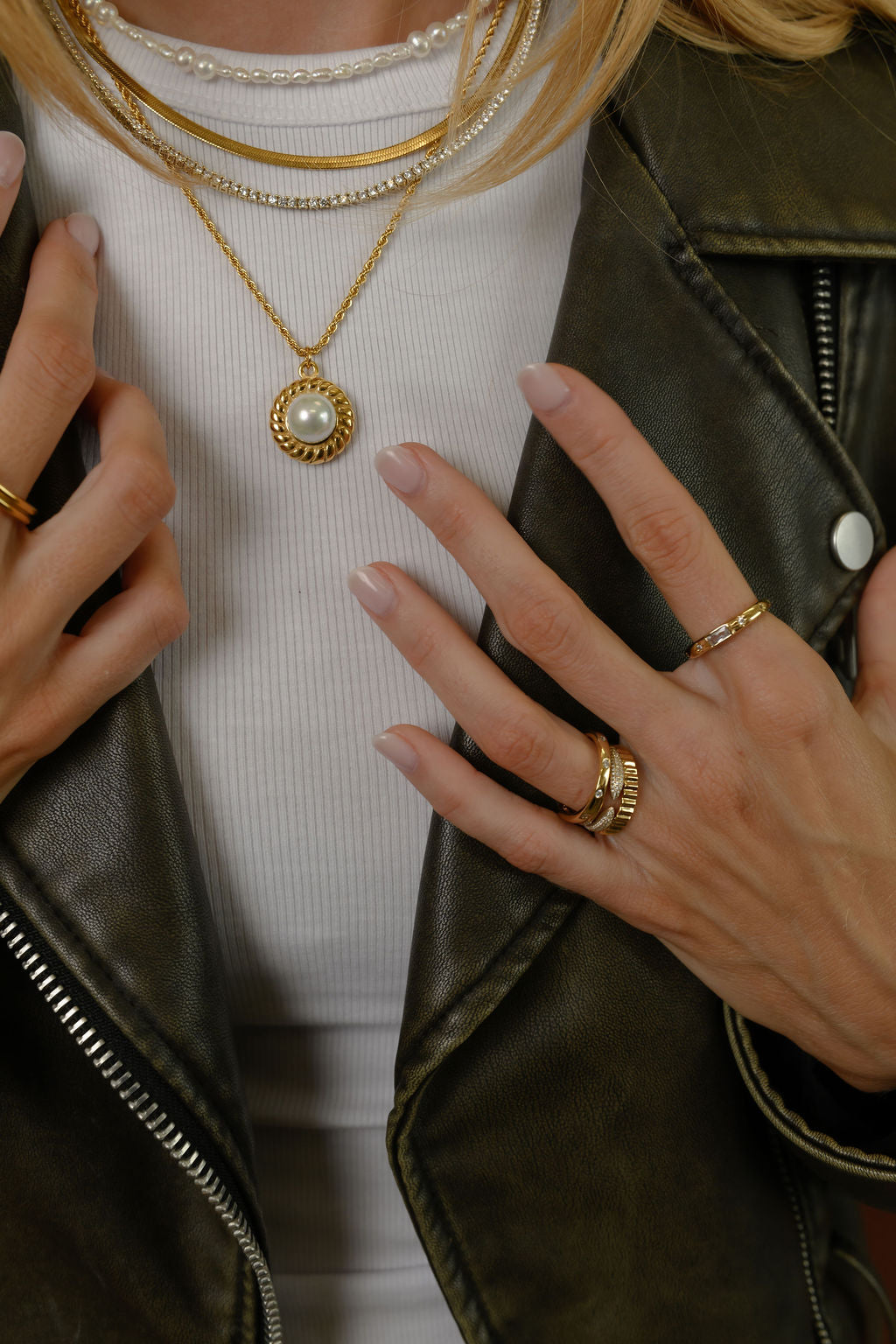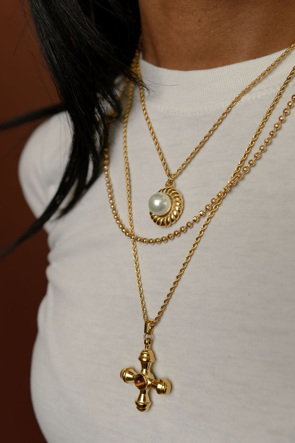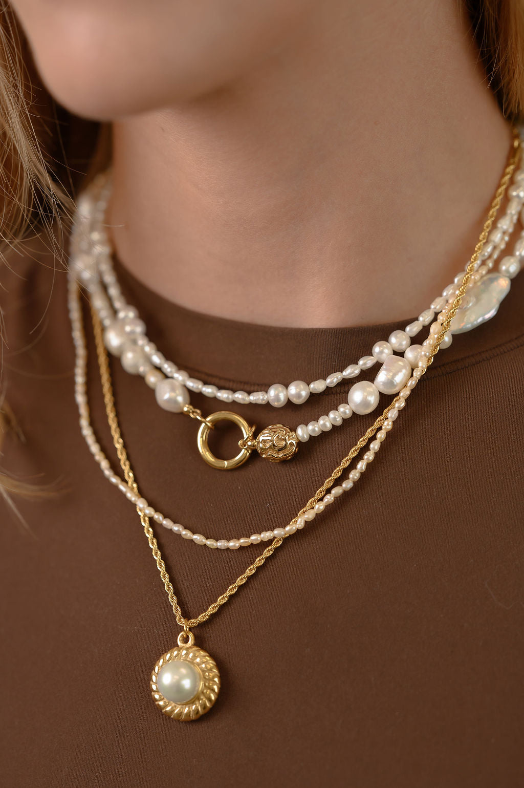 Channeling all vintage vibes with the La Mer necklace, this necklace features a button pearl set in a textured pendant, made complete by a long rope chain that's perfect as the finishing layer in your necklace stack.