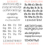 - Text Specifications: Max. 7 characters/line. Special characters may include hearts. Engraving is case sensitive, please type carefully. The more characters used, the smaller the text will appear on the engraved design.