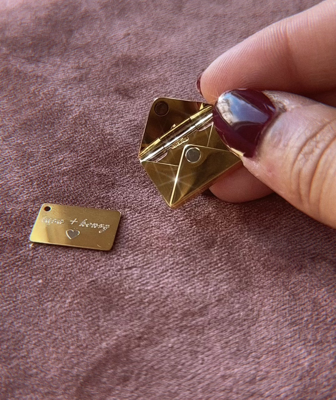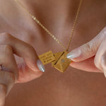 We're all about expressing our love in unique ways, and the Love Note Necklace is our new obsession for carrying reminders by your heart. Featuring a small rectangular plate engraved with your message, enclosed in a mini functioning envelope, this piece is a breathtaking way to hide a message for a loved one, or even a message you need to hear.