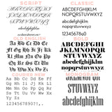 - Text Specifications: Max 5 characters (we suggest no more than 3 characters for fonts such as Script and Old English)