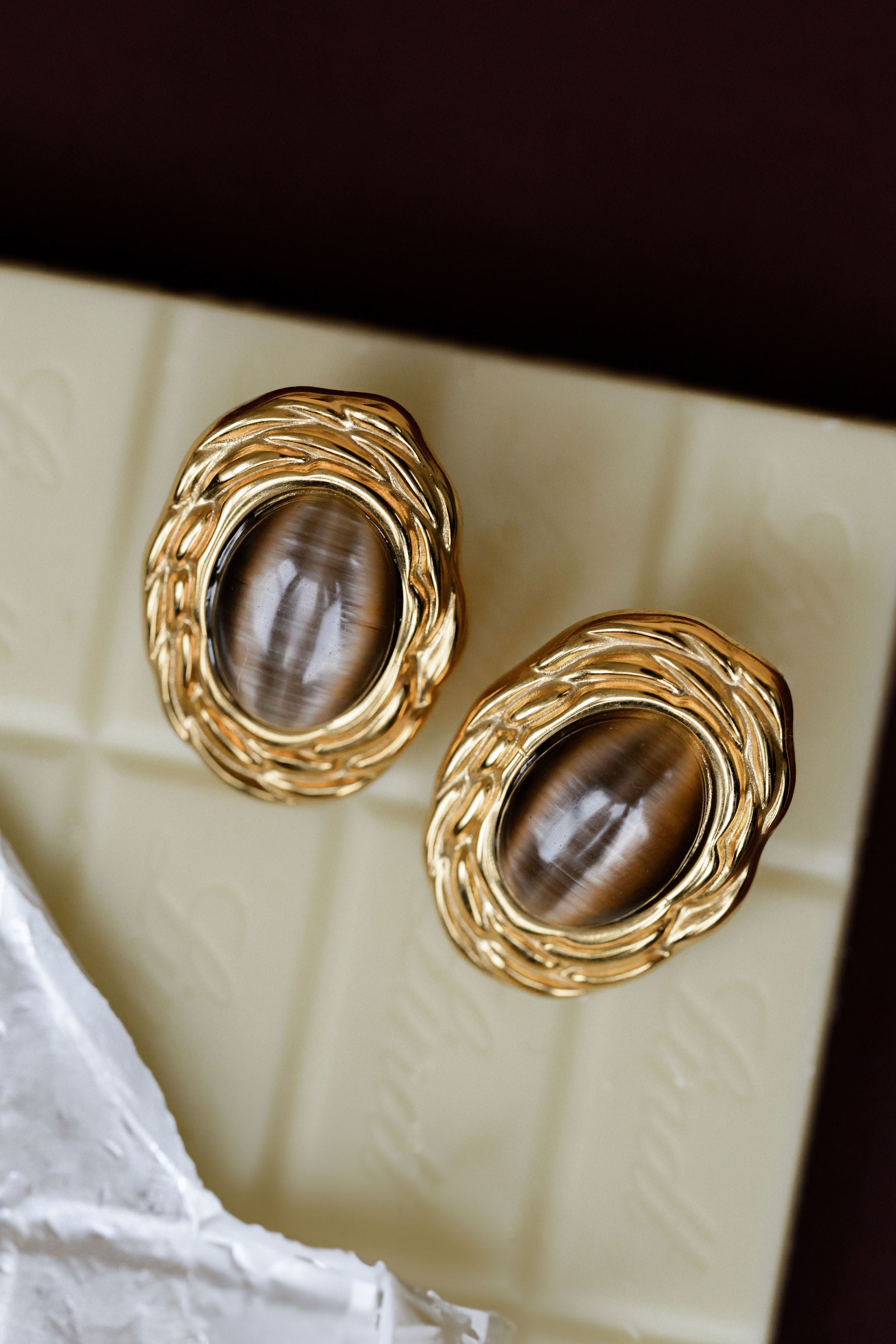 Designed to feel discovered rather than made, the Relic Earrings feature a sculptural gold frame surrounding either a rich Tiger’s Eye or a luminous Selenite stone. Whether you're drawn to the warmth and depth of the Tiger’s Eye or the luminous, ethereal Selenite, these expressive earrings each carry their its own energy, allowing you to choose the one that grounds you or draws you in most.