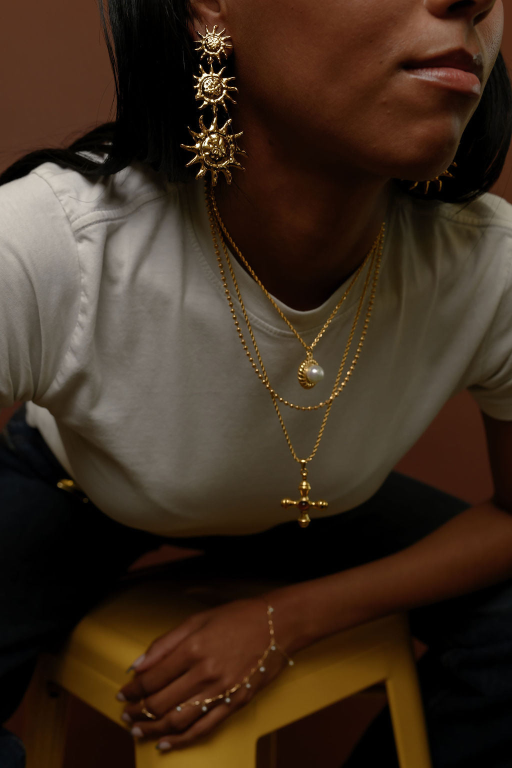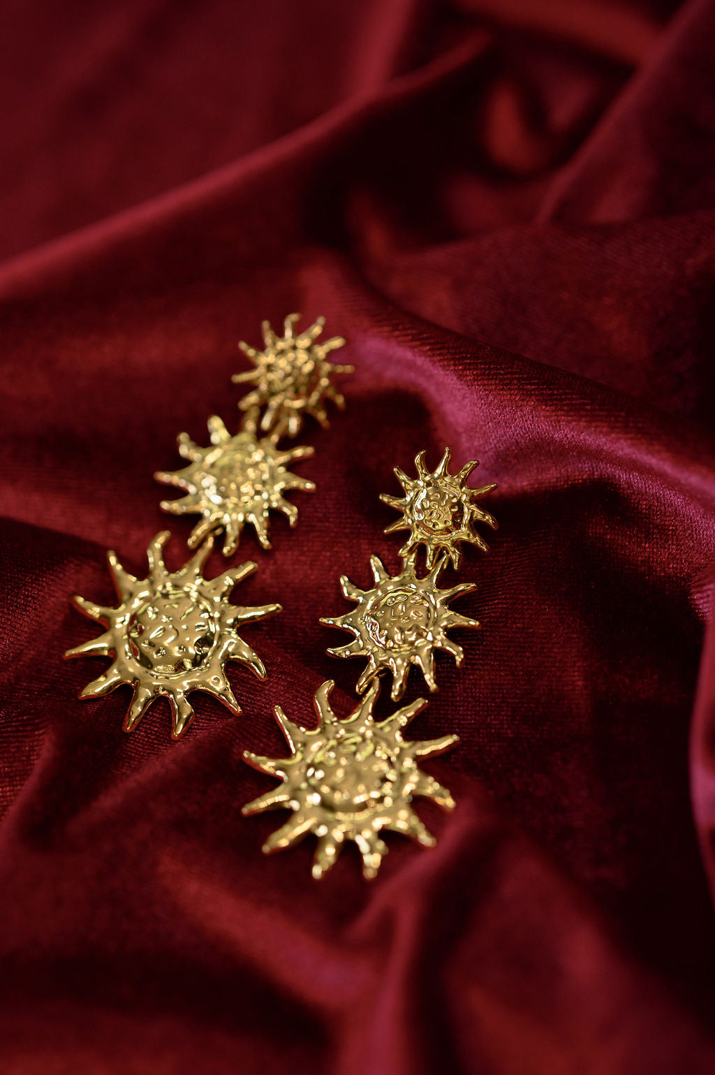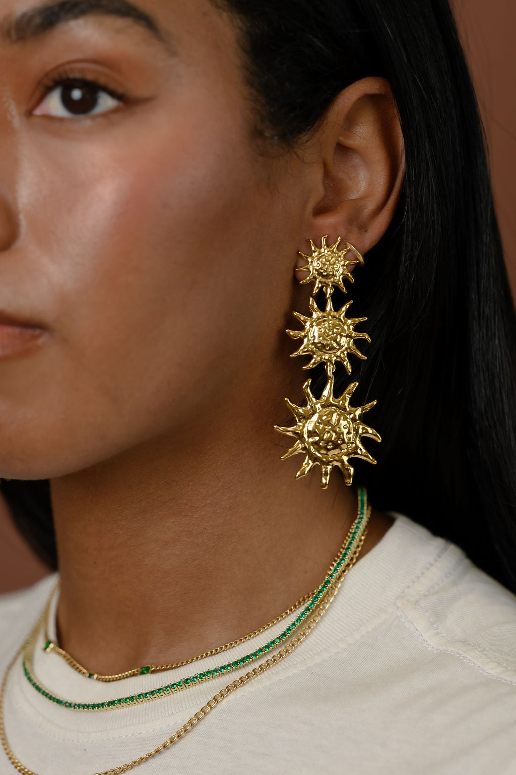 Manifest brighter days and sunny adventures with the Soleil Earrings. Forgetting all tones of subtlety, these oversized statement earrings will brighten any stack while being effortlessly lightweight.