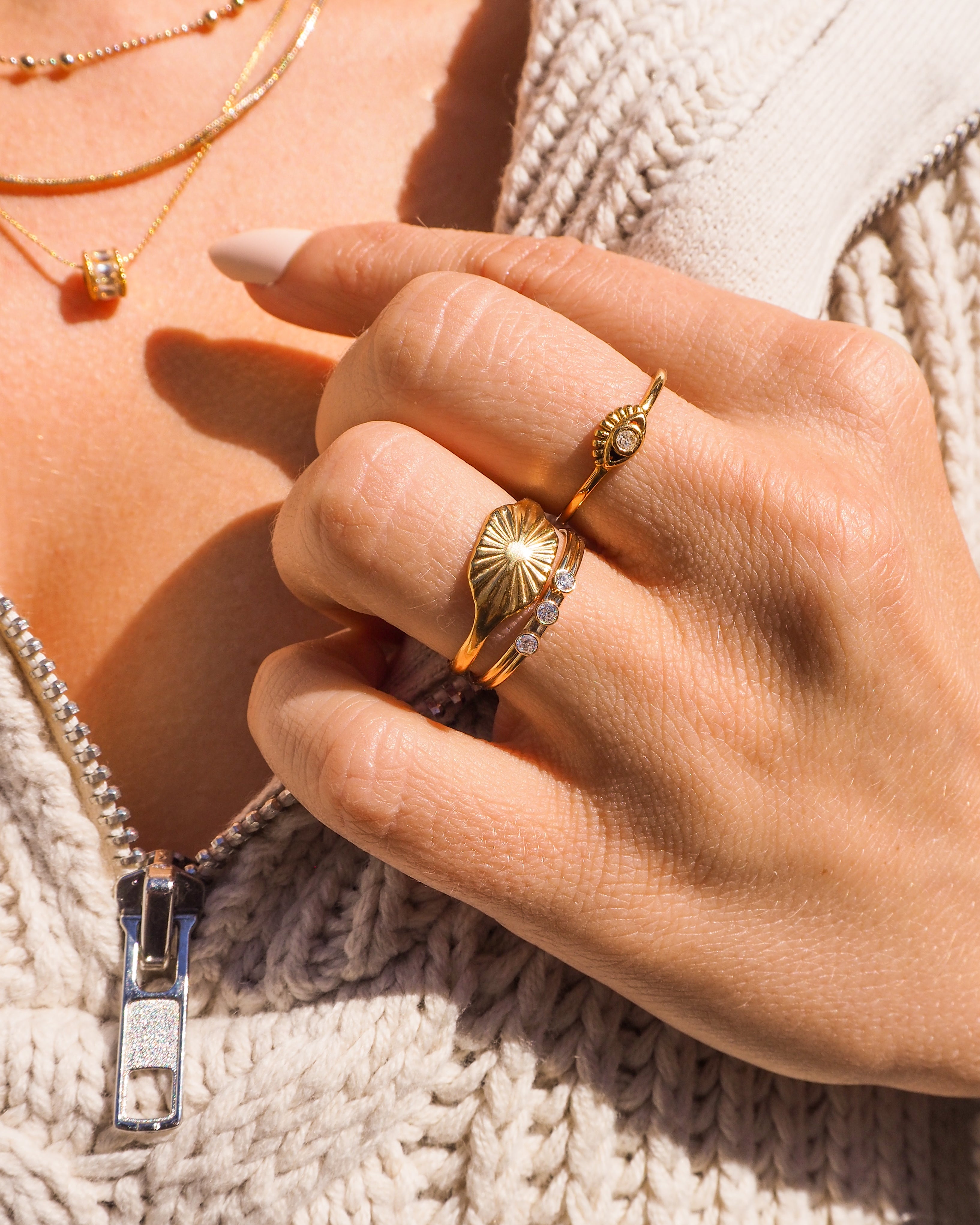 Our Yaz evil eye necklace is adored by many, so we had to release a coordinating ring and earring set. Wear this dainty ring to keep bad luck at bay, while looking good doing it. The petite eye features a tiny CZ stone that adds an extra bit of sparkle to your fingers.